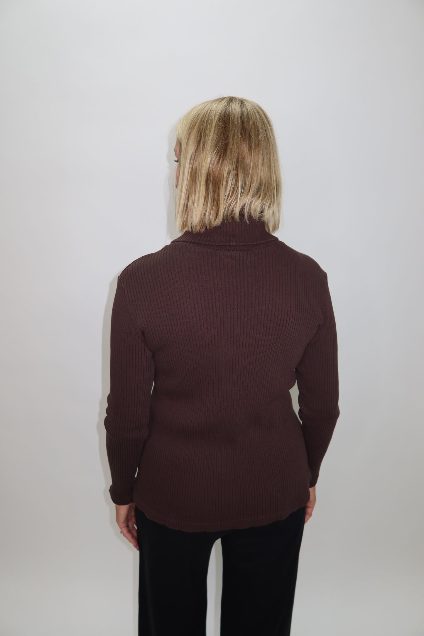 Dark Chocolate Long Sleeve Ribbed Turtle Neck