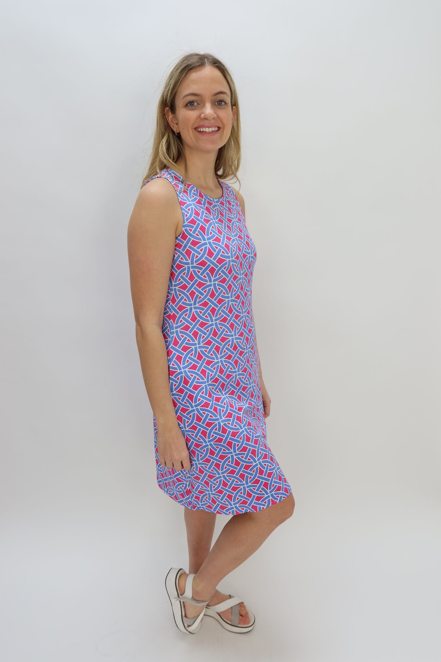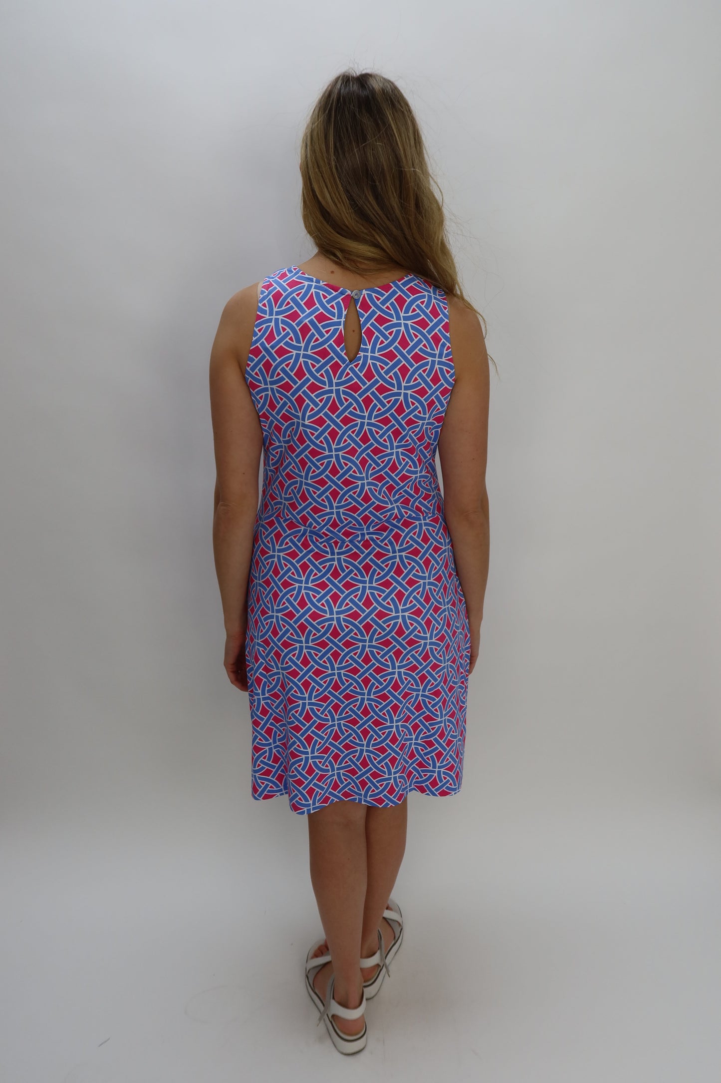 Pink and Periwinkle Pattern Sleeveless Aline Dress with Keyhole