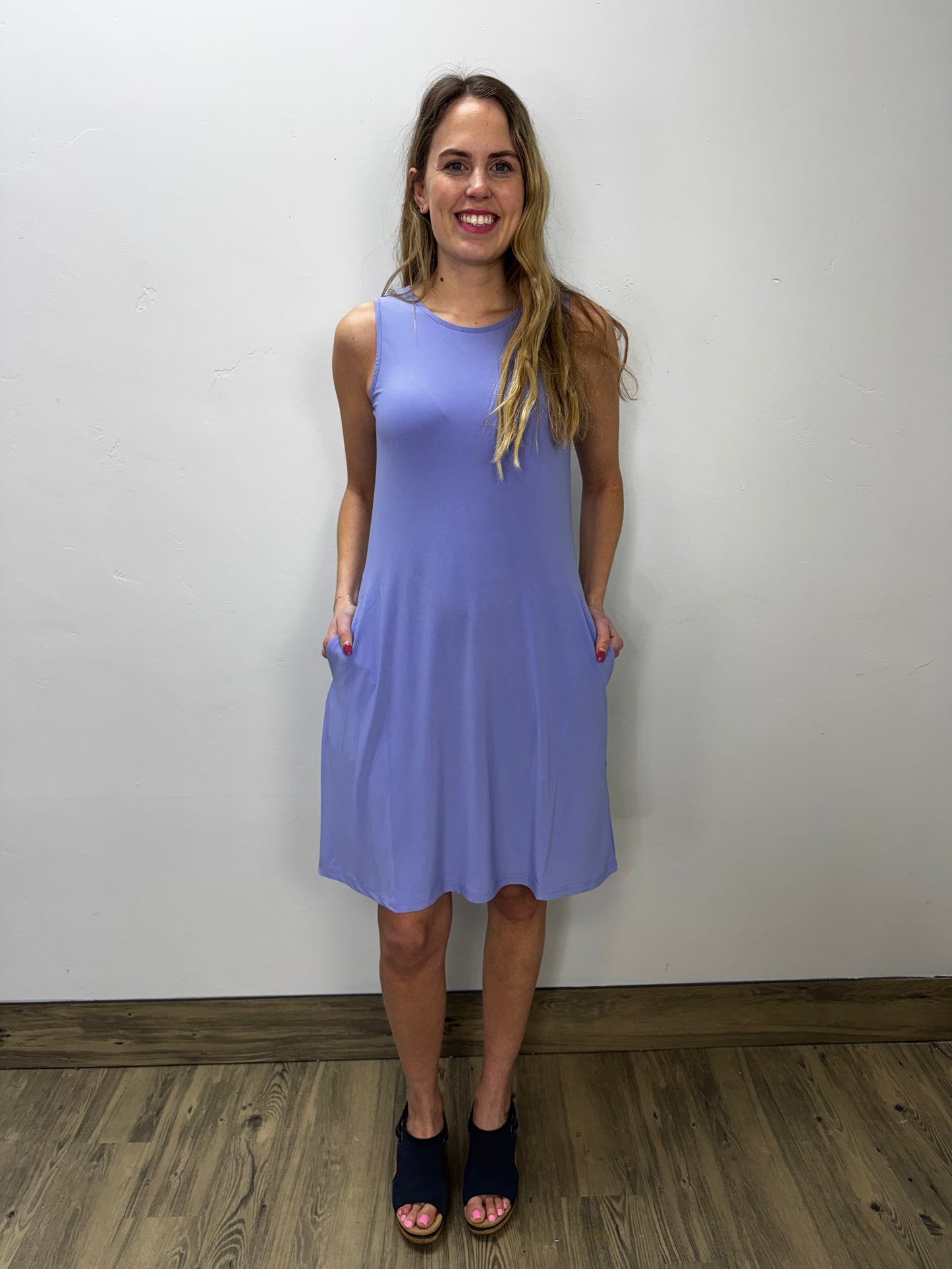 Periwinkle Purple Sleeveless Aline Dress with Keyhole