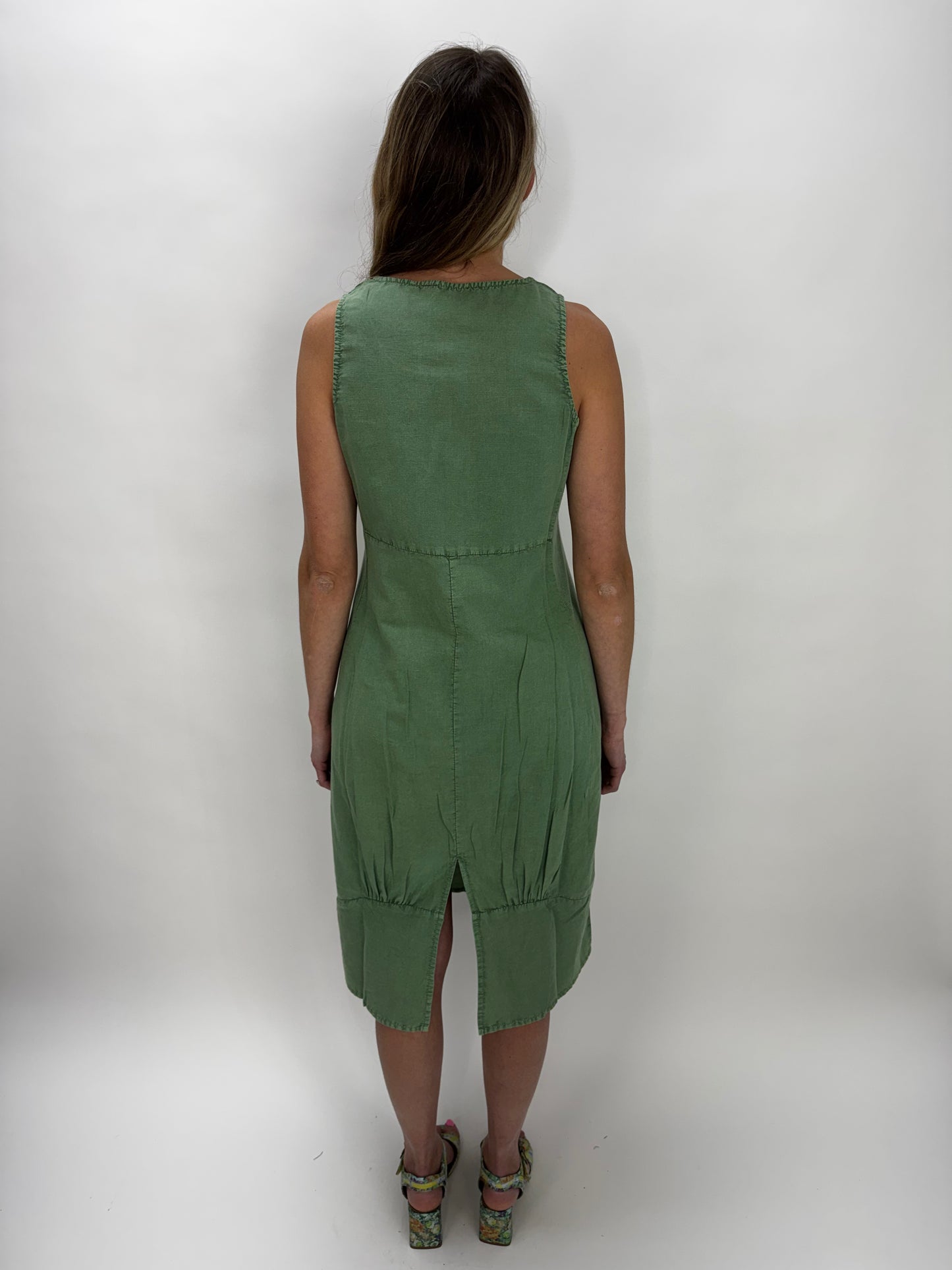 Sage Green 100% Linen Sleeveless Midi Dress with Pockets