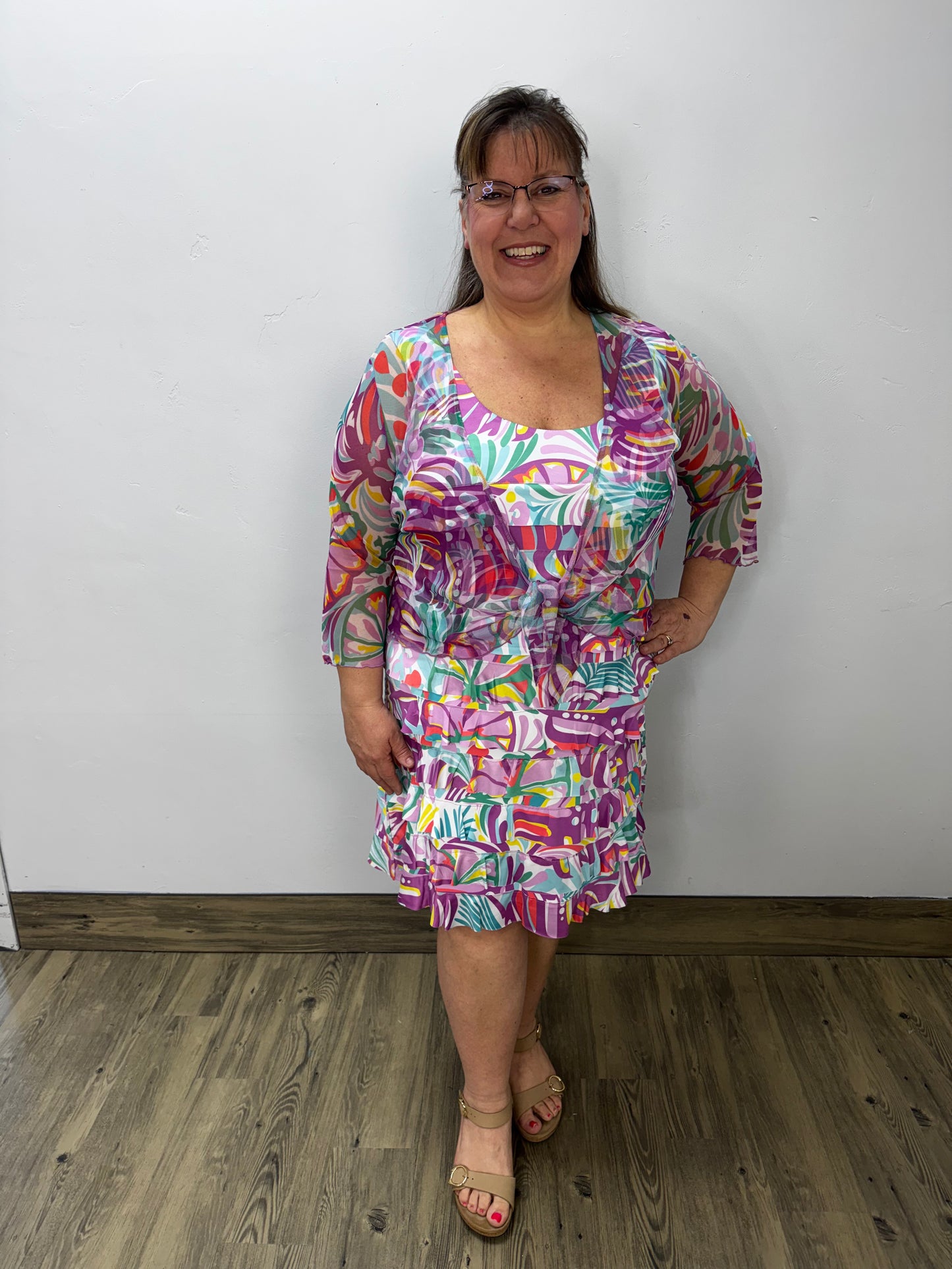Elevate your look with the Mesh Bolero Jacket, featuring delicate see-through fabric and flattering three-quarter sleeves. Perfect to wear over sleeveless tops, this chic piece adds a stylish and airy layer, ideal for transitional weather or special occasions. Light and versatile, it effortlessly enhances your outfit with a touch of elegance and modern flair.