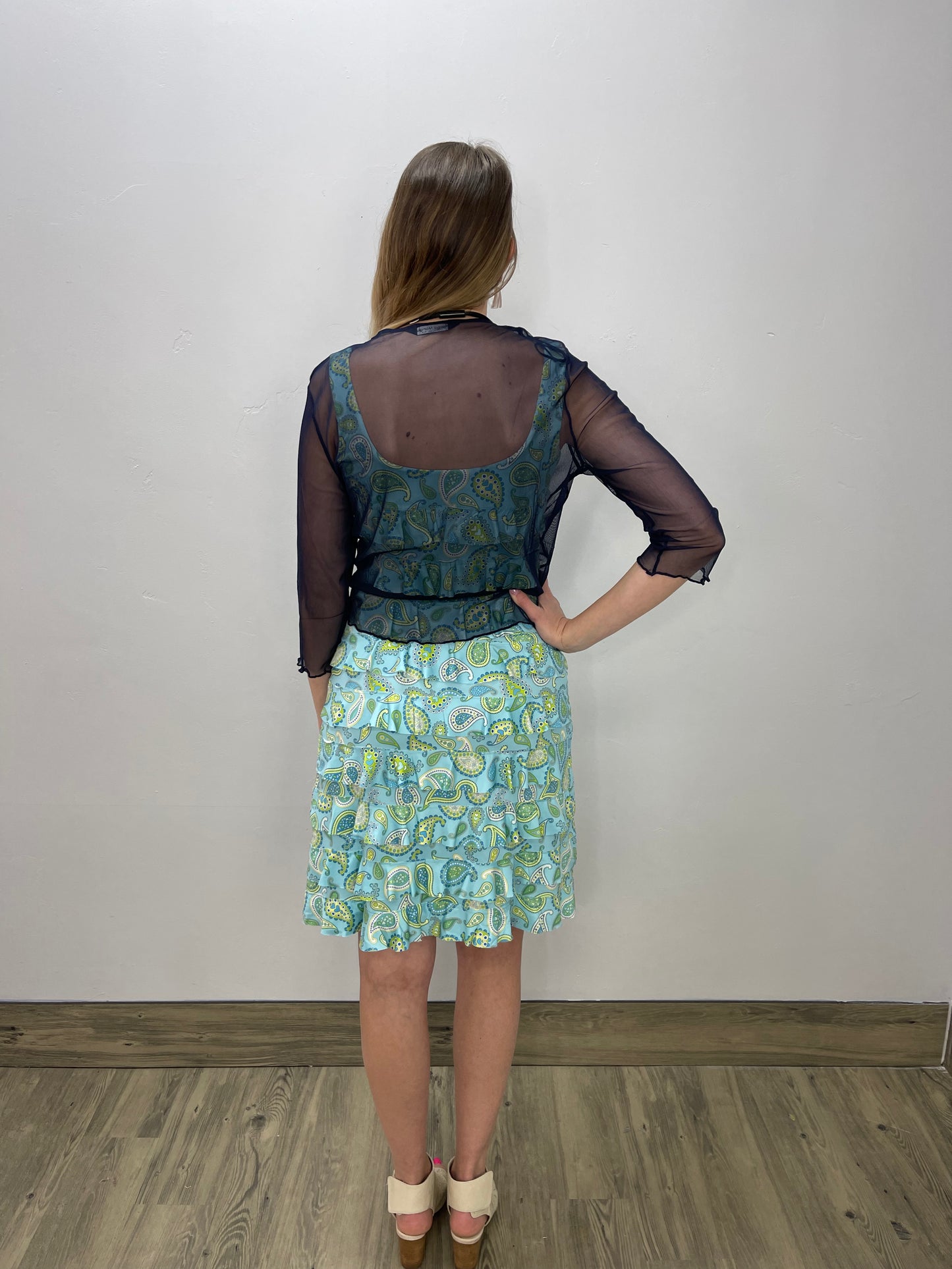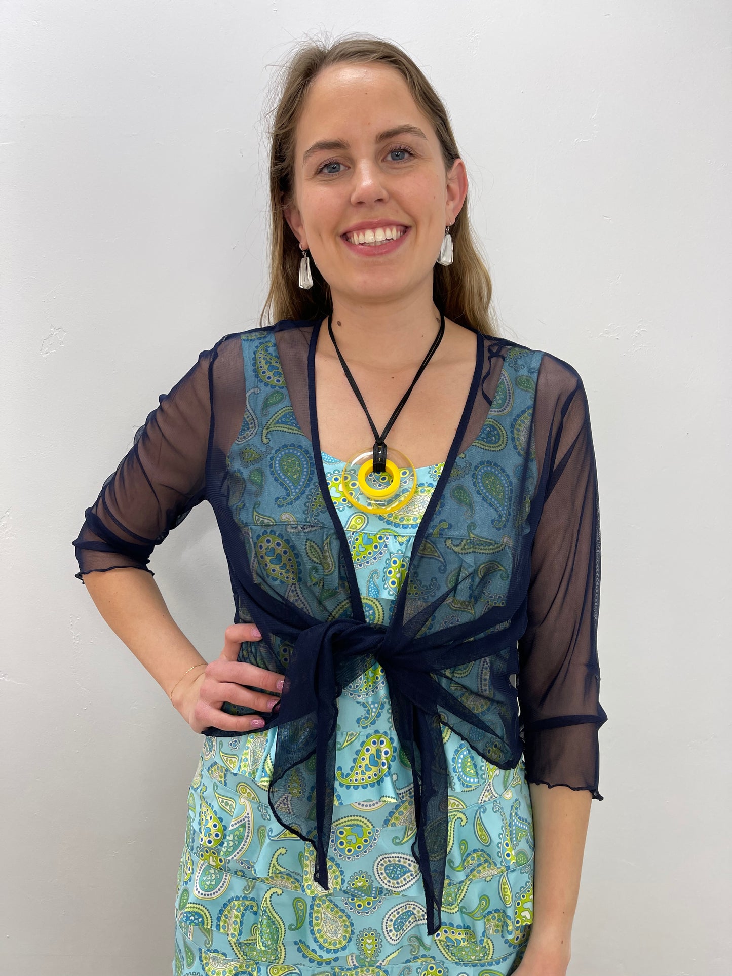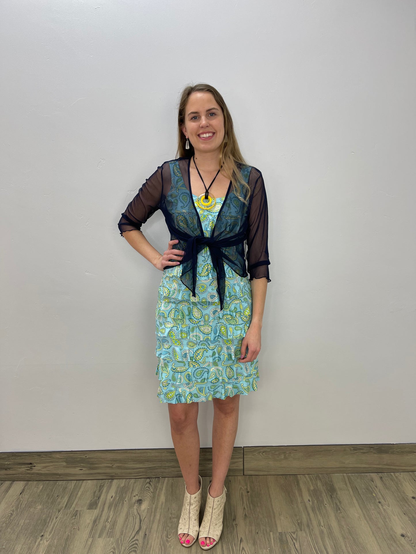 Elevate your outfit with the Navy Mesh Bolero Jacket by Tango Mango. Perfect for adding a light layer over your arms, this versatile piece can be worn tied up for a chic look or left down for effortless coverage. Its breathable mesh fabric keeps you comfortable while enhancing your style, making it an ideal companion for both casual and dressy occasions.