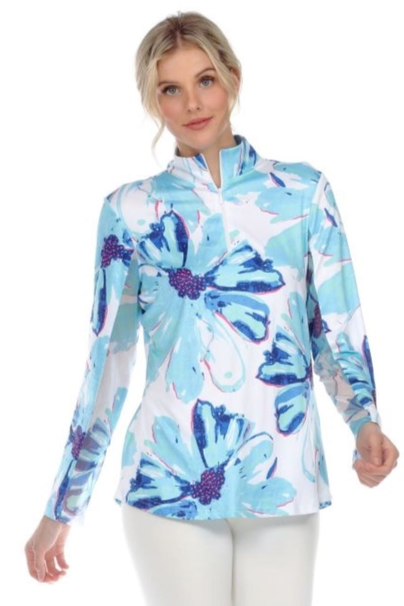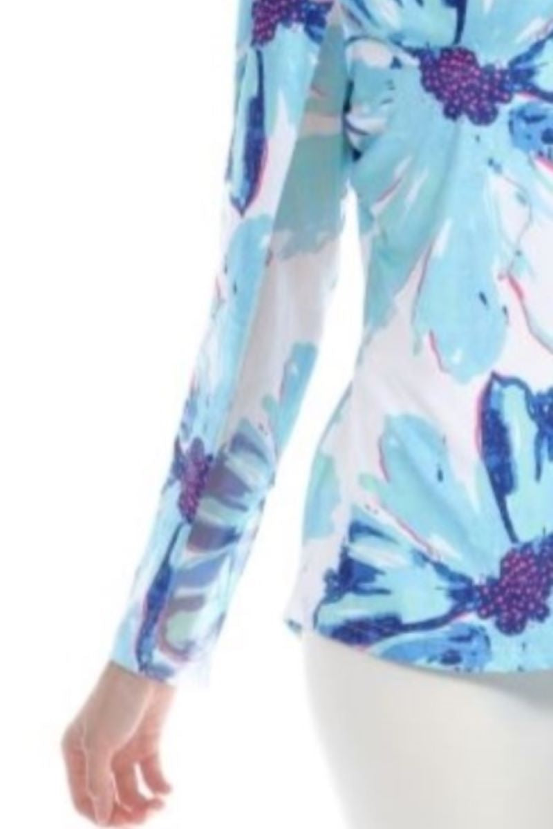 Regular price $67.20This long sleeve Tango Mango top is designed with a zippered collar and long sleeves that are made with a mesh fabric underneath. A generous amount of stretch throughout.