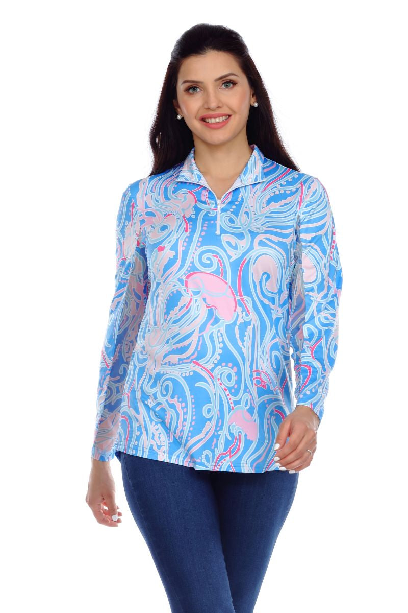 Regular price $67.20This long sleeve Tango Mango top is designed with a zippered collar and long sleeves that are made with a mesh fabric underneath. A generous amount of stretch throughout.