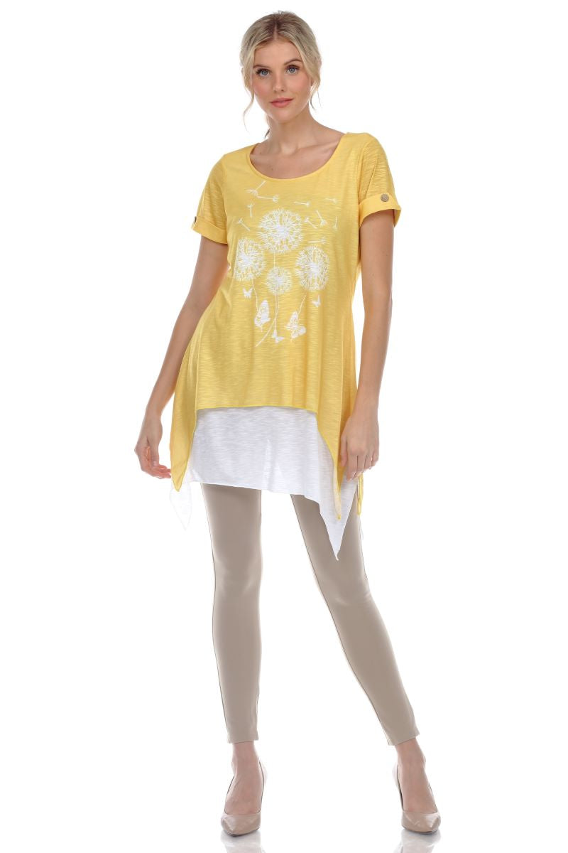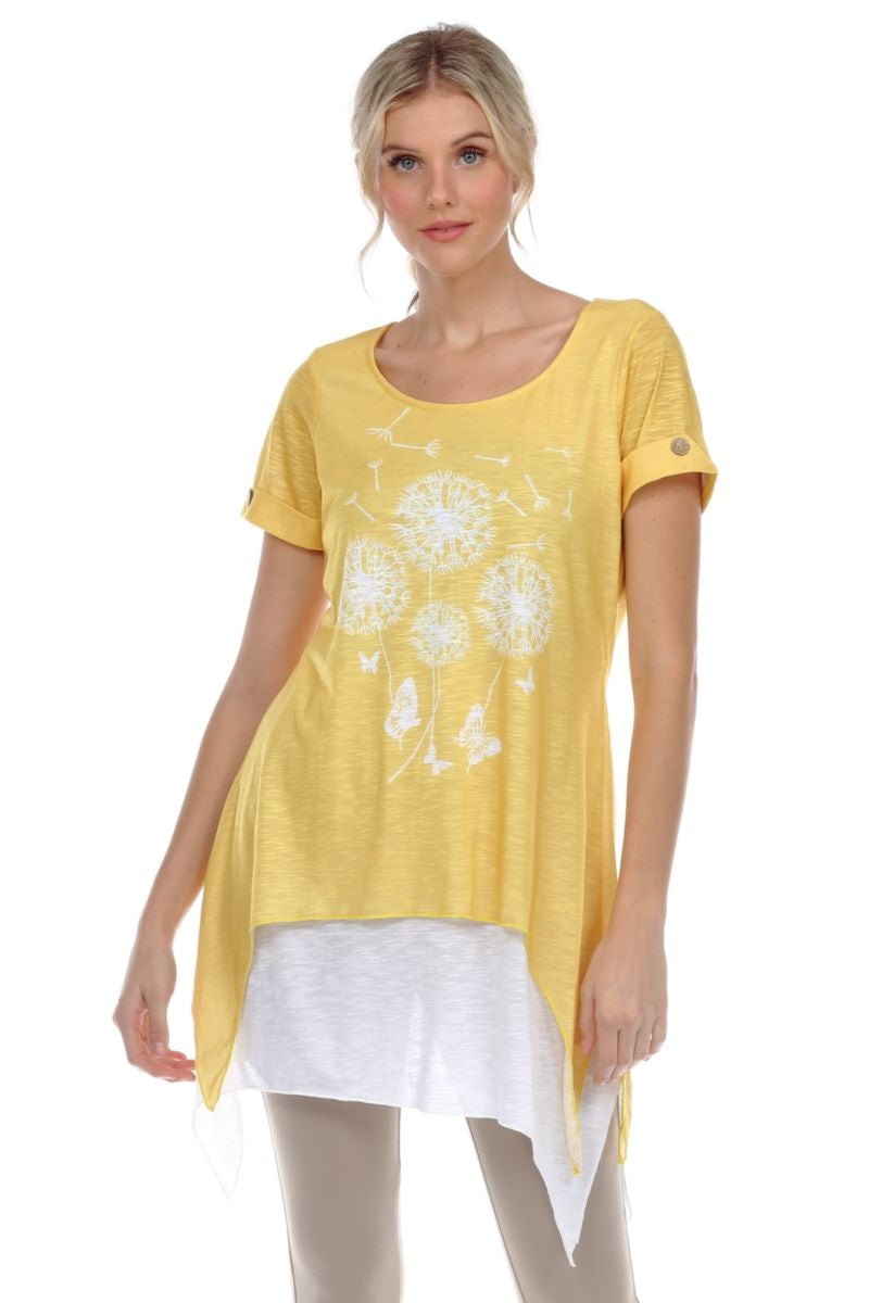 Regular price $44.50This short sleeve Tango Mango top has cuffed sleeves with button detail and a gorgeous asymmetrical tiered hemline. The white portion of them also serves as a liner that starts at the neckline.