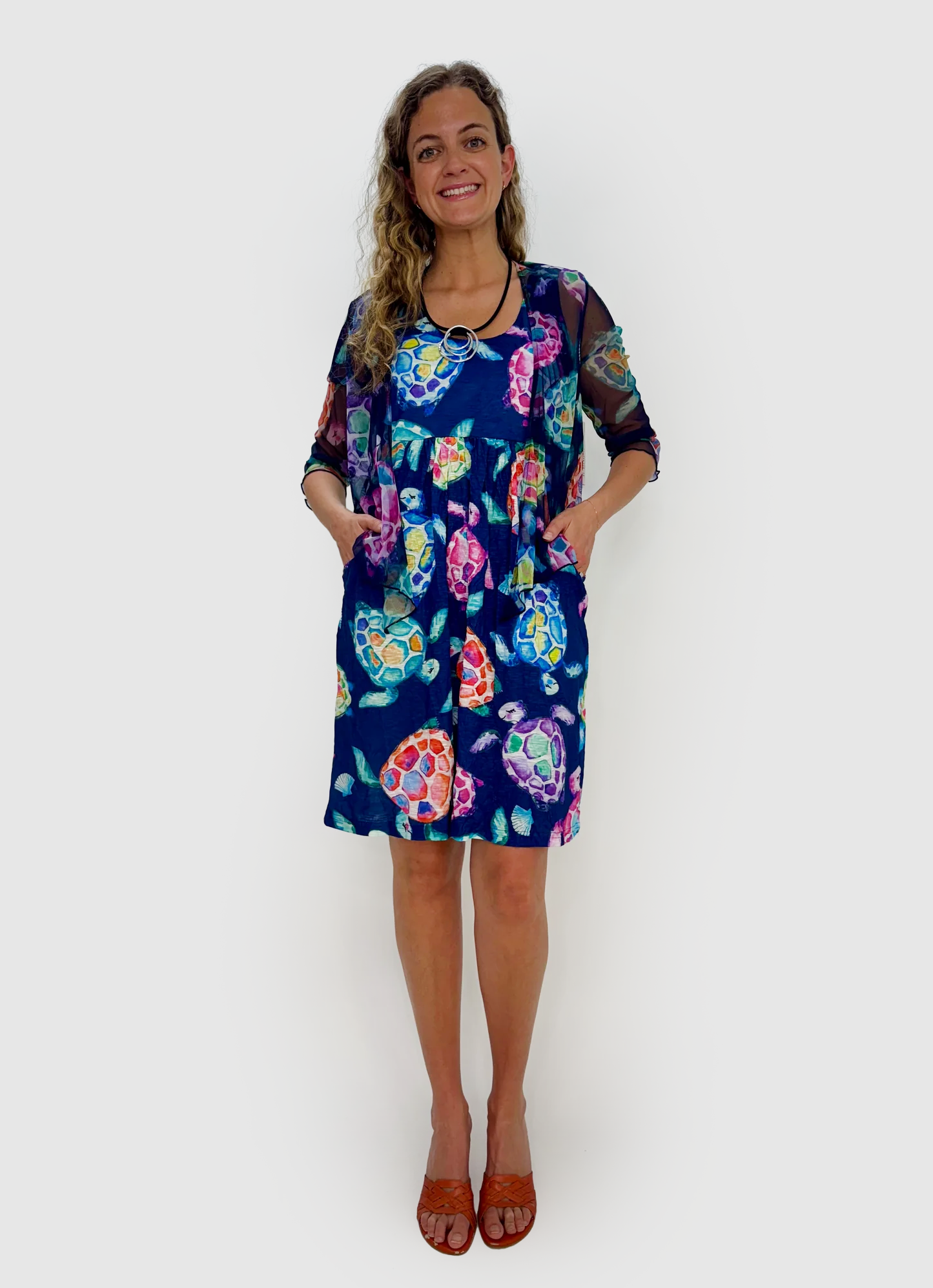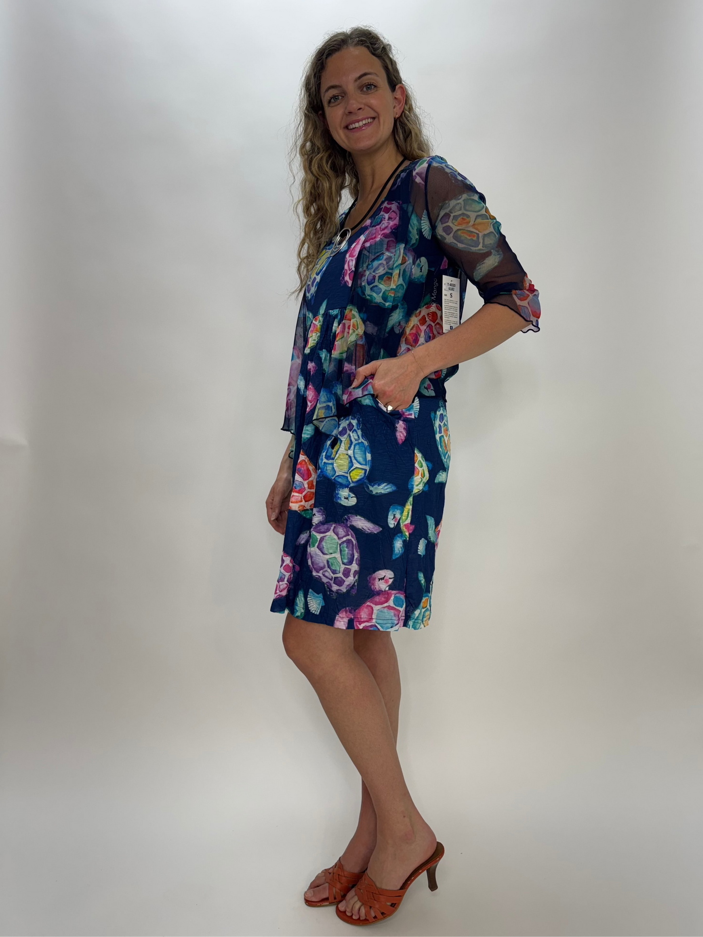 Elevate your outfit with the Watercolor Turtles Pattern Mesh Bolero Jacket. Its sheer, see-through fabric adds a delicate touch, while the 3/4 sleeves and open front design make it the perfect layering piece over sleeveless tops or dresses. This bolero effortlessly enhances your look with a splash of vibrant color and floral charm.