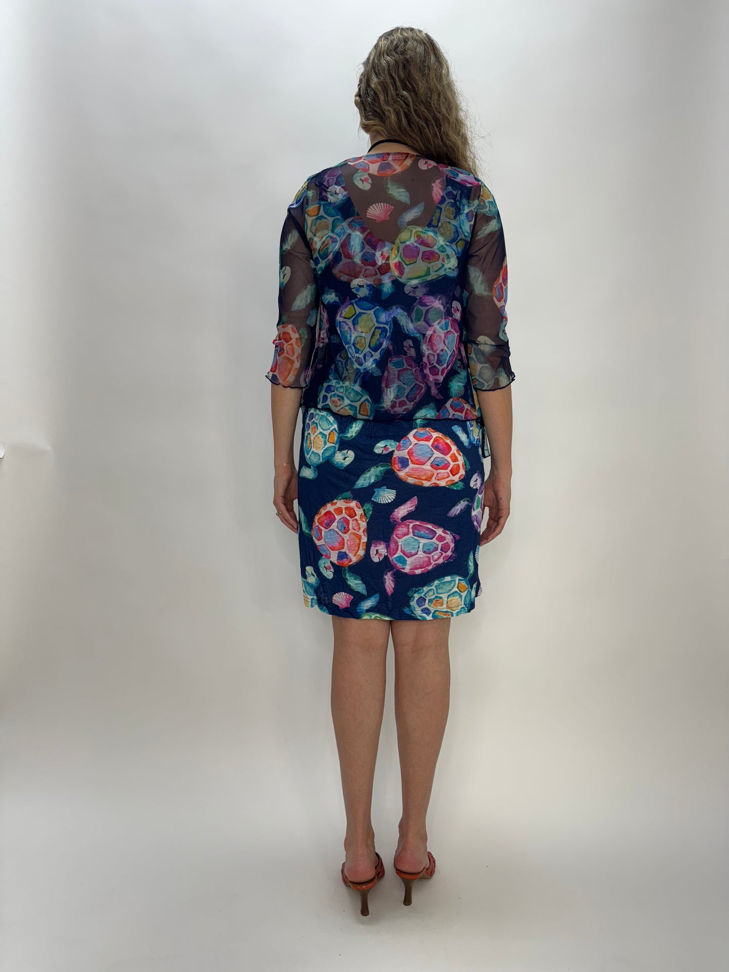 Watercolor Turtles Pattern Mesh Bolero Jacket