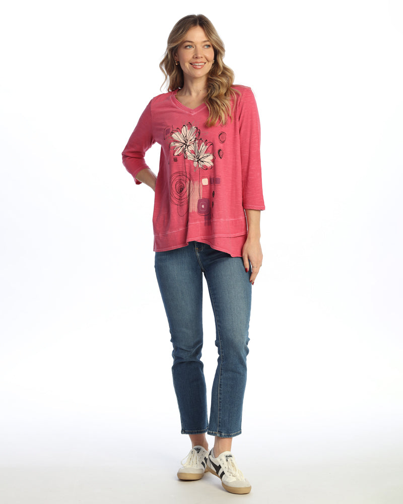 Add a vibrant touch to your wardrobe with our Fuchsia Pink Garment Dyed Cotton Slub V-Neck Tulip Hem Top. Crafted from soft garment-dyed cotton jersey, this top offers comfortable wear and a unique raw edge hem for a stylish, effortless look. Its bright fuchsia color and flattering tulip hem make it perfect for adding fun and flair to any outfit.