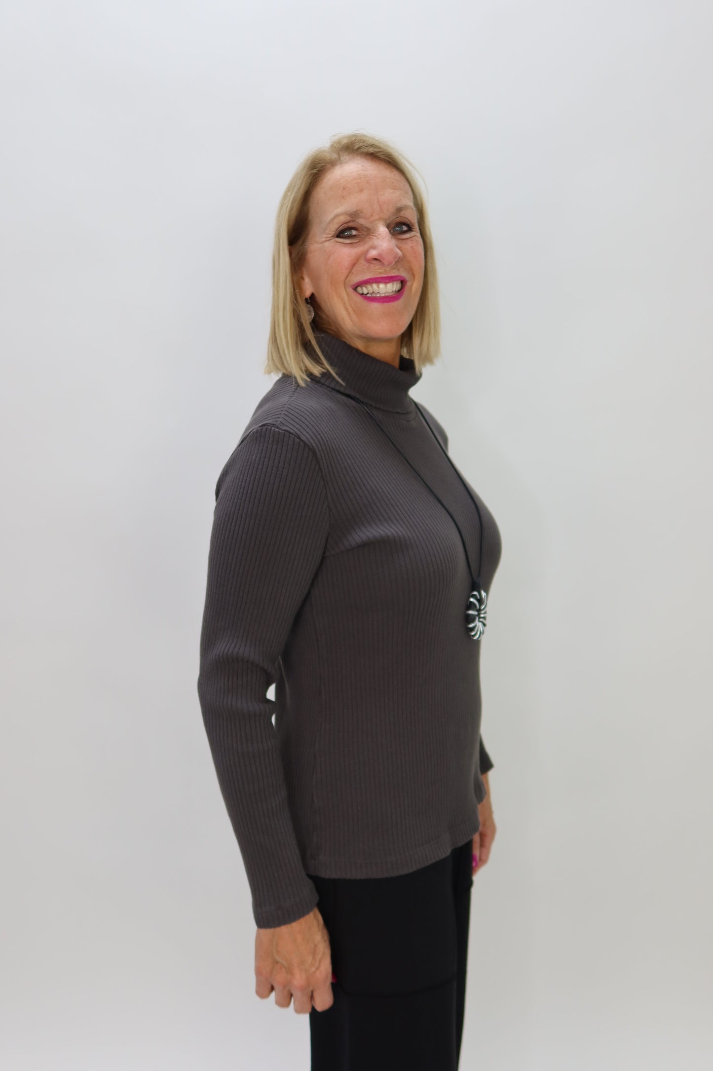 Times Square French Brush Turtleneck Tunic Top With Pocket
