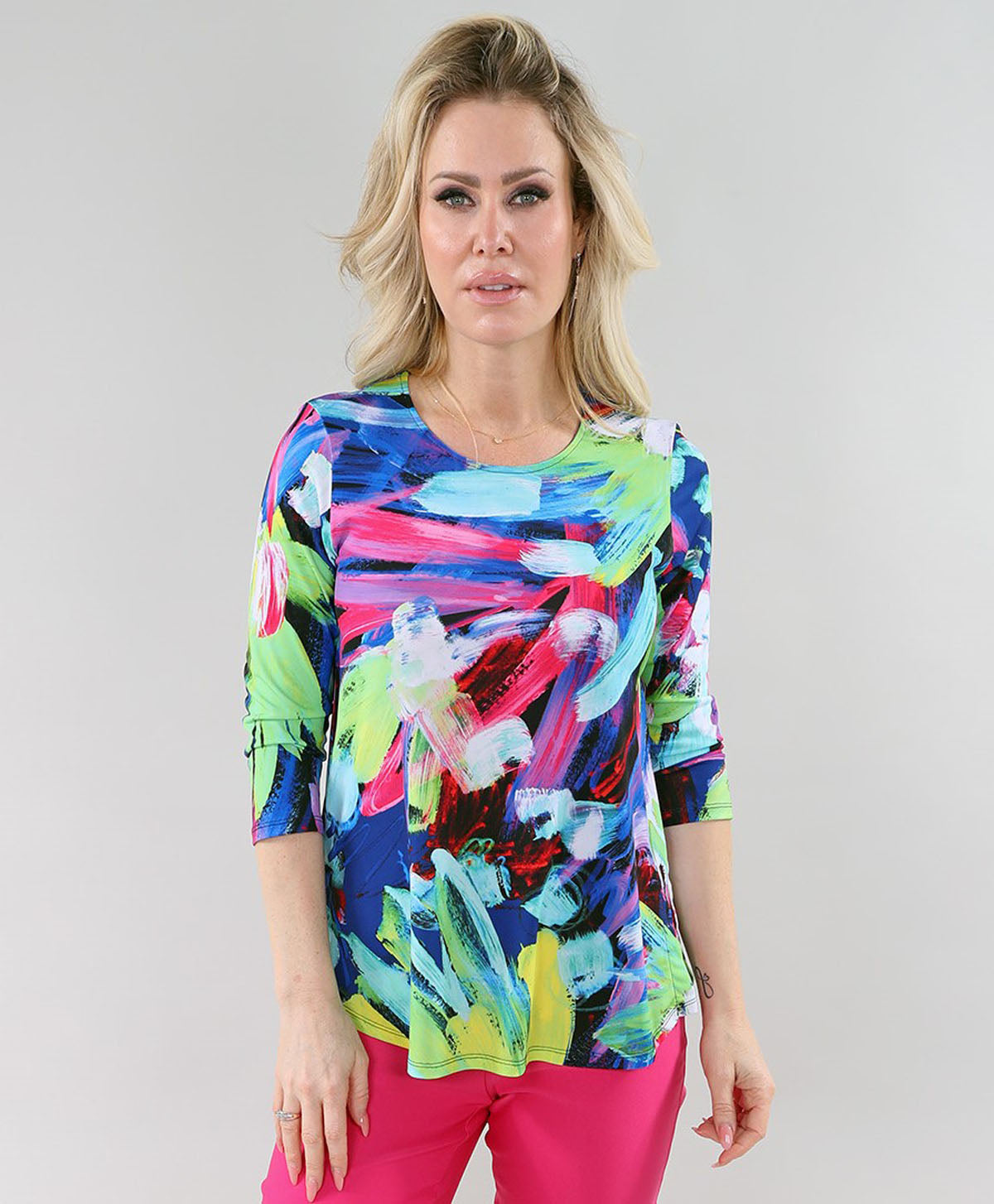 Blue Pink Green Paint Abstract 3/4 Sleeve Top