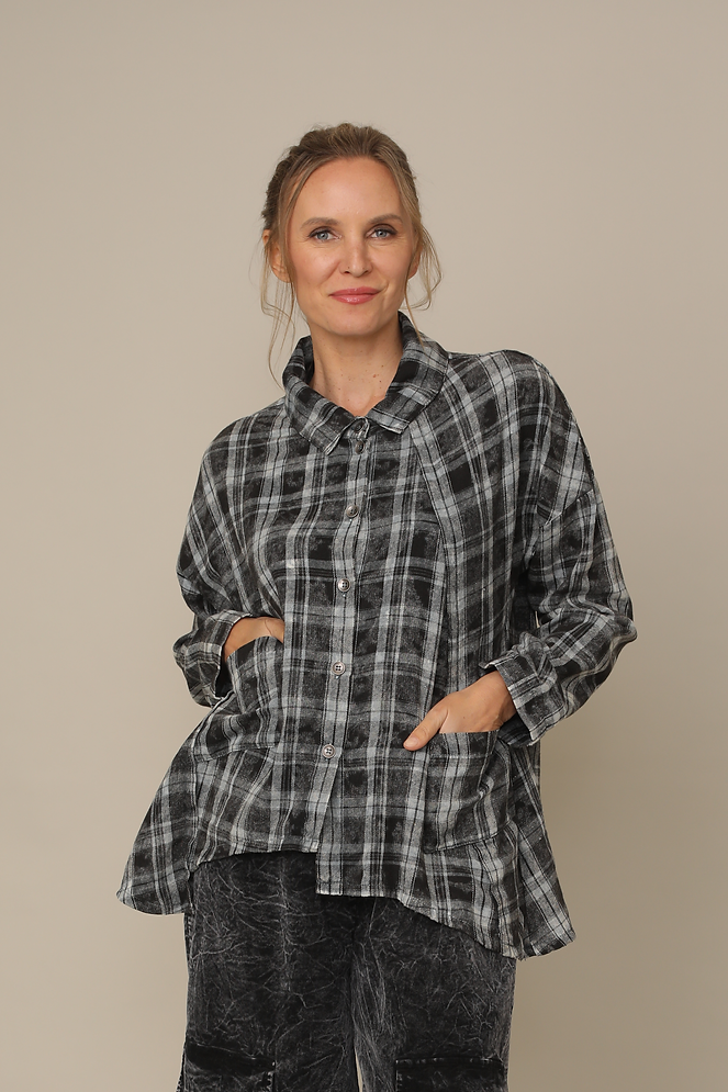 Black Mineral Washed French Terry Cowl Neck Tunic