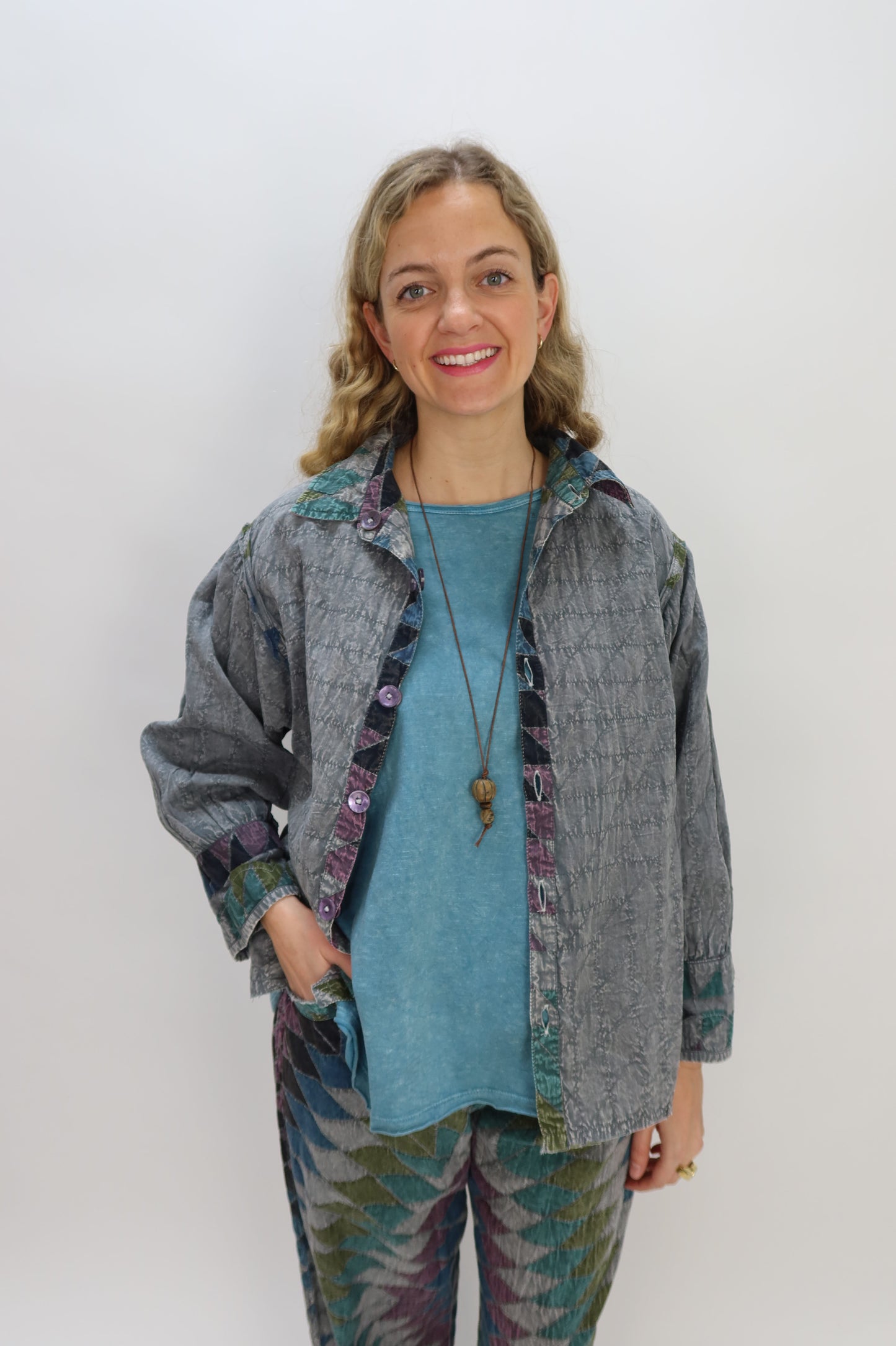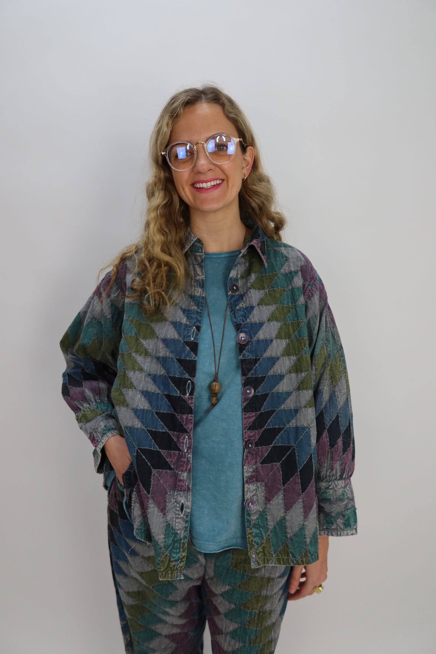 Kaleidoscope Patchwork Long Reversible Jacket with Pockets