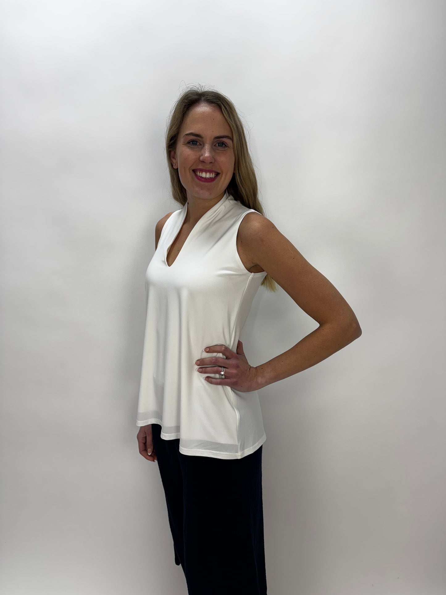 Silver Pebbles Crinkle Jacquard Sleeveless Cowl Tunic