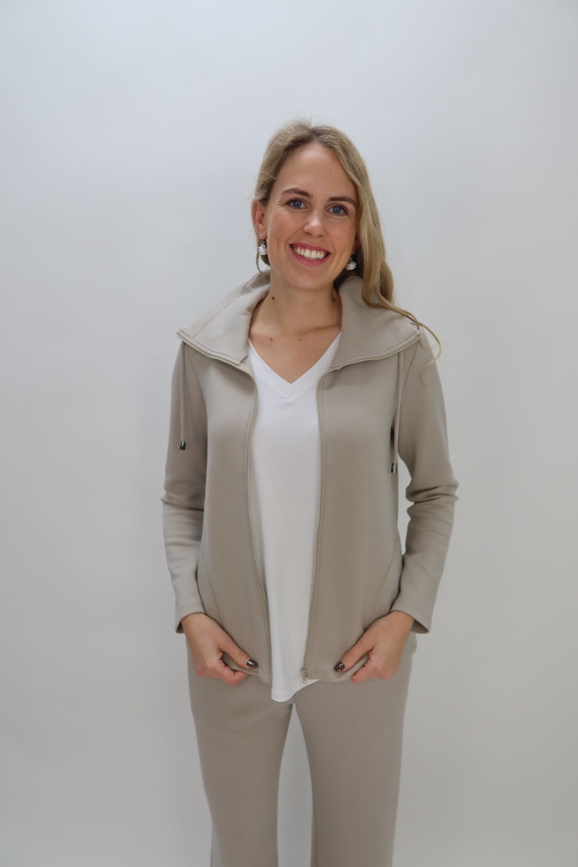 Dark Mustard Stripe French Terry Elbow Sleeve Zipper Jacket
