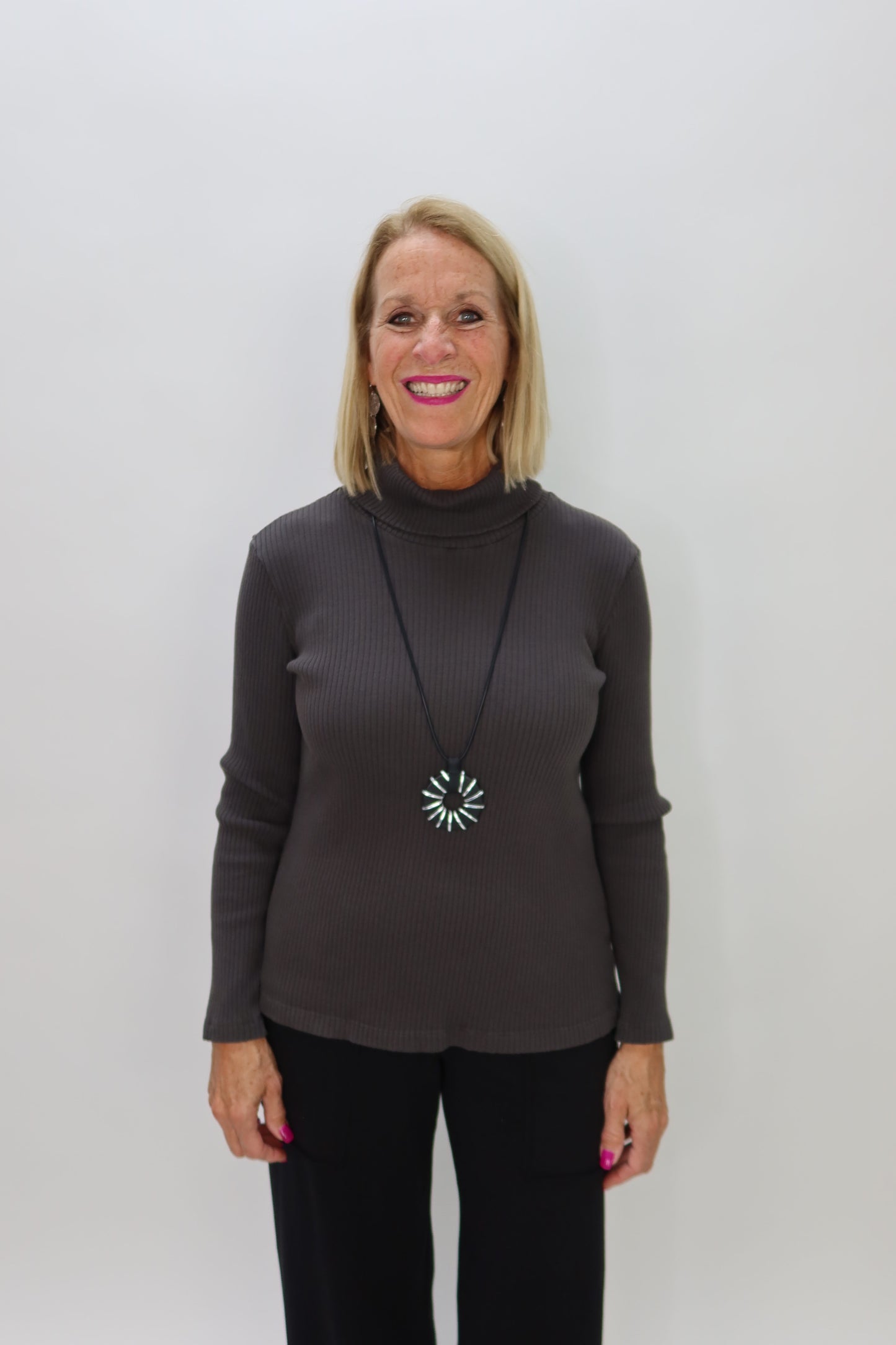 Black and Gray French Brushed Knit Cowl Neck Tunic