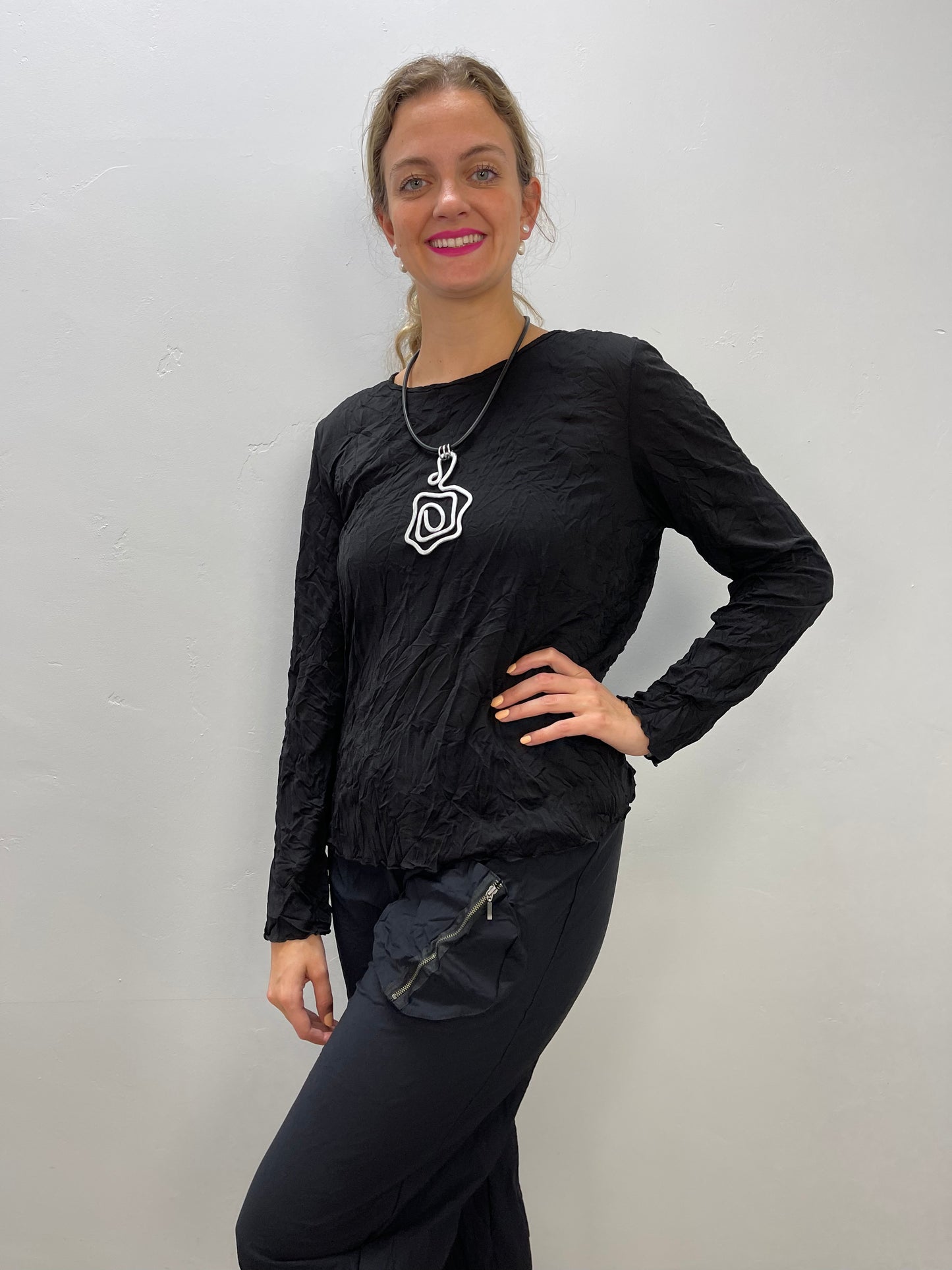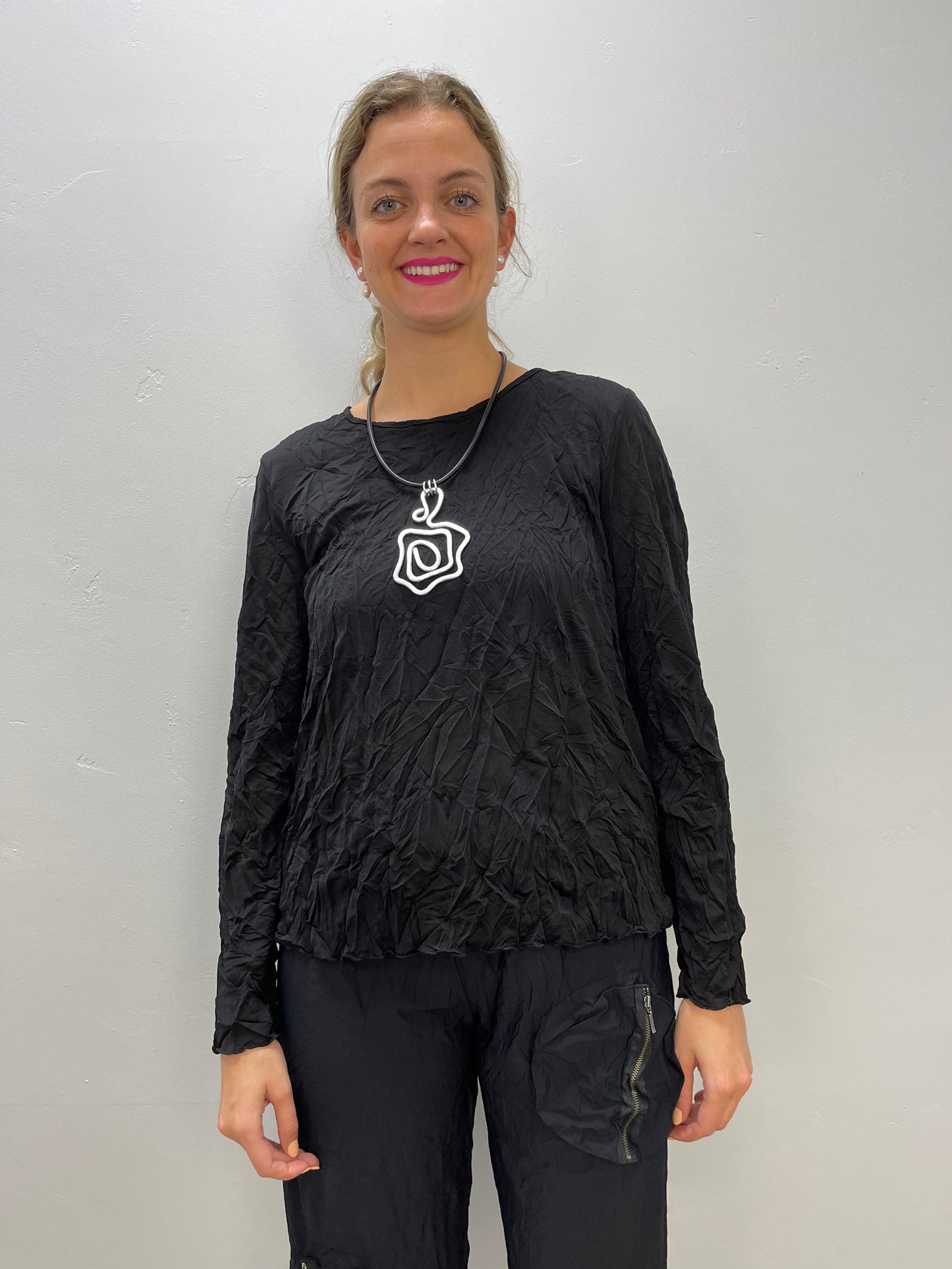 Regular price $53.40Stay chic without sacrificing comfort in our Black Crinkle Long Sleeve Basic Top. Crafted from luxurious crinkle jersey fabric, this incredibly soft top features a scoop neck and long length sleeves for a timelessly stylish look. Enjoy effortless comfort and style with this must-have top!
