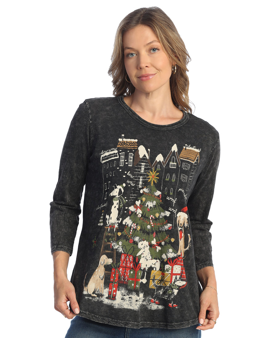 Black Mineral Wash Dogs of Christmas A-line Tunic