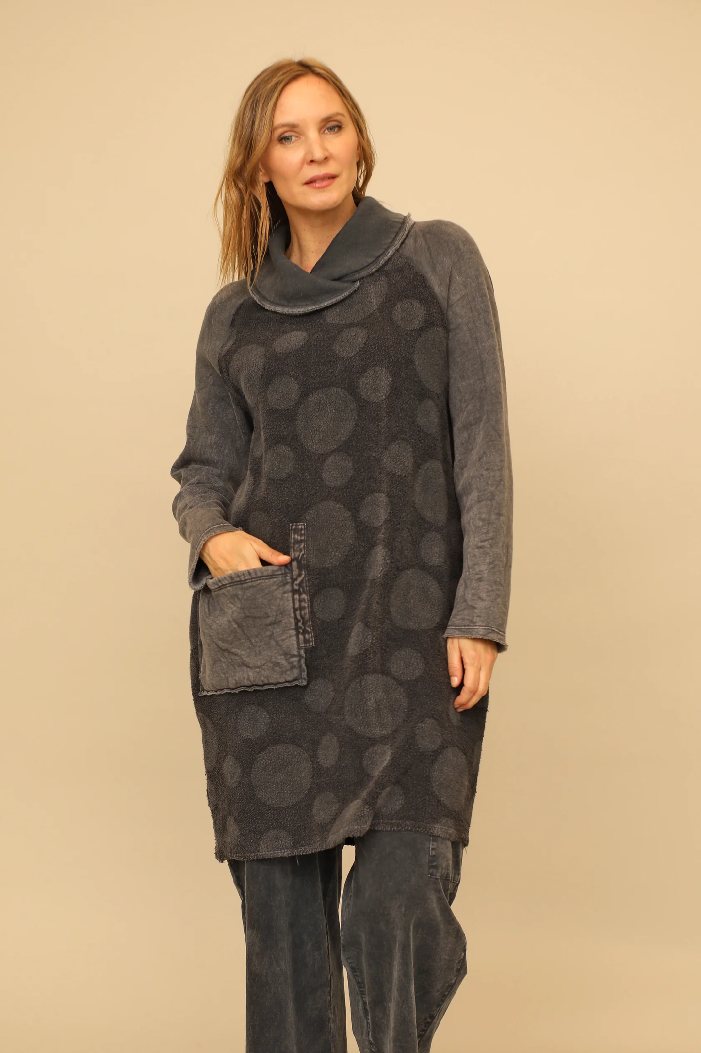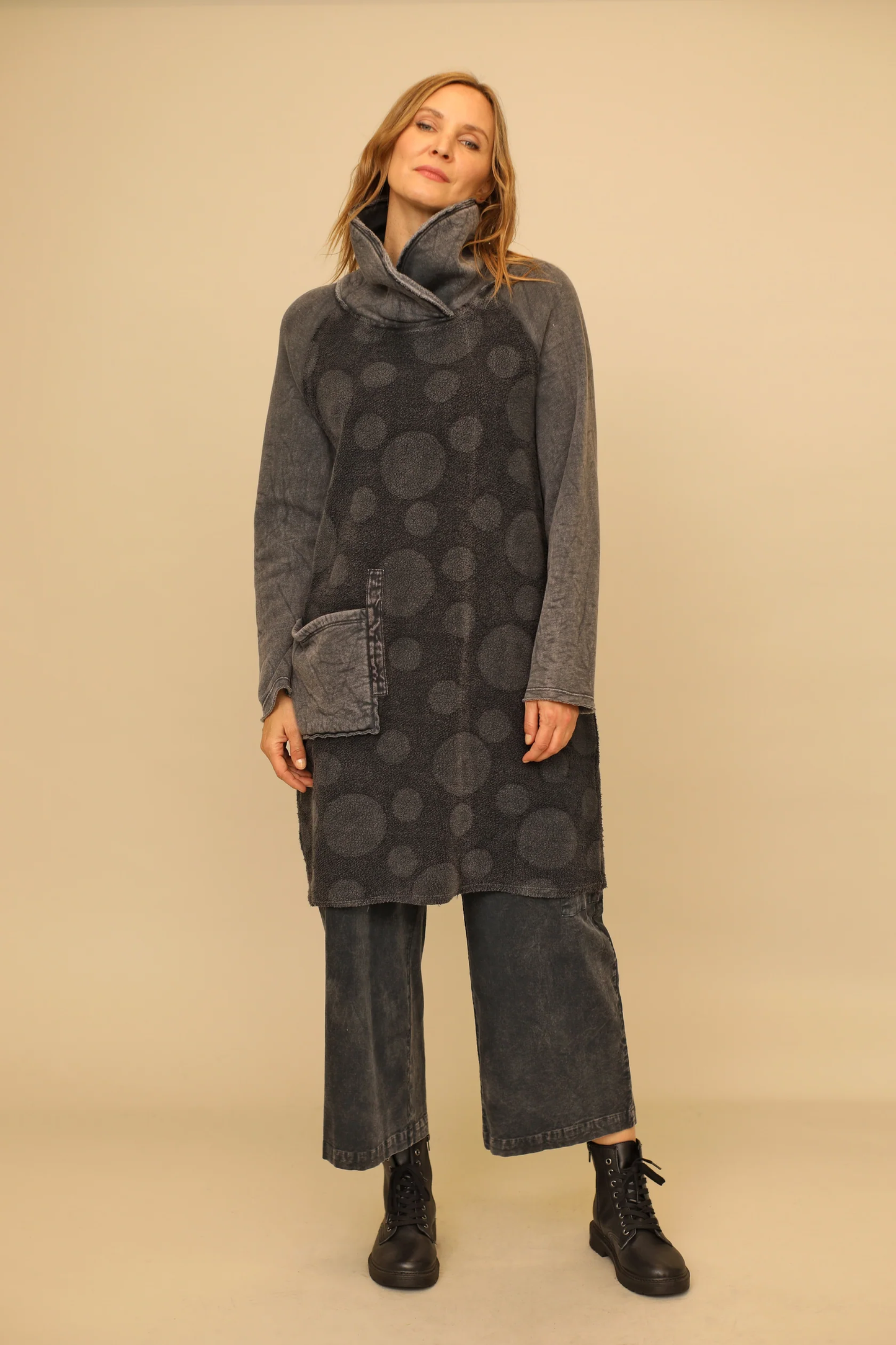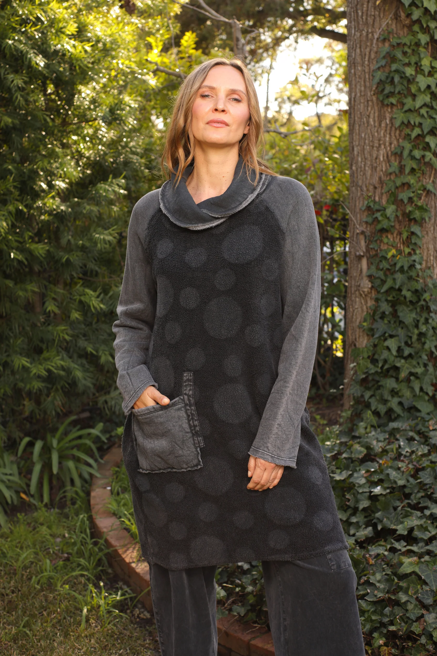 Regular price $174.30Unleash your unique sense of style with our Black Vintage Wash Polka Dot Dress. Featuring an overlapping raw edged turtleneck and contrasting fabric raglan long sleeves, this dress offers versatility and charm. The straight hemmed boxy silhouette is sure to flatter any figure. Make a statement with fashion that speaks for itself!