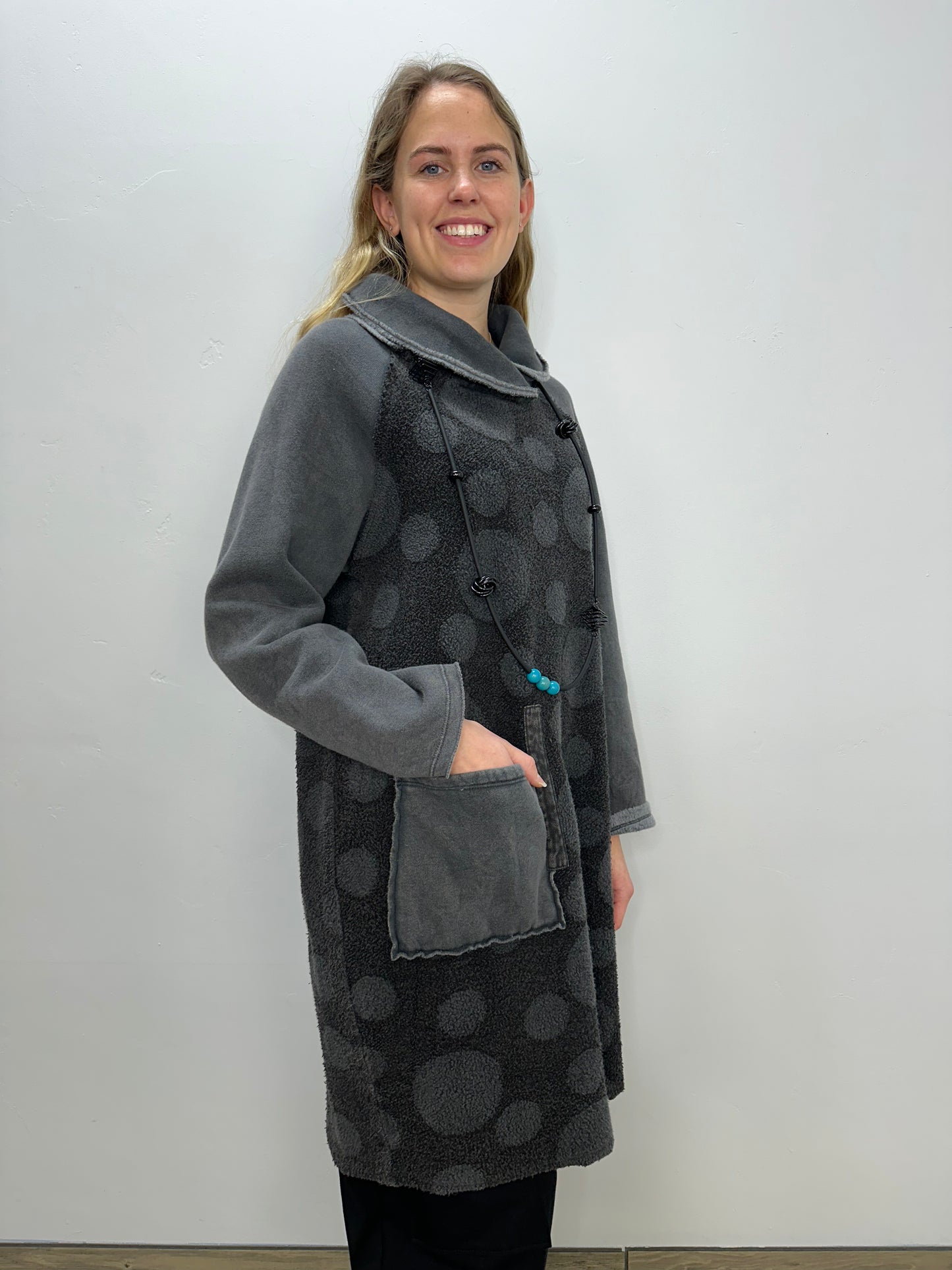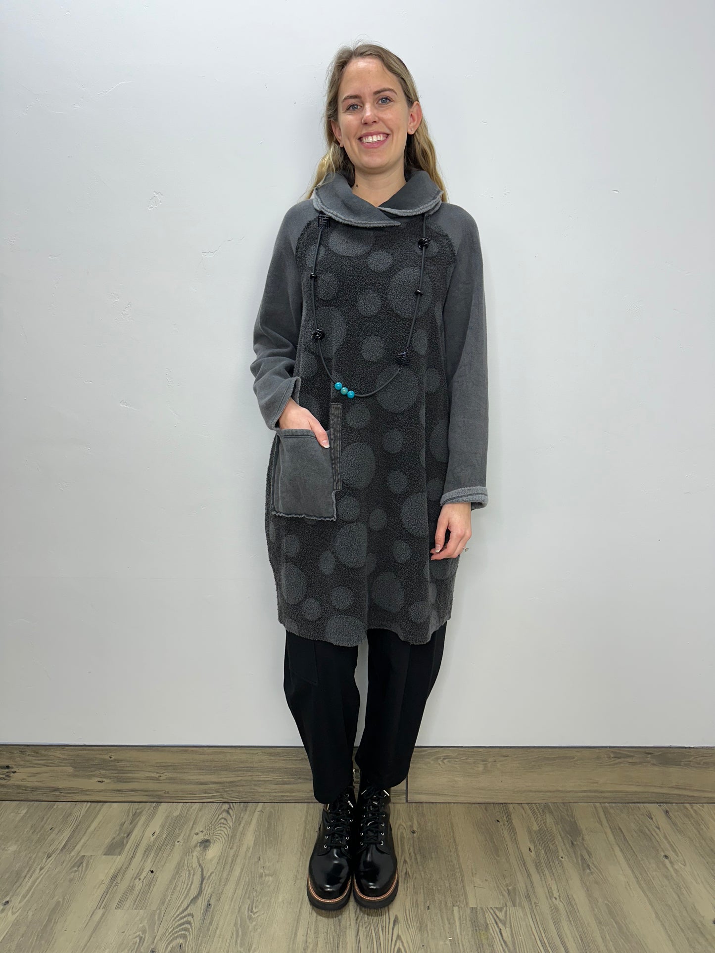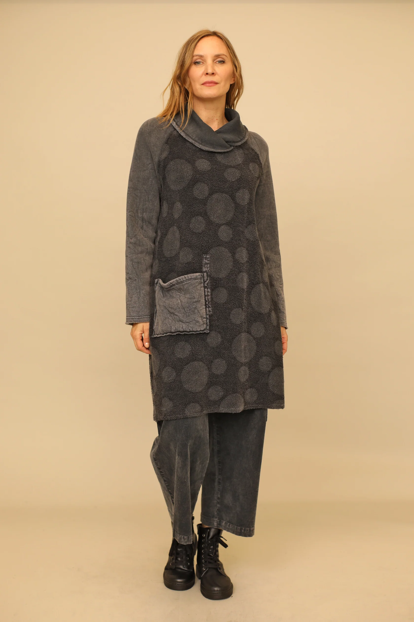 Regular price $174.30Unleash your unique sense of style with our Black Vintage Wash Polka Dot Dress. Featuring an overlapping raw edged turtleneck and contrasting fabric raglan long sleeves, this dress offers versatility and charm. The straight hemmed boxy silhouette is sure to flatter any figure. Make a statement with fashion that speaks for itself!