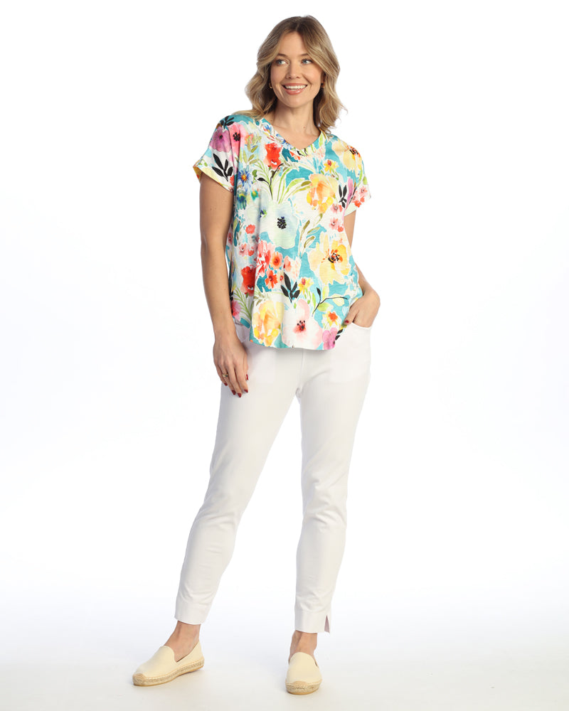 Blooming Cotton Modal Pattern Short Sleeve Top