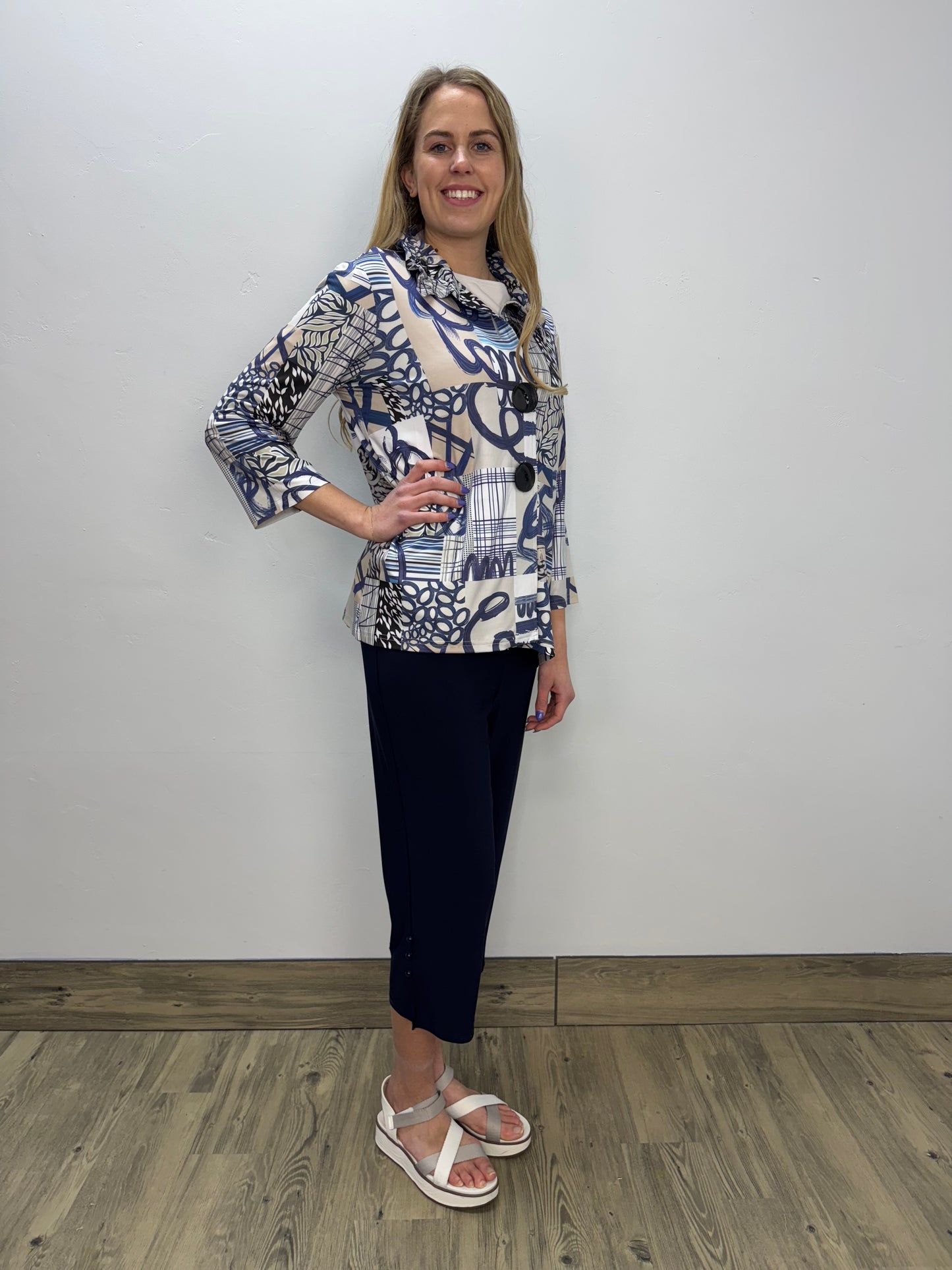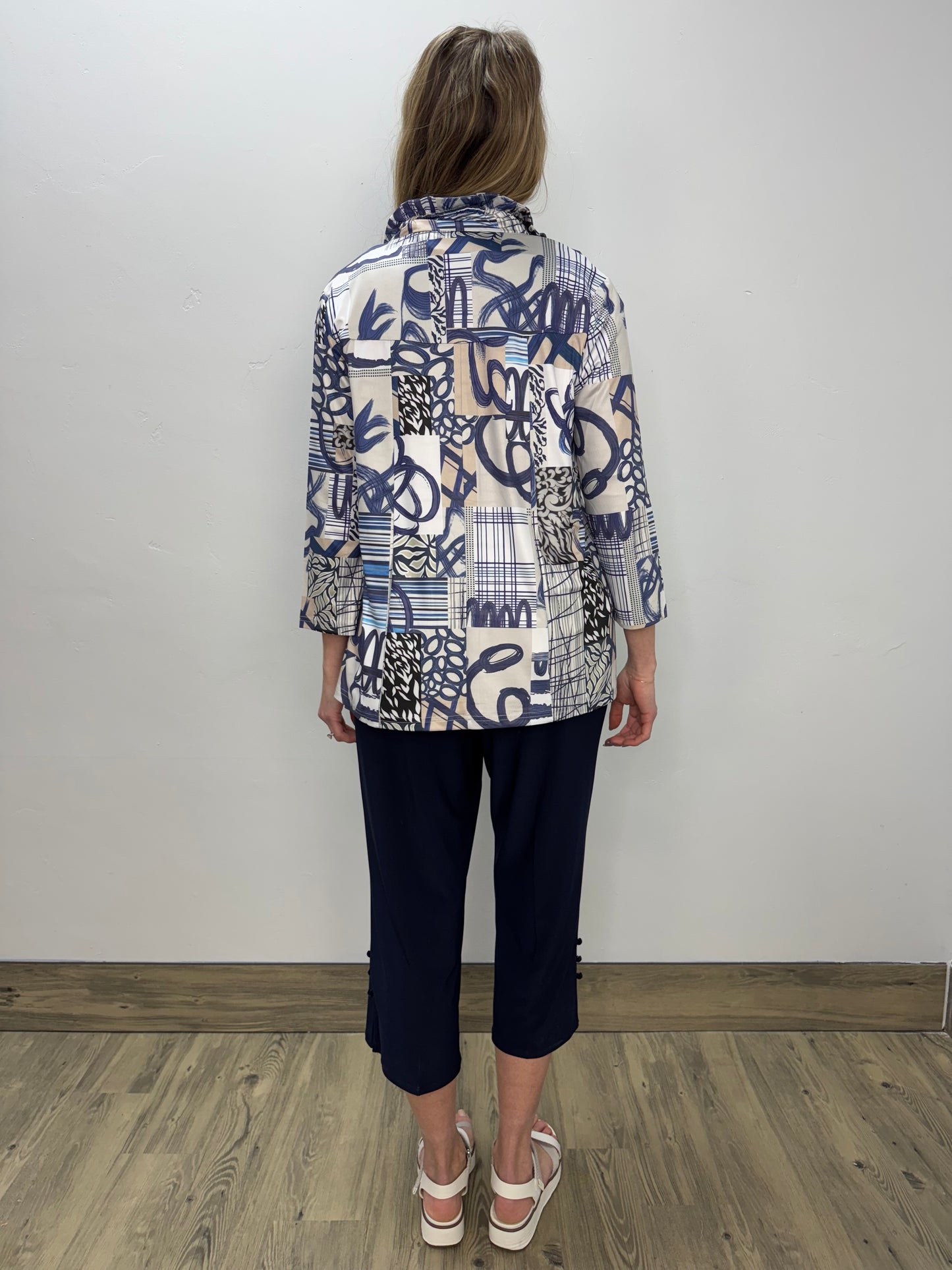 Blue and Tan Wire Ruffle Collar Pattern Button Up Jacket