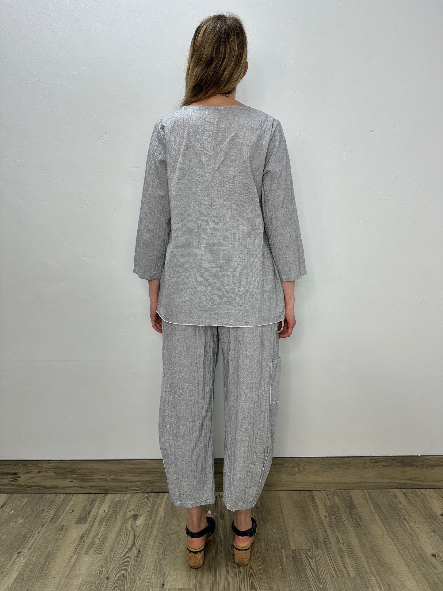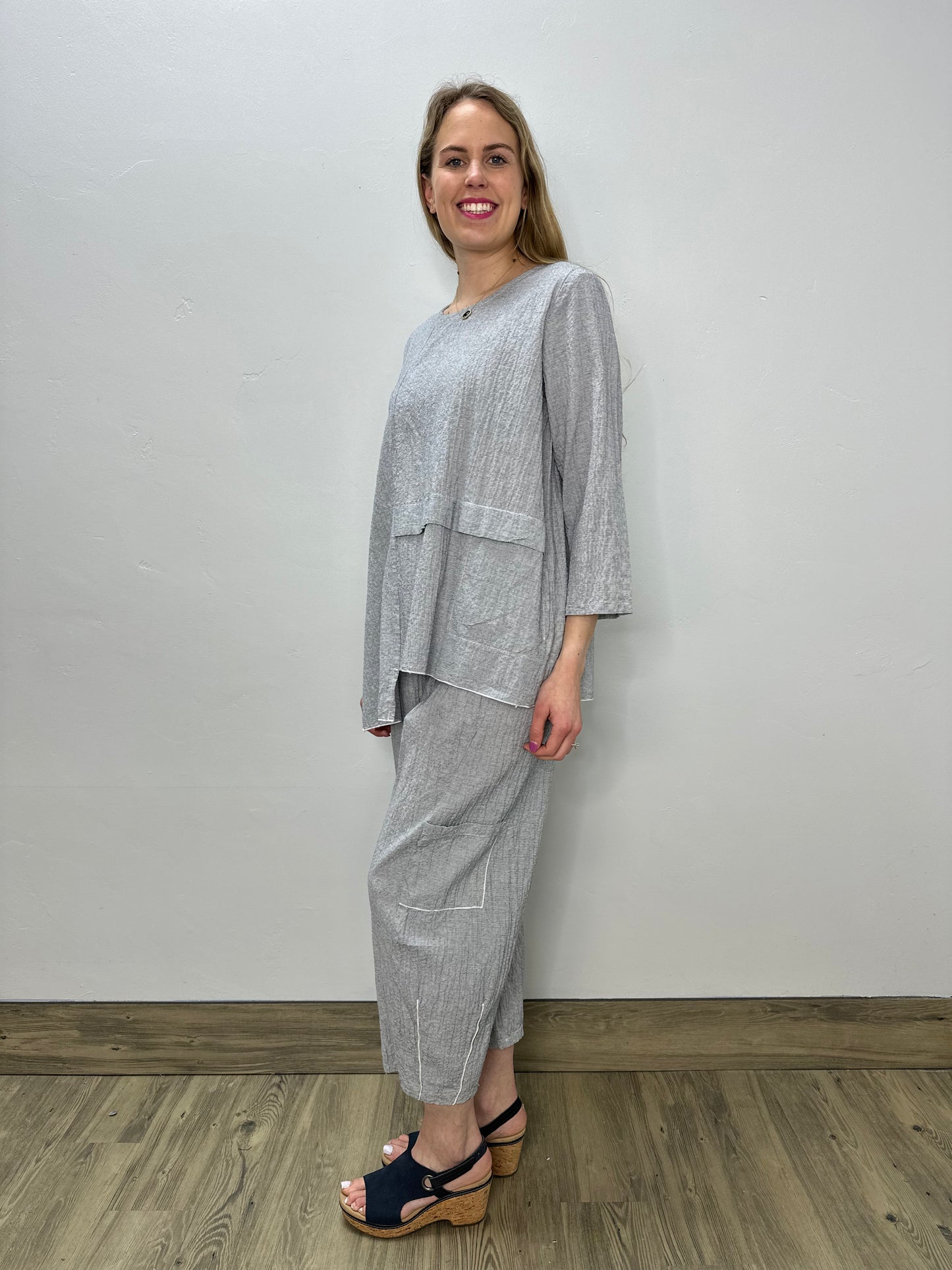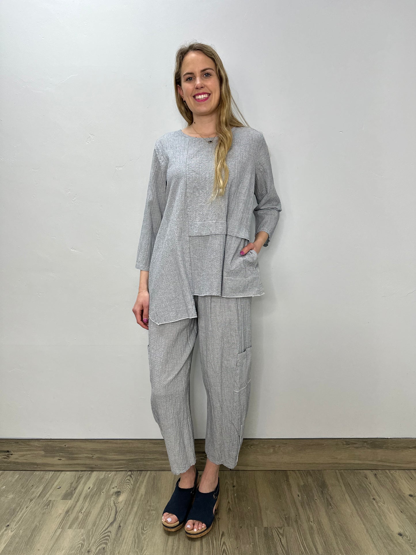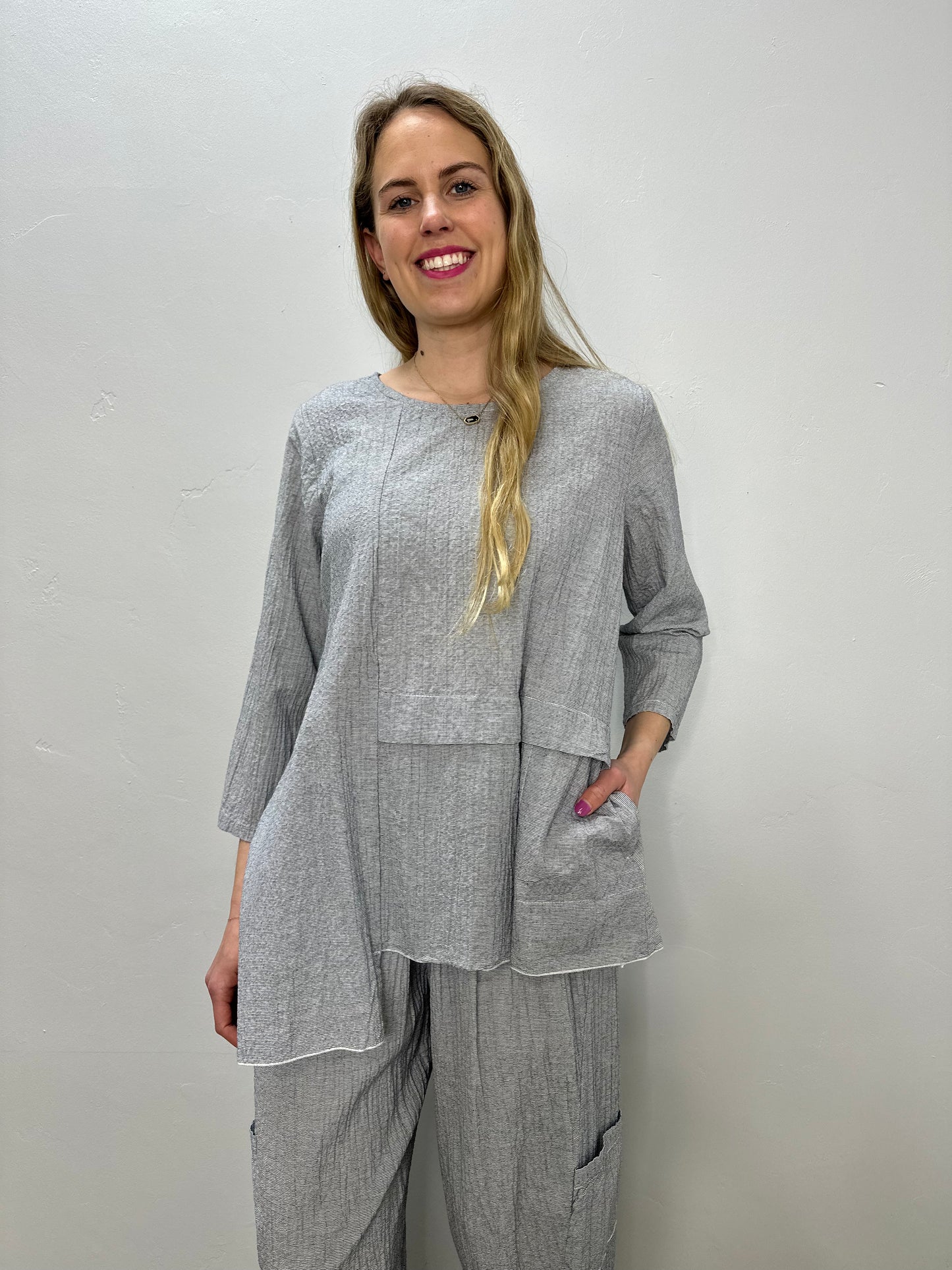 Regular price $111.20Elevate your wardrobe with this gorgeous Blue Gray Textured Cotton Top! Its asymmetrical design and scoop neck add a modern touch, while the beautiful fabric ensures comfort and style. Perfect for any occasion, this 3/4 sleeve top is a must-have for any fashion enthusiast. Make a statement and stand out with this unique and elegant piece!