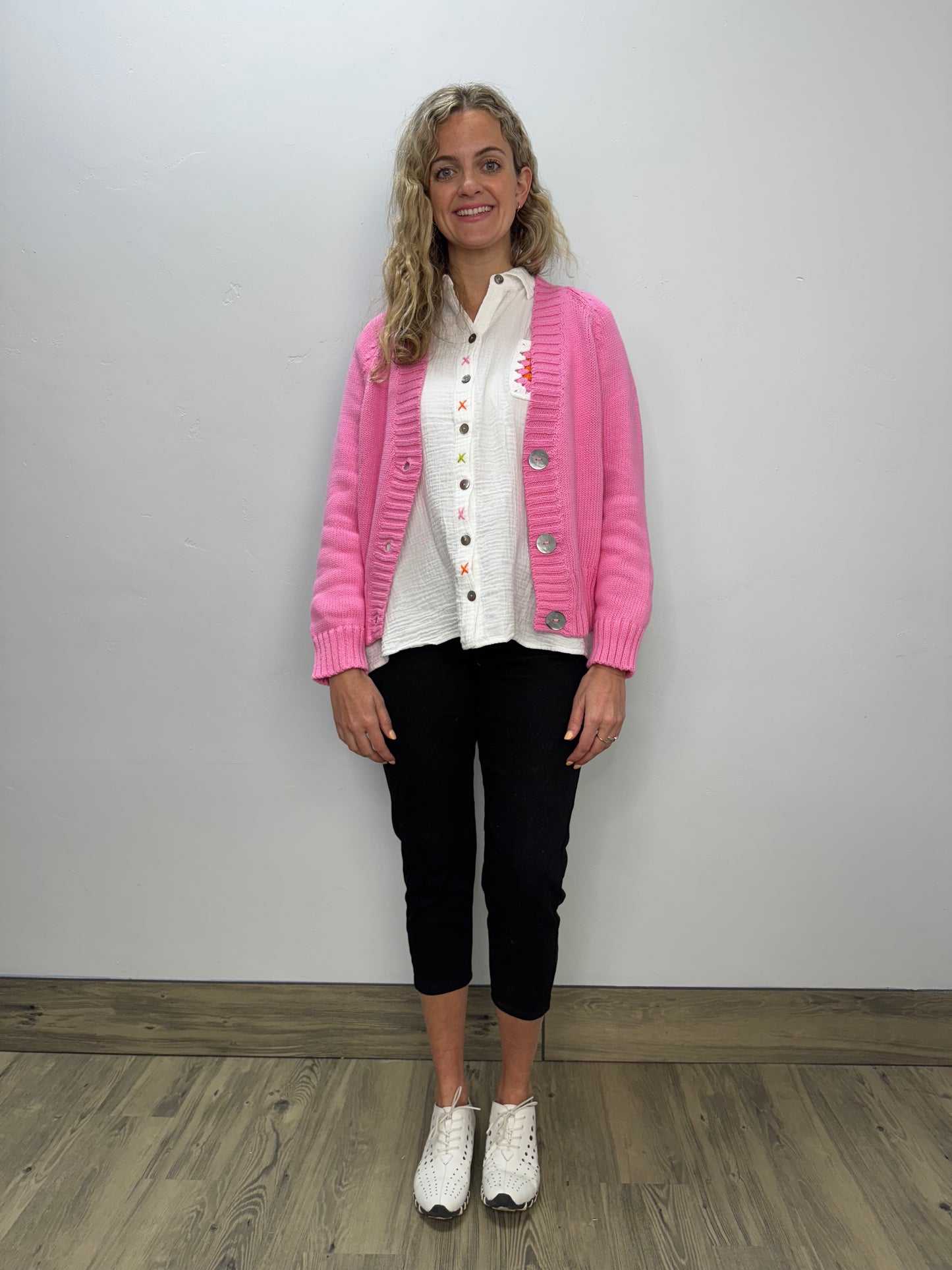 Regular price $104.30Enhance your wardrobe with this beautiful knit button down cardigan! Versatile and stylish, it's the perfect addition to any outfit. Complete your look by pairing it with our cotton gauze button down top. Upgrade your style with this bubblegum pink cardigan - one size fits all!