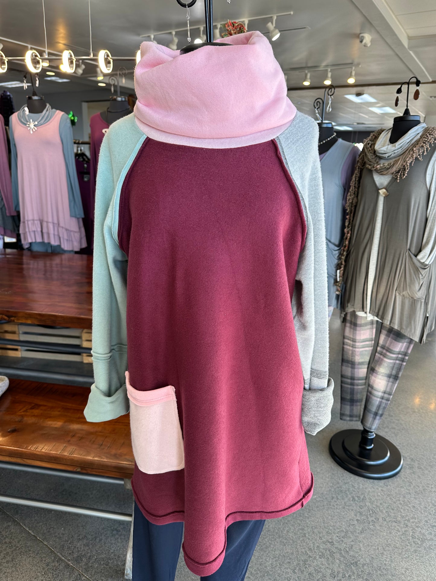 Burgundy Mint Mixed Up Colorado Funnel Neck Sweatshirt with Pocket