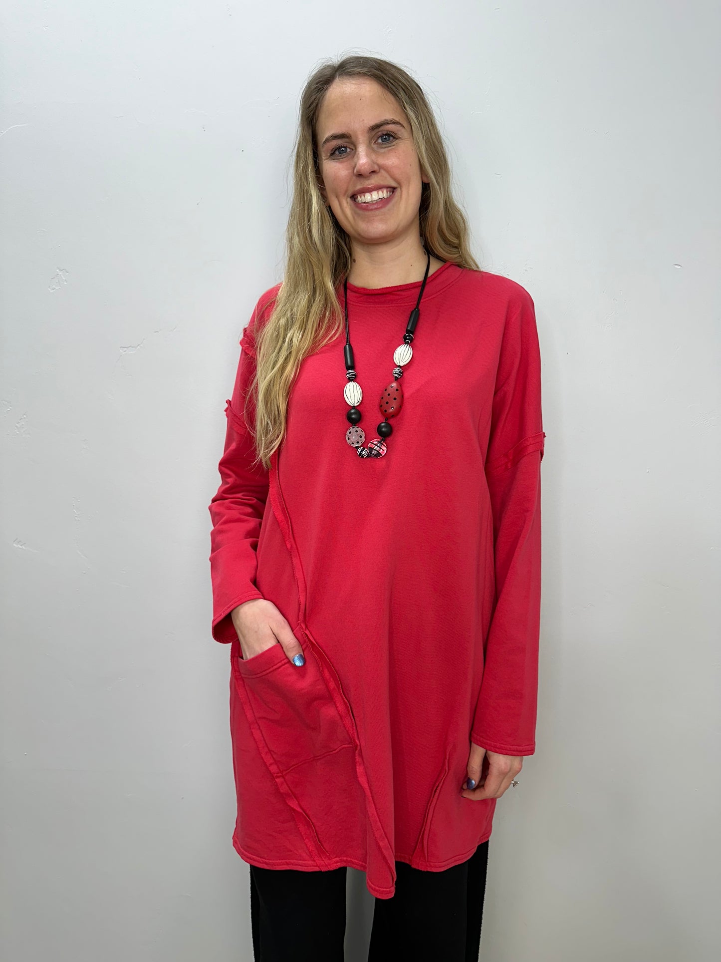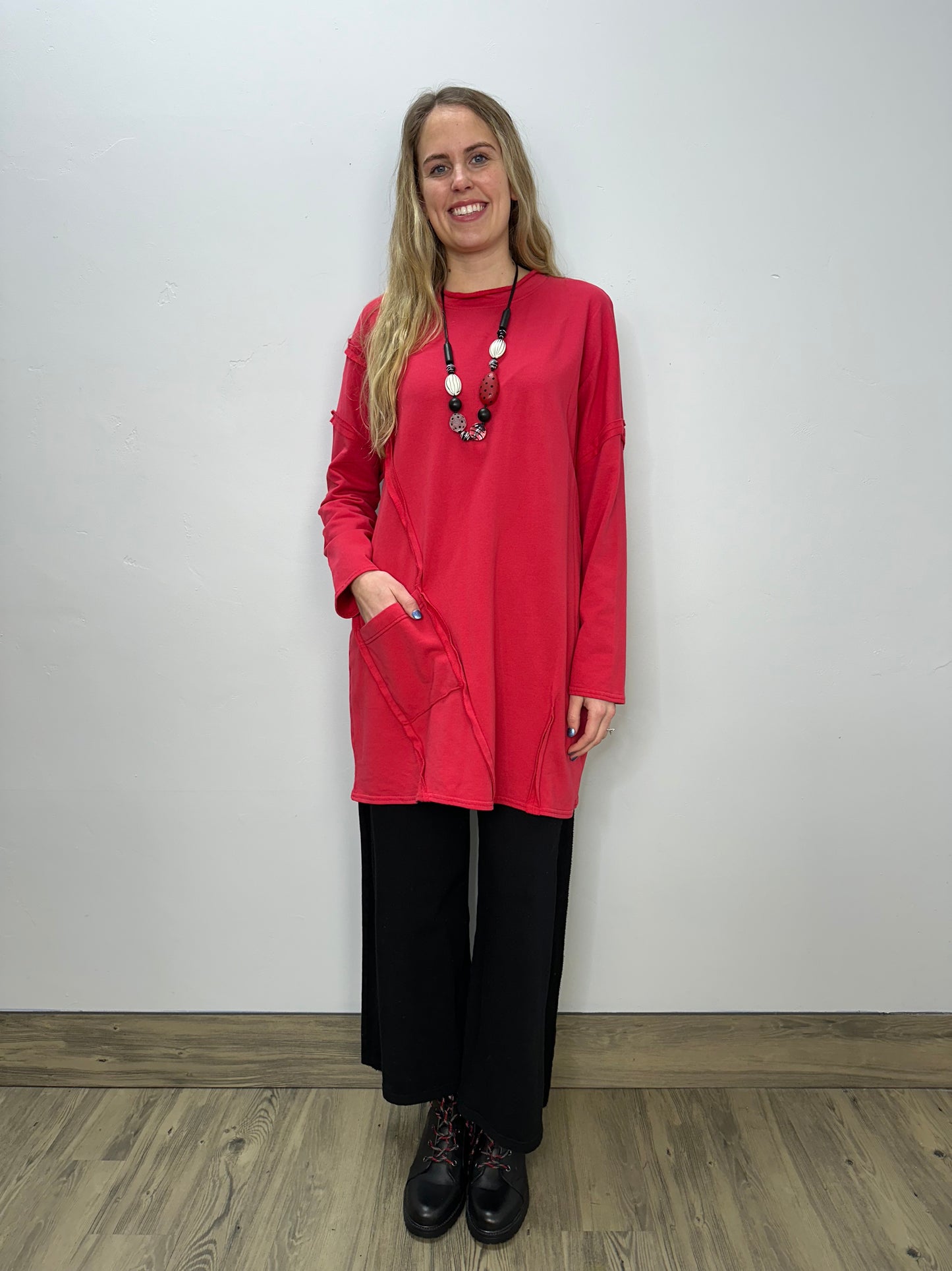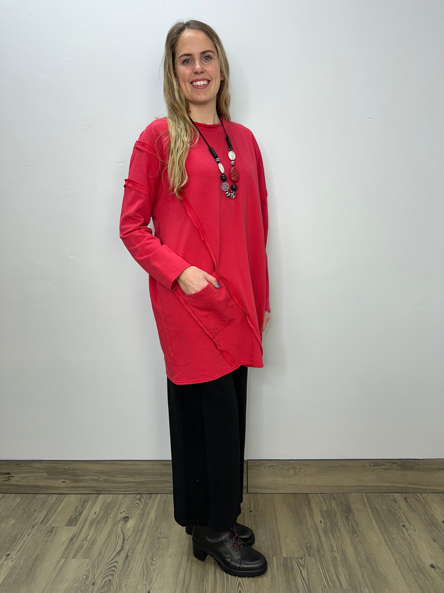 Regular price $111.30Wrap yourself in cozy comfort with our Cherry Red Long Sleeve Fleece Tunic! This beautiful tunic boasts raw asymmetrical seaming, a convenient patch pocket, and a round neckline for a stylish touch. Made with soft fleece, it's the perfect addition to your wardrobe for ultimate comfort and style.