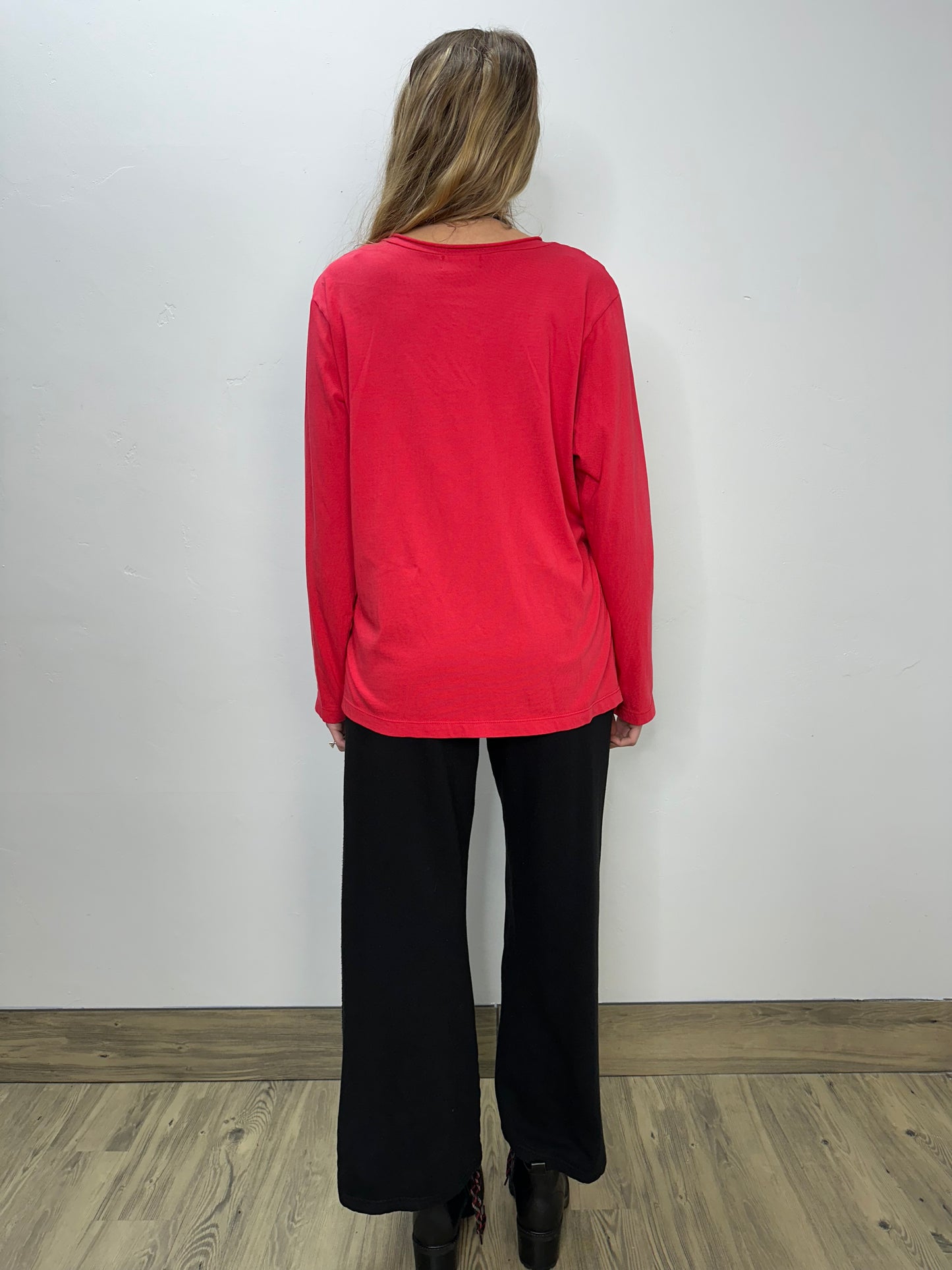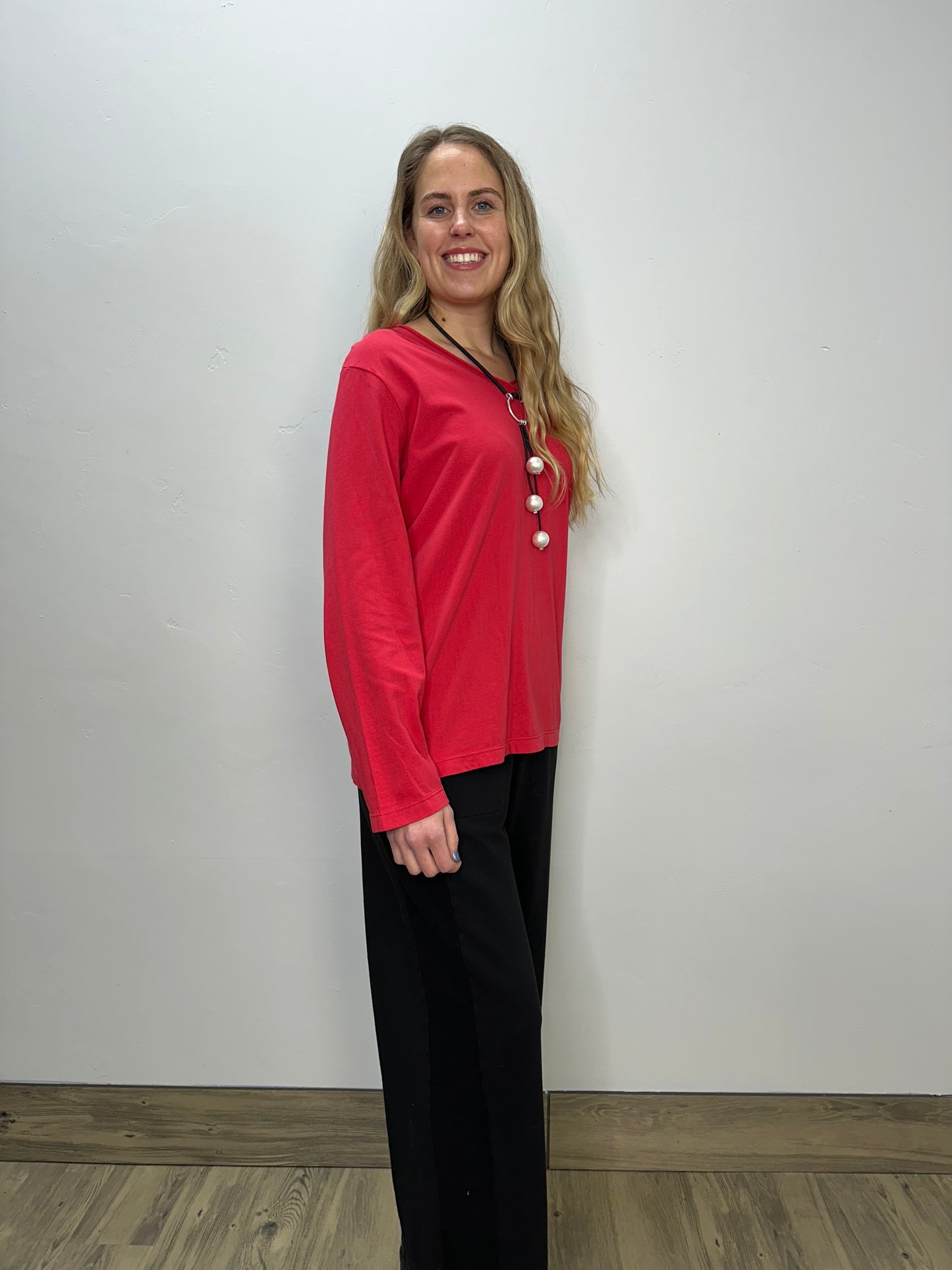 Regular price $83.30Introducing the most comfortable and stylish addition to your wardrobe - our Cherry Red V-Neck Top! Made from soft pre-washed and pre-shrunk fabric, this top features a flattering v-neck and long sleeves. You won't want to take it off!