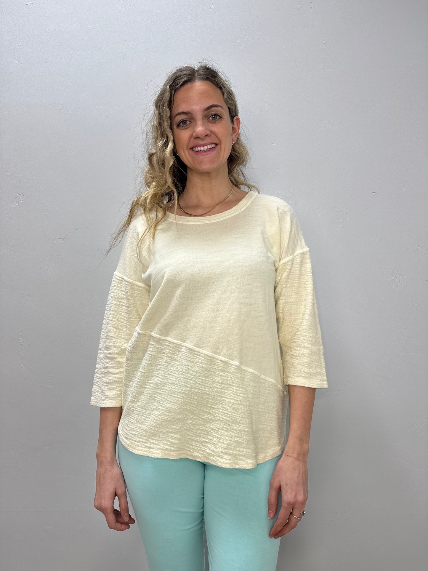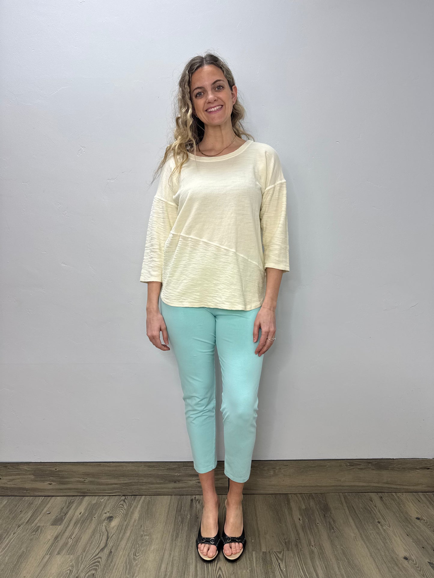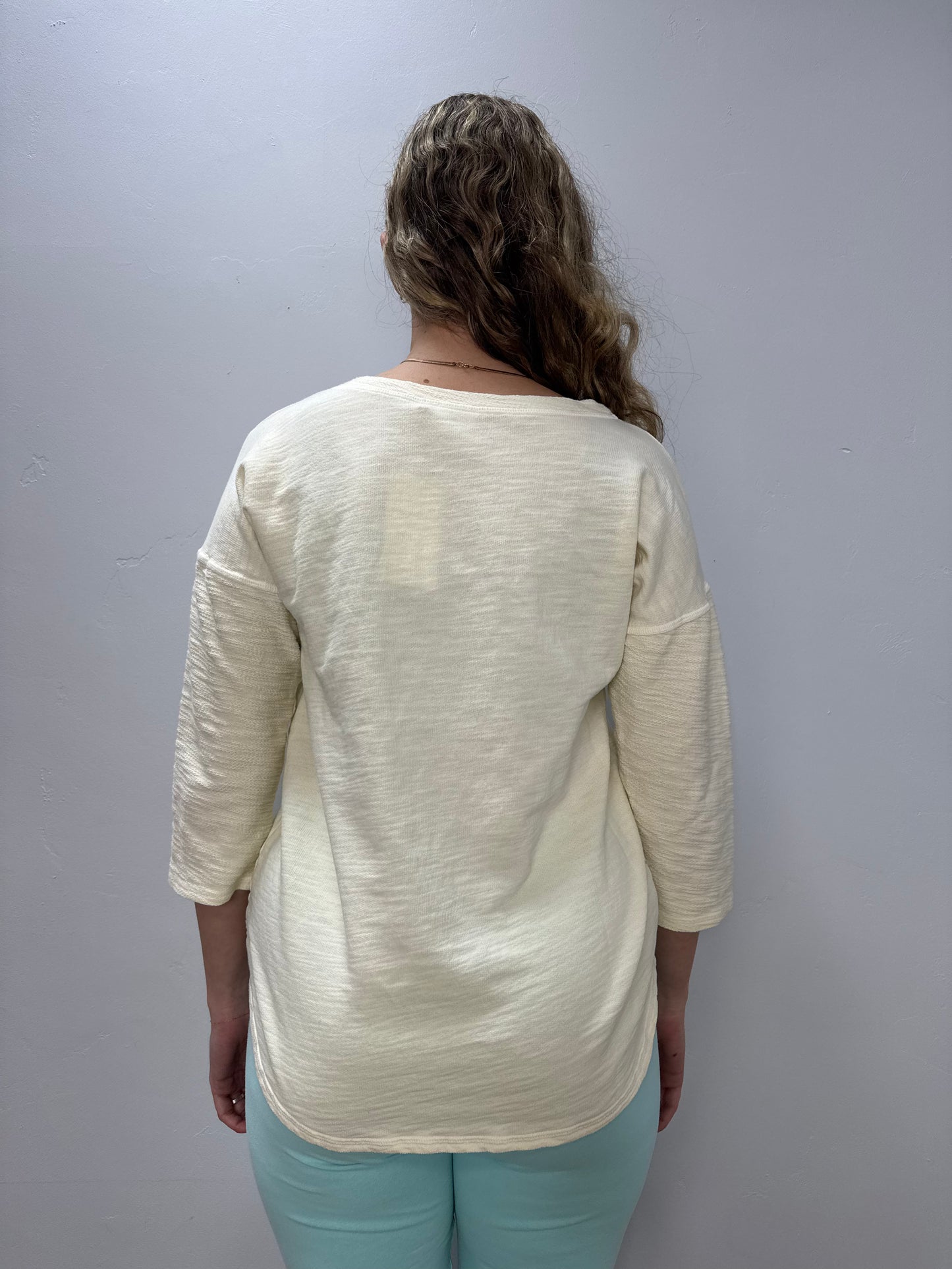 Cream 3/4 Sleeve Mock Neck Cotton Top