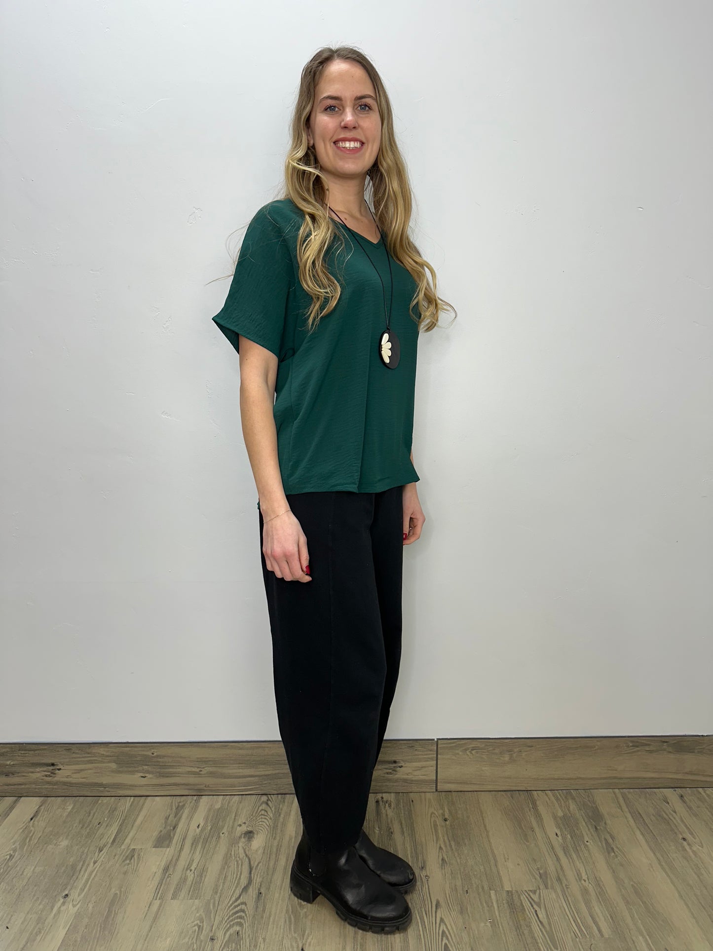 Regular price $41.30Add a touch of elegance with our Forest Green Short Sleeve V-Neck Top! The pretty forest green color and soft v-neck give a stylish and versatile look, perfect for work or any event. Upgrade your wardrobe with this must-have piece!