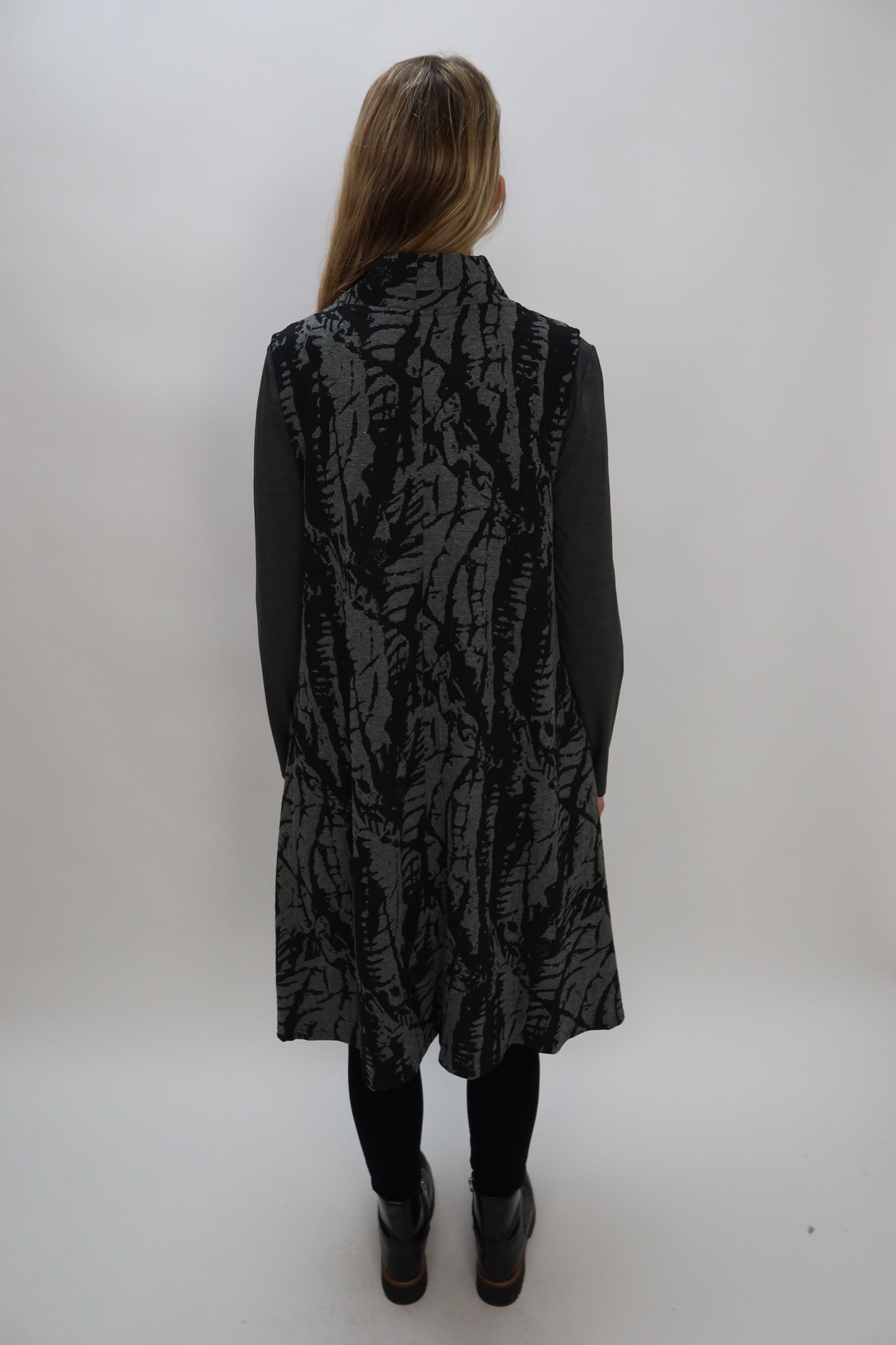 Gray and Black Forest Knit Jacquard Hi Low Sleeveless Tunic Dress