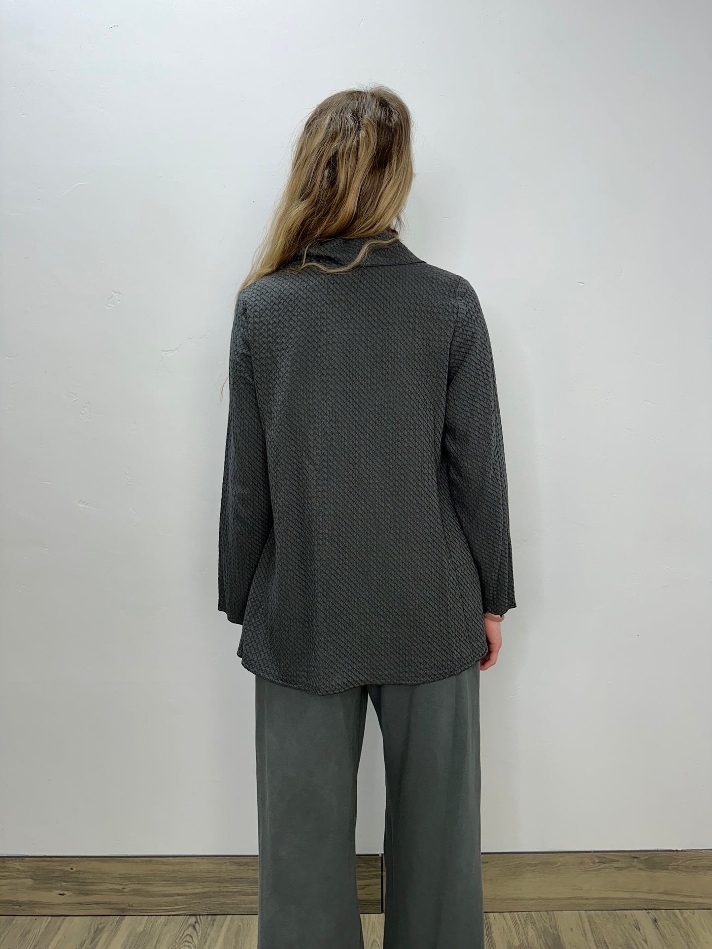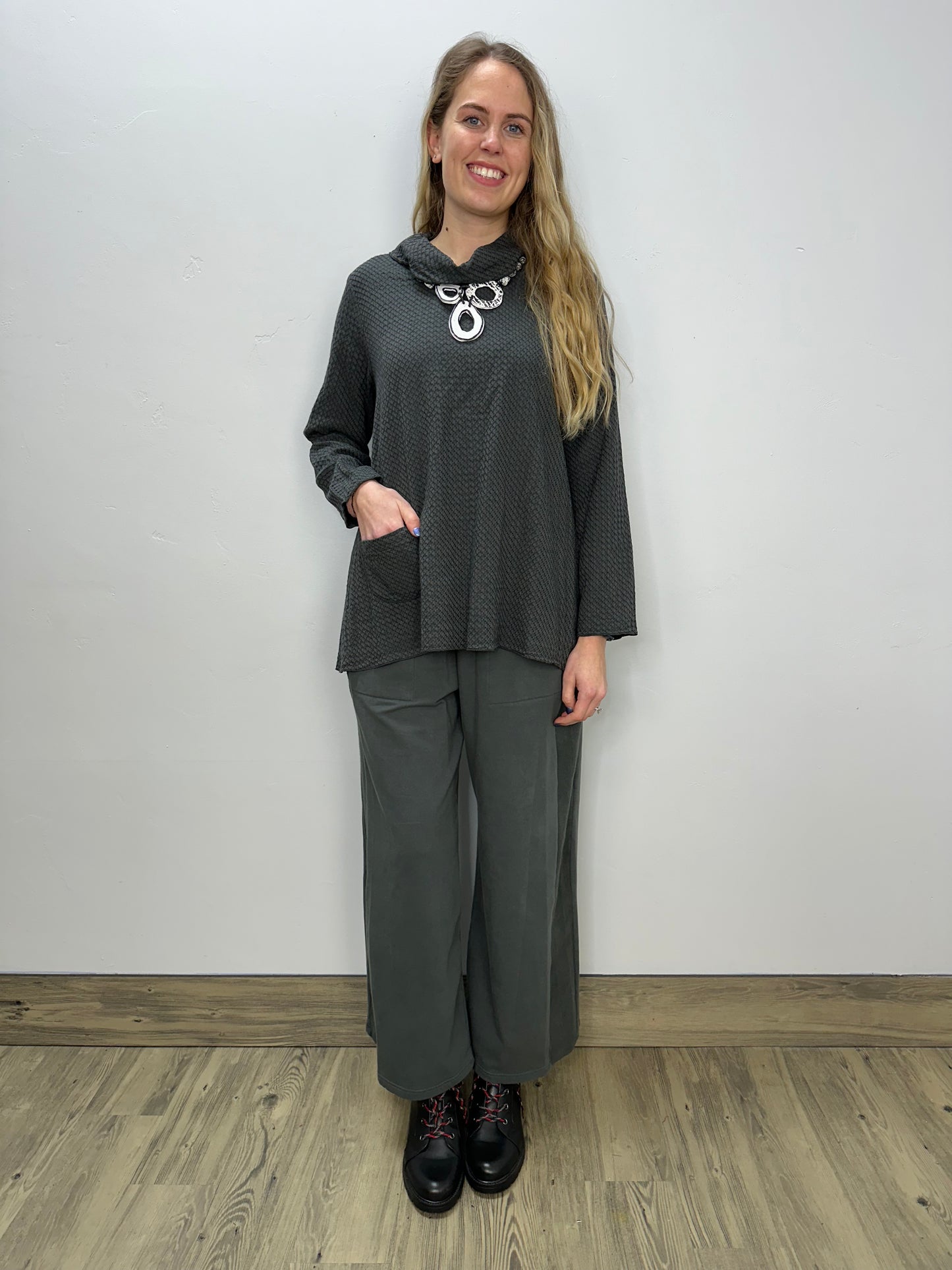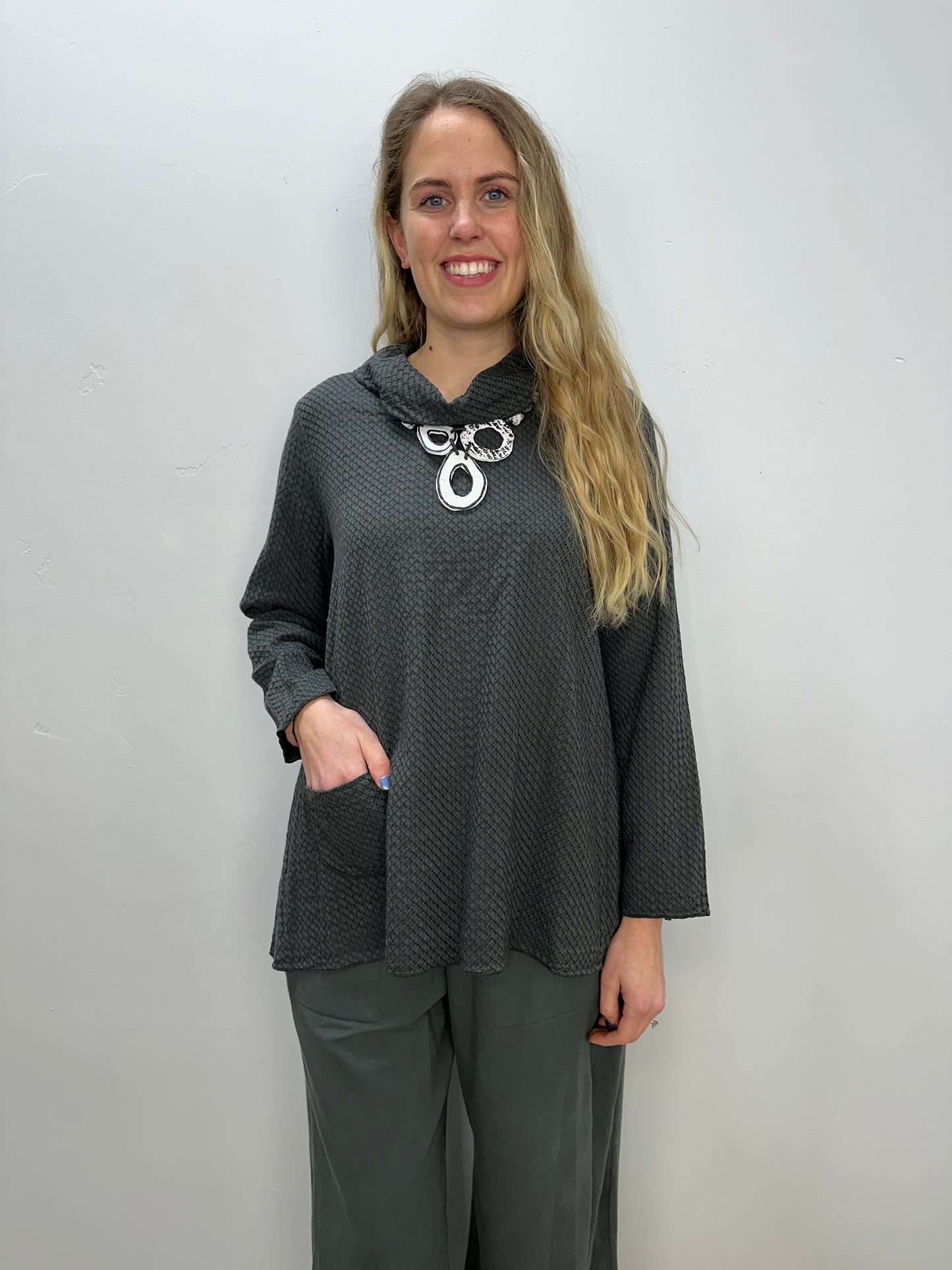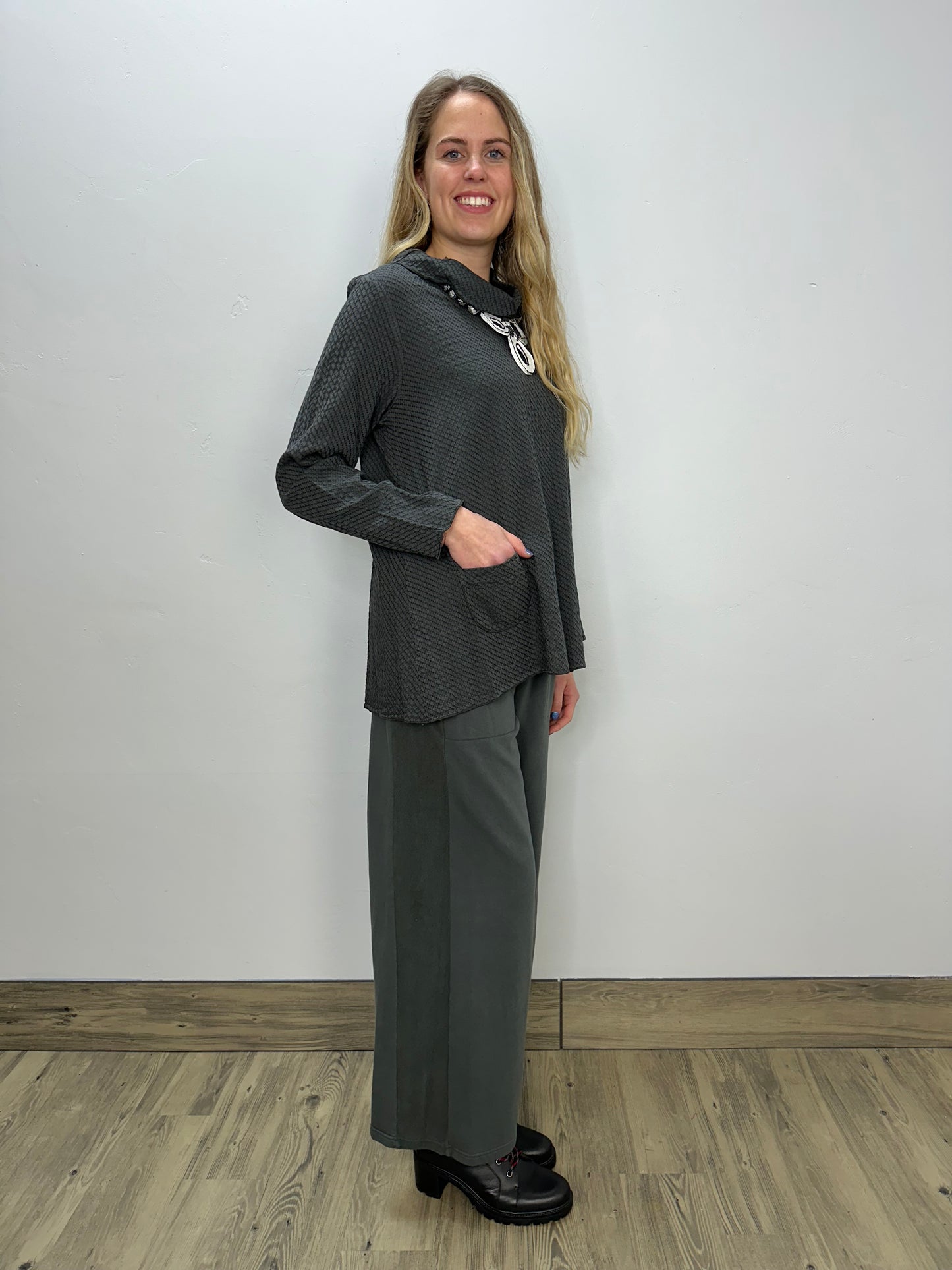 Iron Grey Honeycomb Mock Neck Top