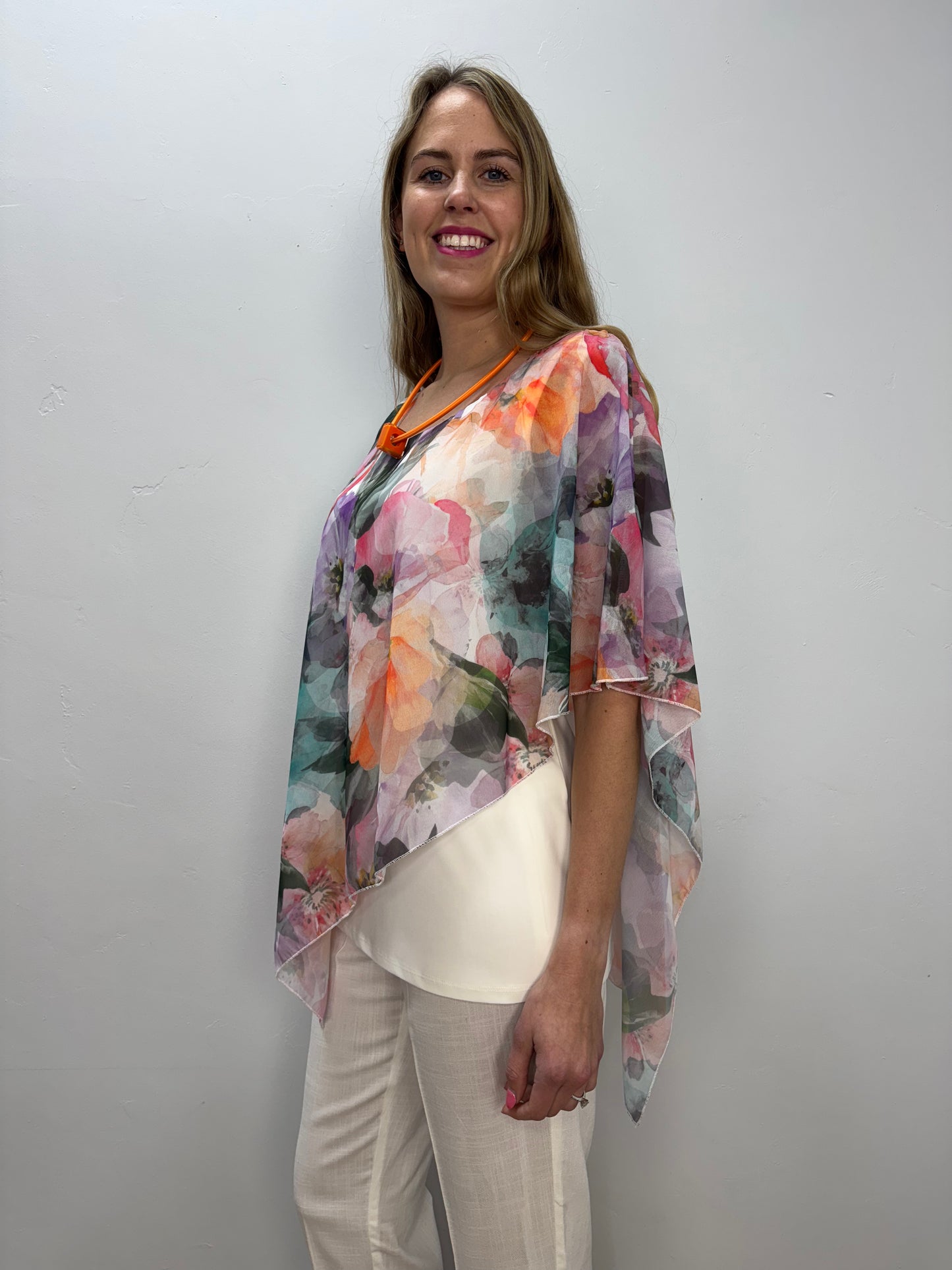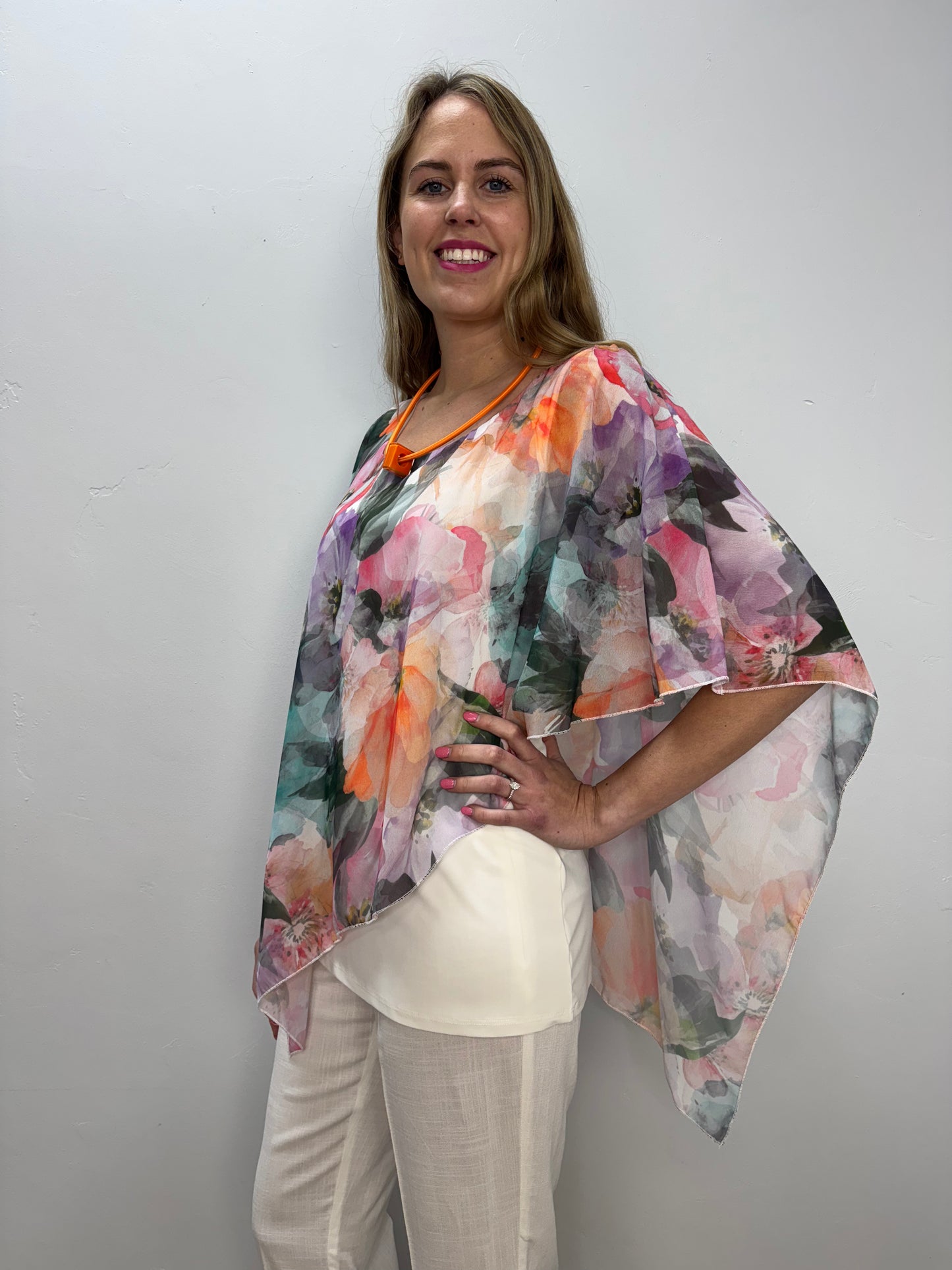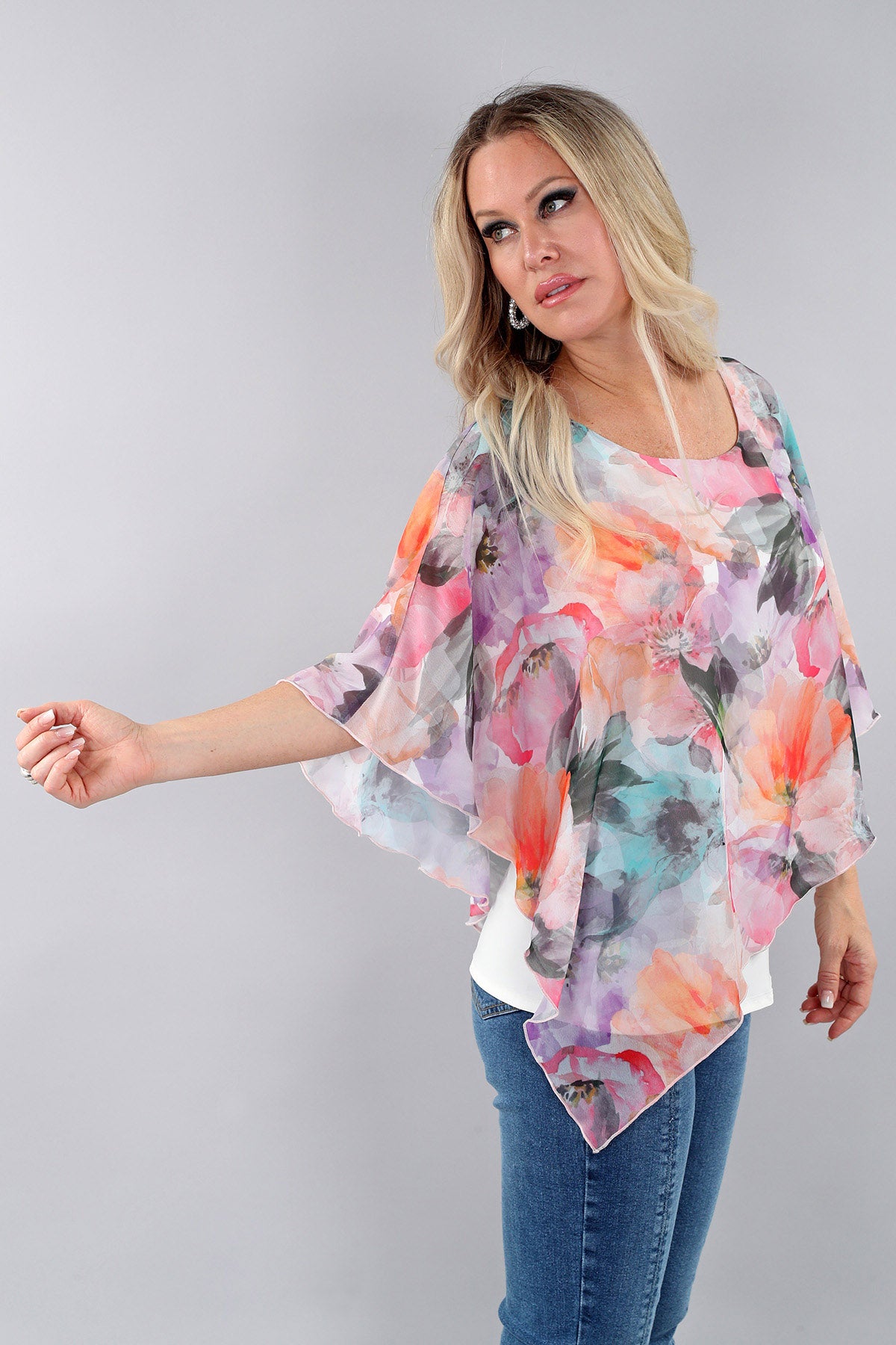 Regular price $87.20This Fuchsia Floral Chiffon Shawl is perfect for any special gathering. The beautiful floral crinkle chiffon top with attached long sleeves underneath in ITY fabric makes it the perfect combination of beauty and comfort! Add a touch of the special to any event with this stunning shawl.