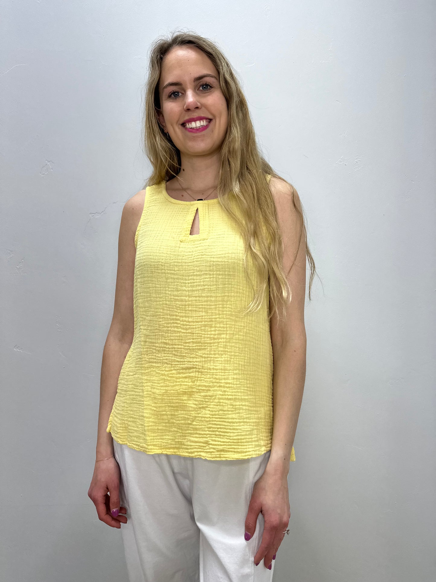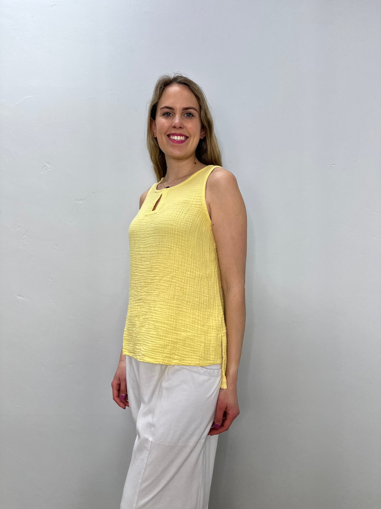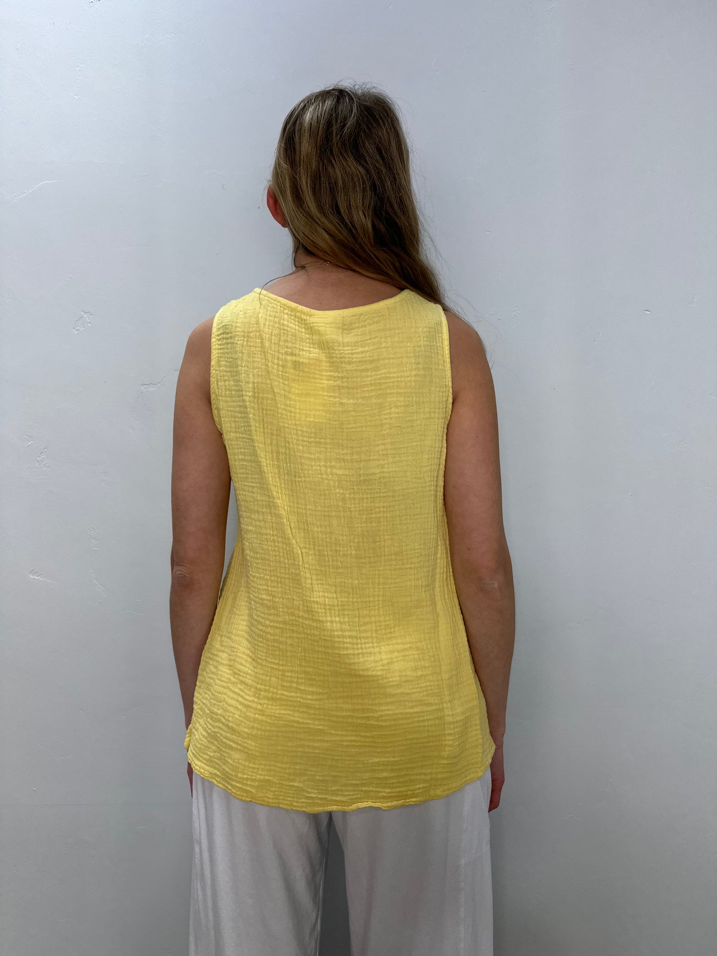 Marigold Yellow Pin Tuck Sleeveless Cotton Top
