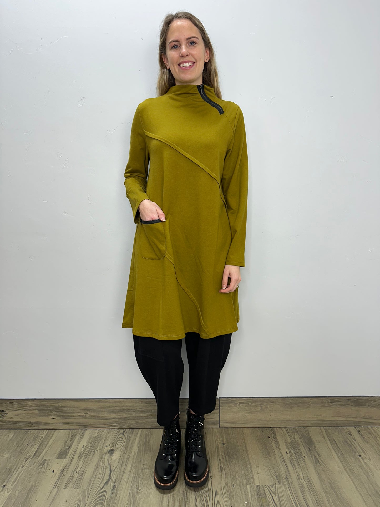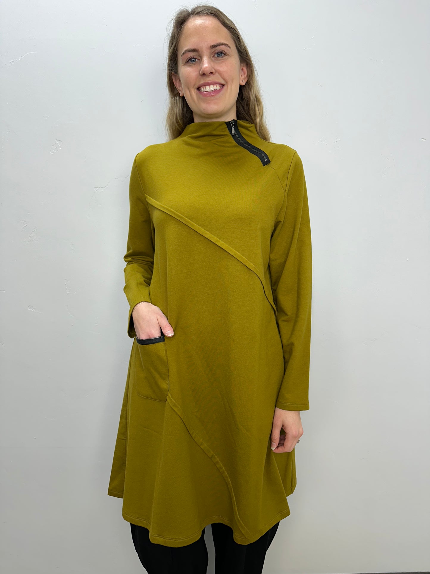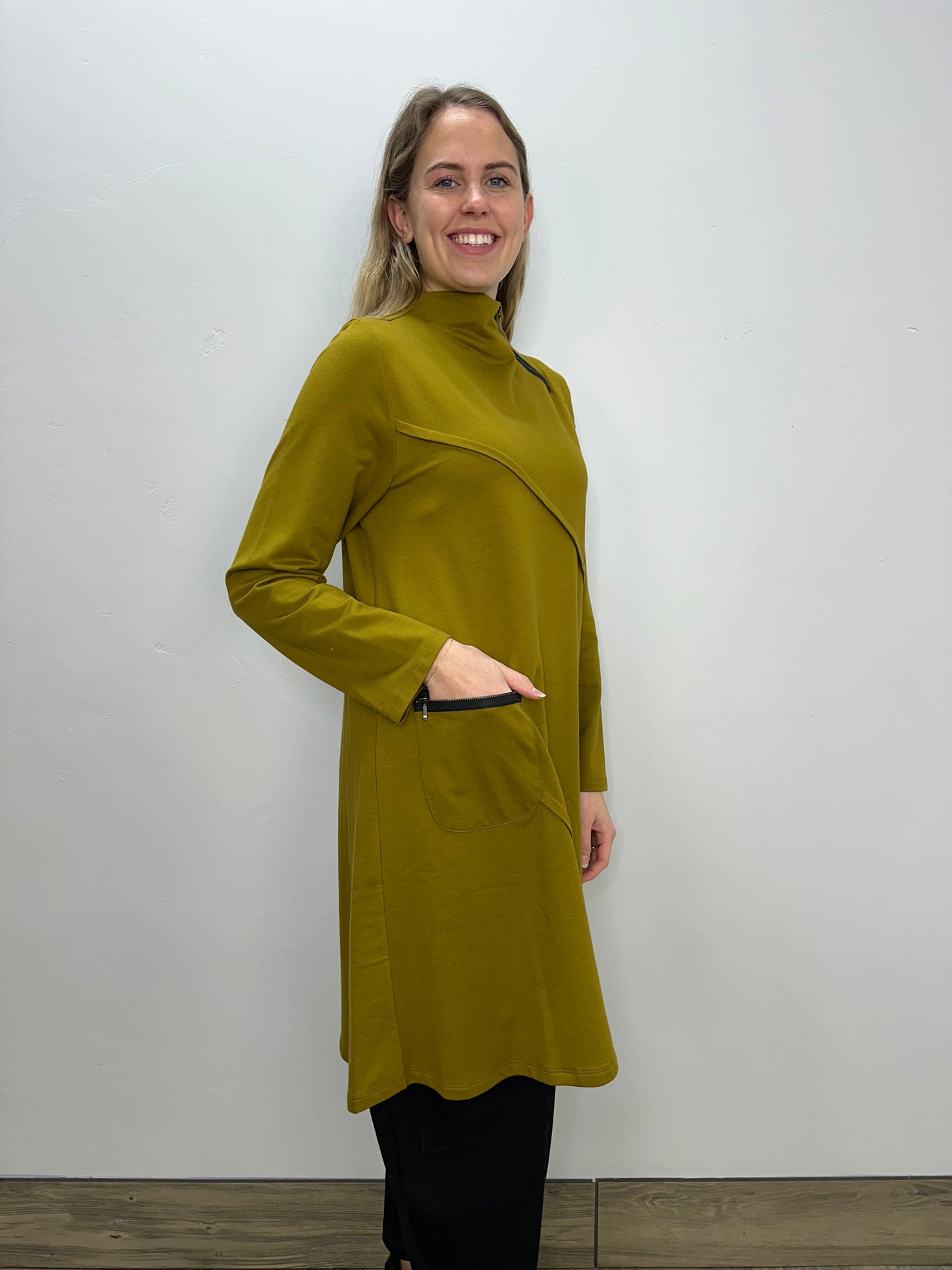 Regular price $146.30The Marsh Long Sleeve French Terry Dress is the perfect blend of comfort and contemporary style. Made from solid French terry fabric, it features sleek zipper detailing on the mock neckline and a functional front pocket. With its A-line silhouette and mid-body pleats, this dress flatters and moves gracefully with you.