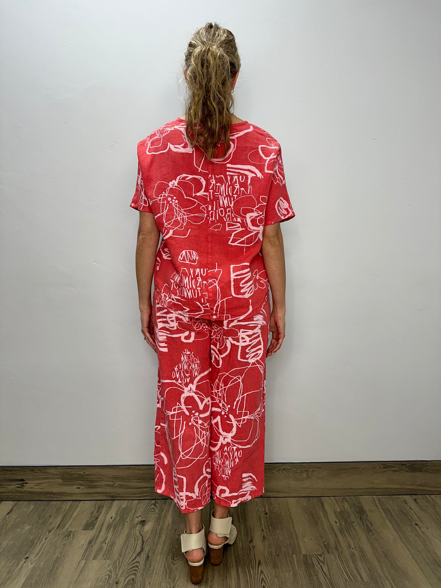 Regular price $119.20Indulge in the luxurious and comfortable feel of our Melon Scribbles Pattern Short Sleeve Oversize Top. Made from 100% linen, the beautiful fabric is perfect for any occasion. With its short sleeves and oversized look, you'll be effortlessly stylish and comfortable all day long. Upgrade your wardrobe and experience the benefits for yourself!