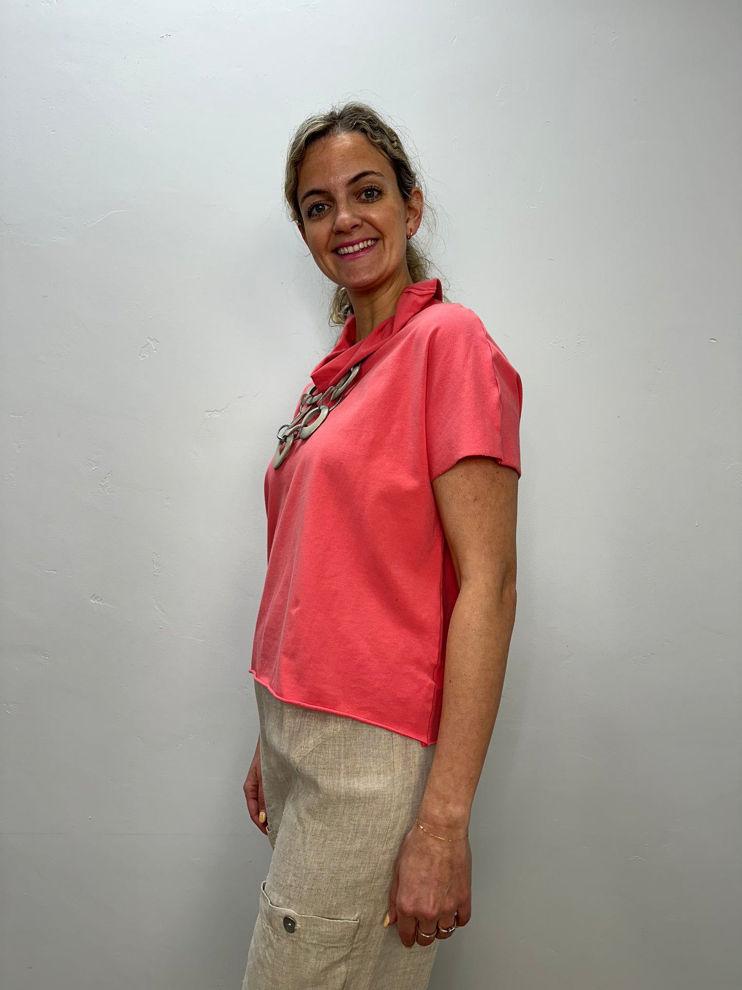 Regular price $87.20Exquisite and effortless, our Melon Short Sleeve Roll Neck Tank is the perfect choice when seeking timeless sophistication. Beautiful melon fabric is framed by a cowl neck and side slits for an undeniably luxurious look. This statement piece will effortlessly elevate your wardrobe.
