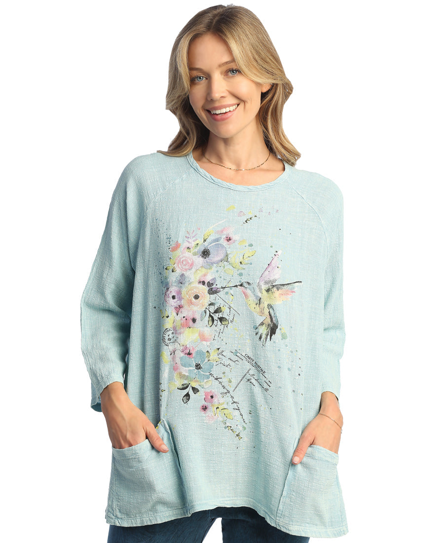 Mint Nantucket Mineral Washed Gauze Tunic Top With Patch Pockets