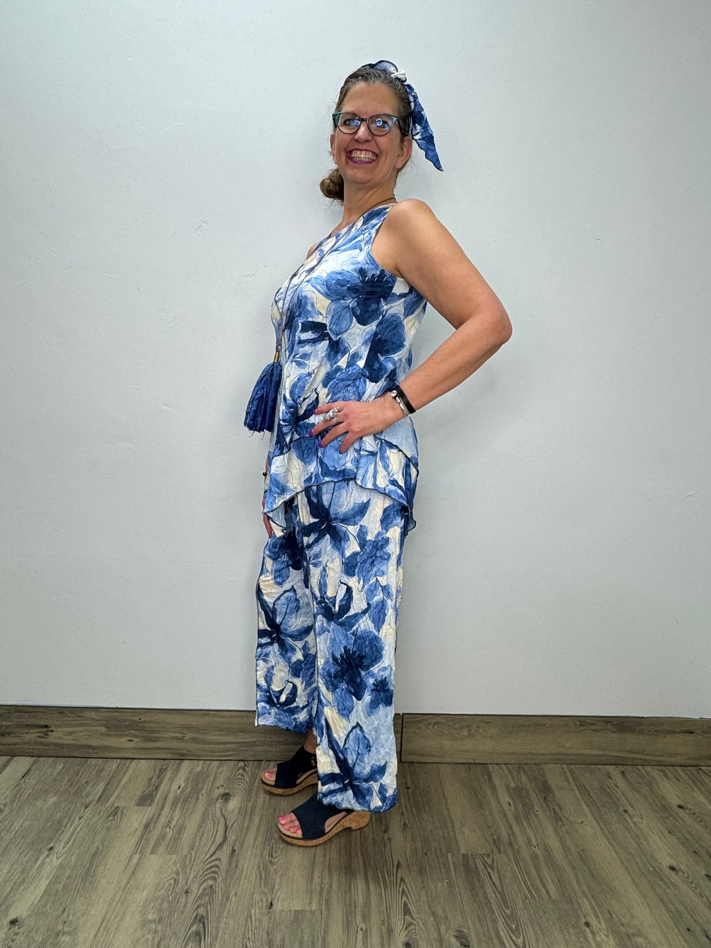 Regular price $71.20Stay stylish and comfortable with our Navy Floral Print Tank! Featuring a stunning floral print and an asymmetric hemline, this sleeveless top is perfect for any occasion. The scoop neck adds a touch of elegance, and it pairs perfectly with the matching floral pant for a complete and chic look. Upgrade your wardrobe with this must-have piece today!