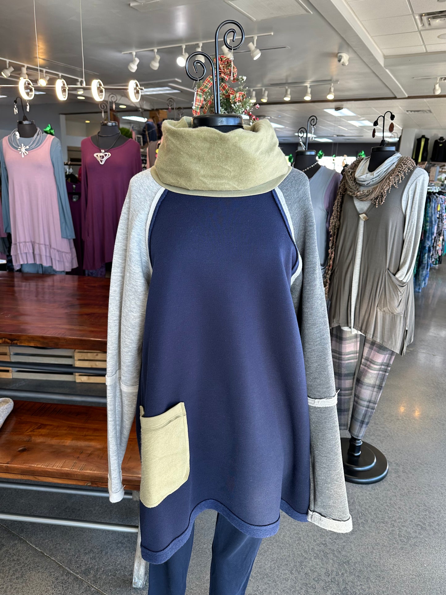 Navy Sage Mixed Up Colorado Funnel Neck Sweatshirt with Pocket