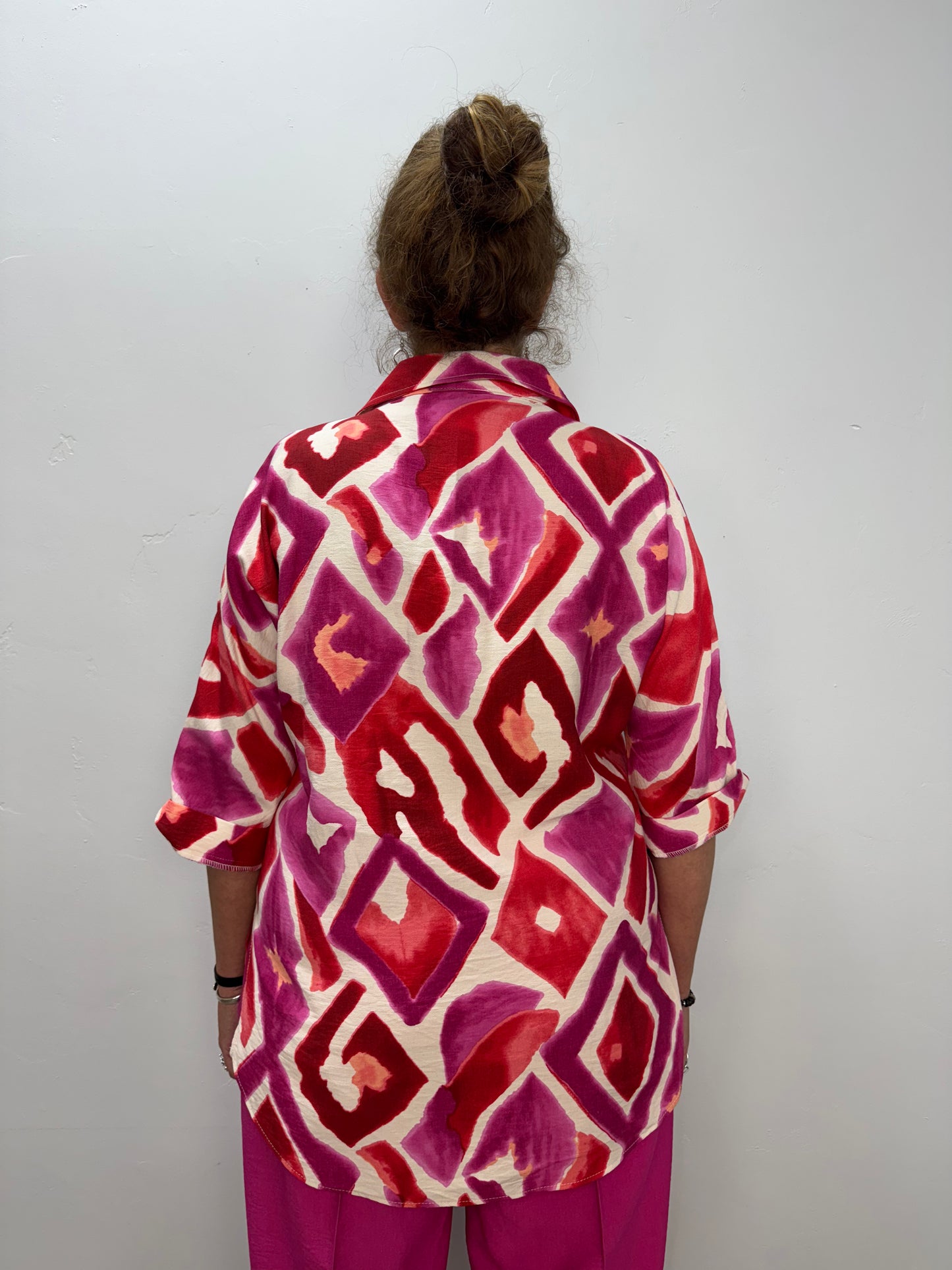 Pink Pattern Button Up Collared 3/4 Sleeve Layered Shirt
