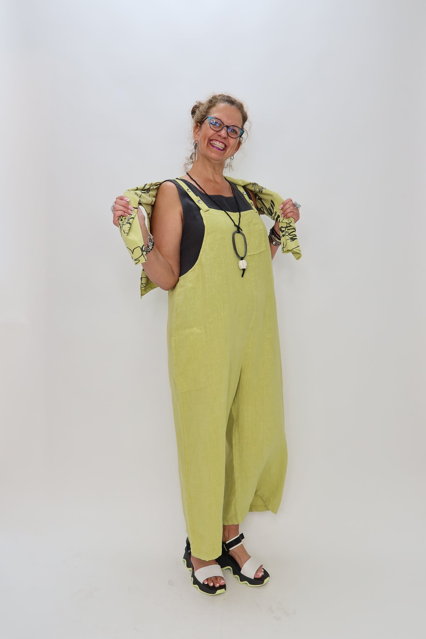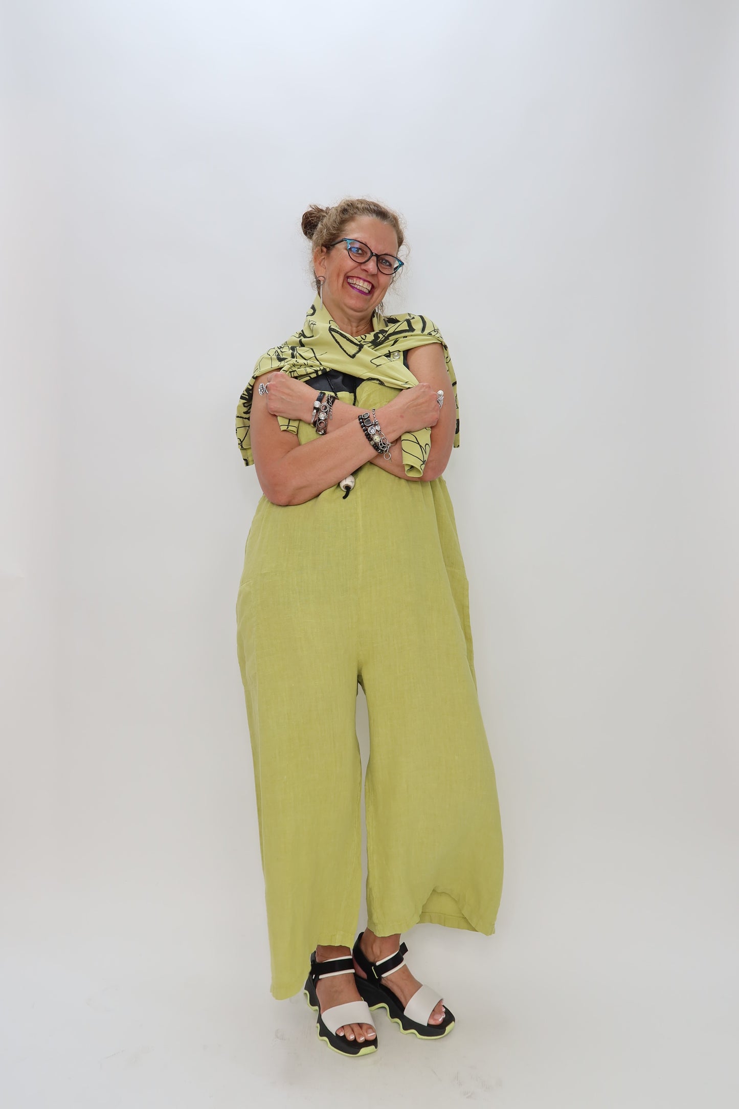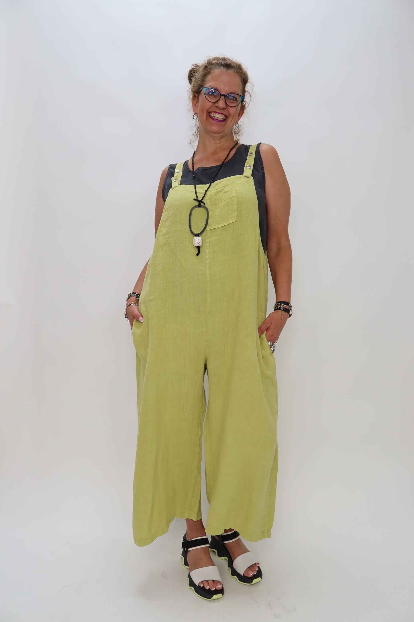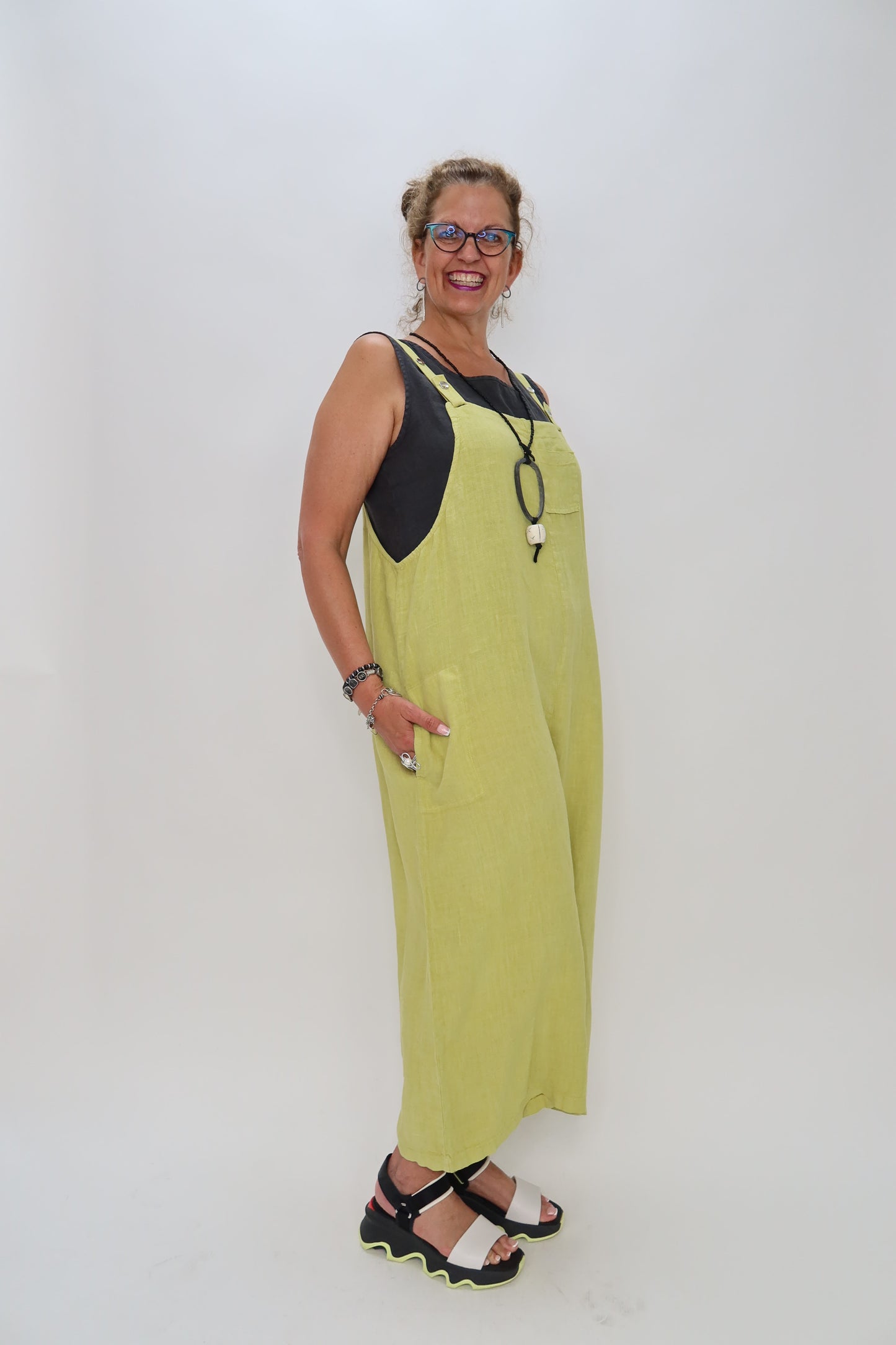 Pistachio Green Linen Jumper Overalls