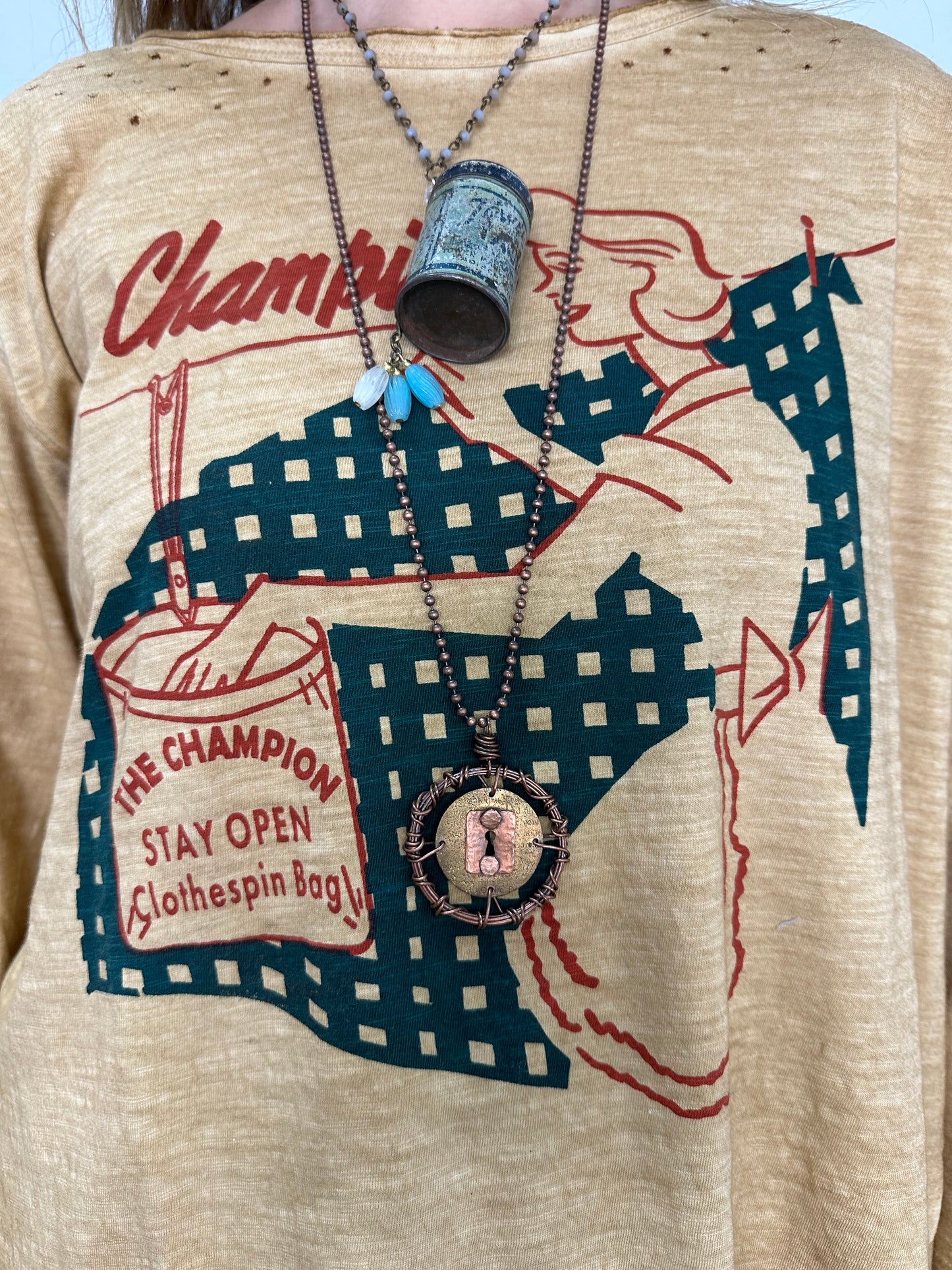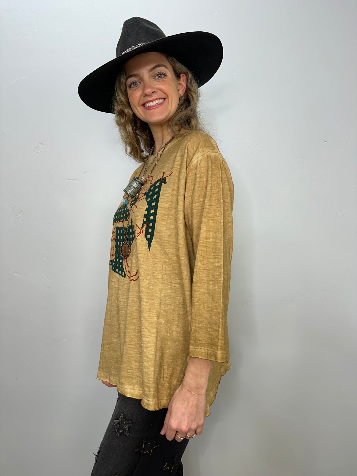 Retro Printed Distressed Tea-dye Tee - One Size