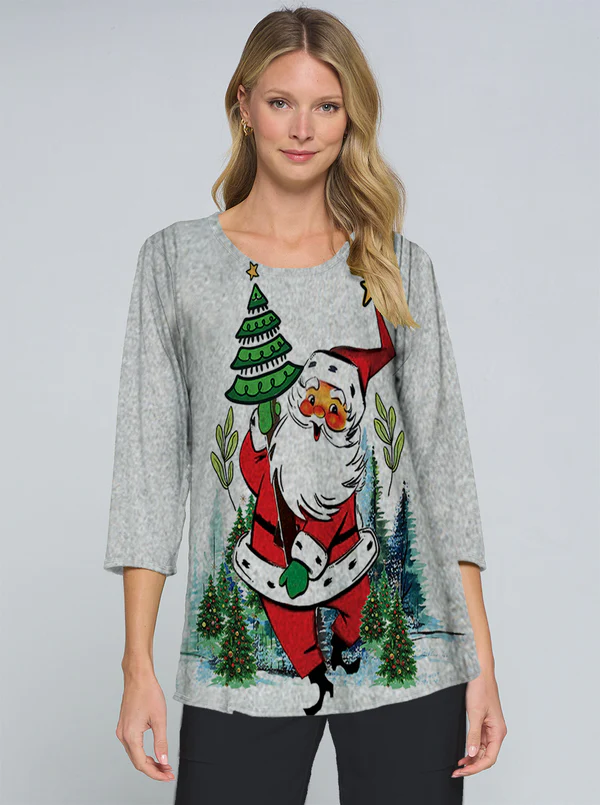 Santa Holiday 3/4 Sleeve A-line Tunic
