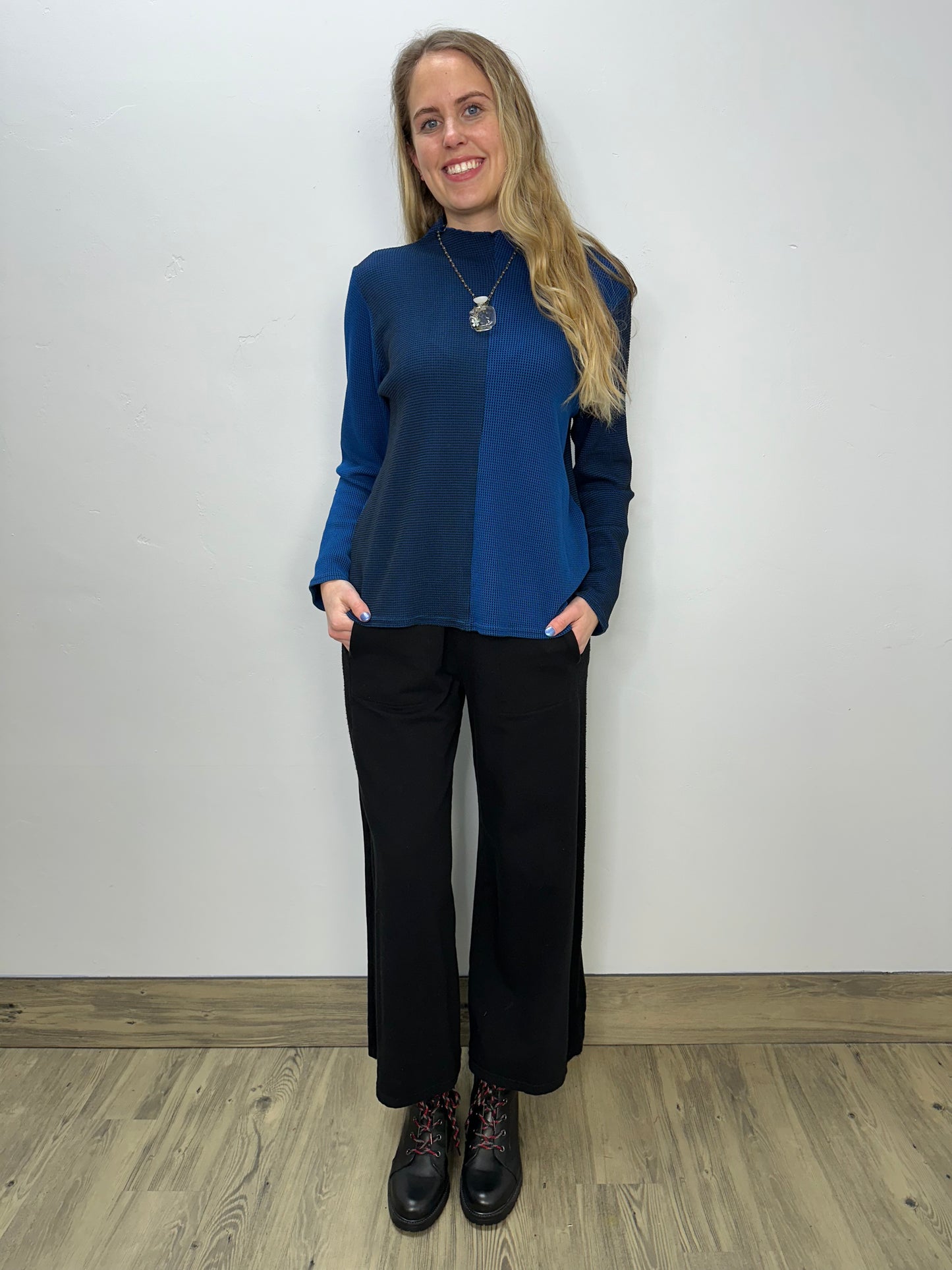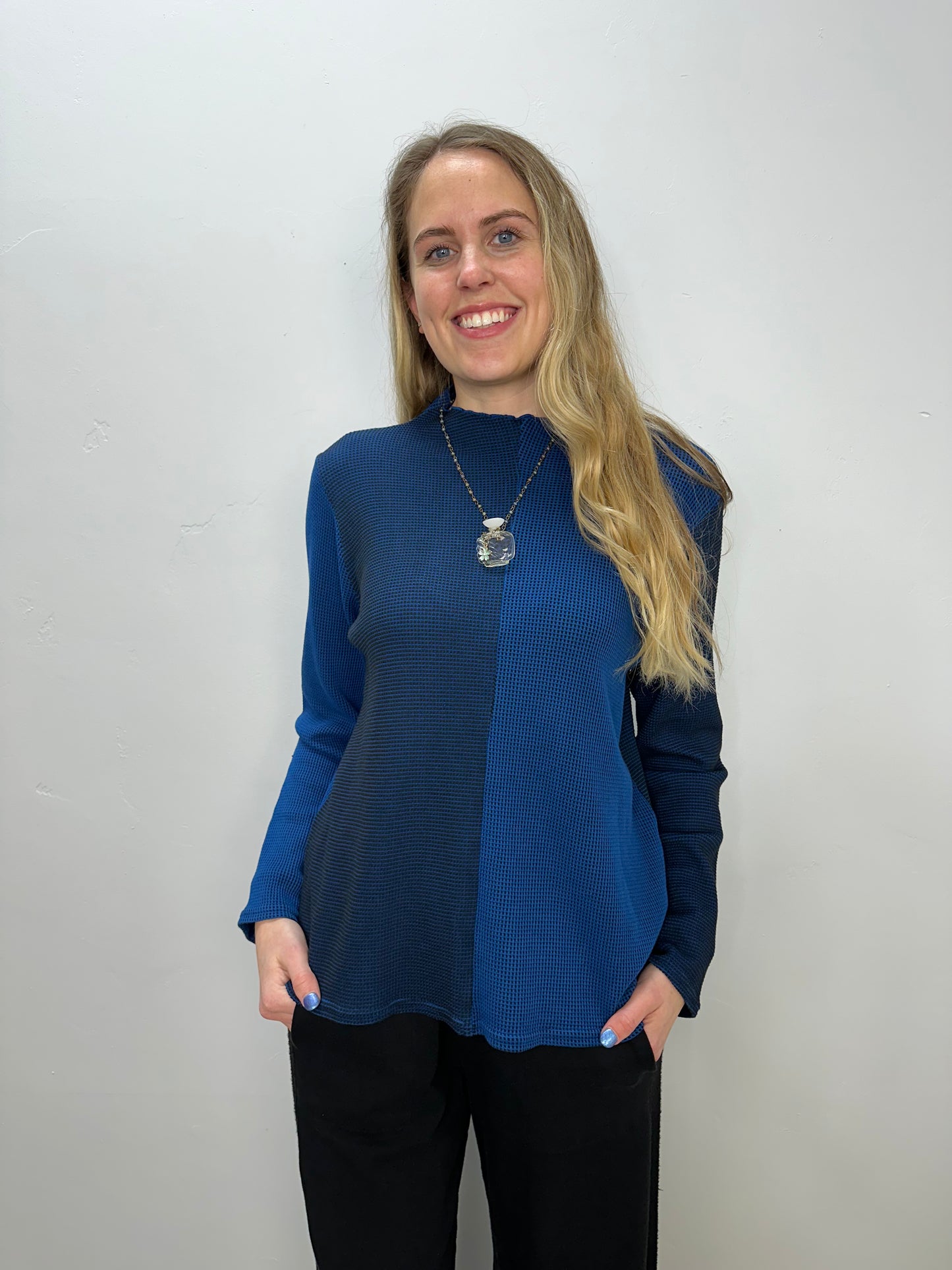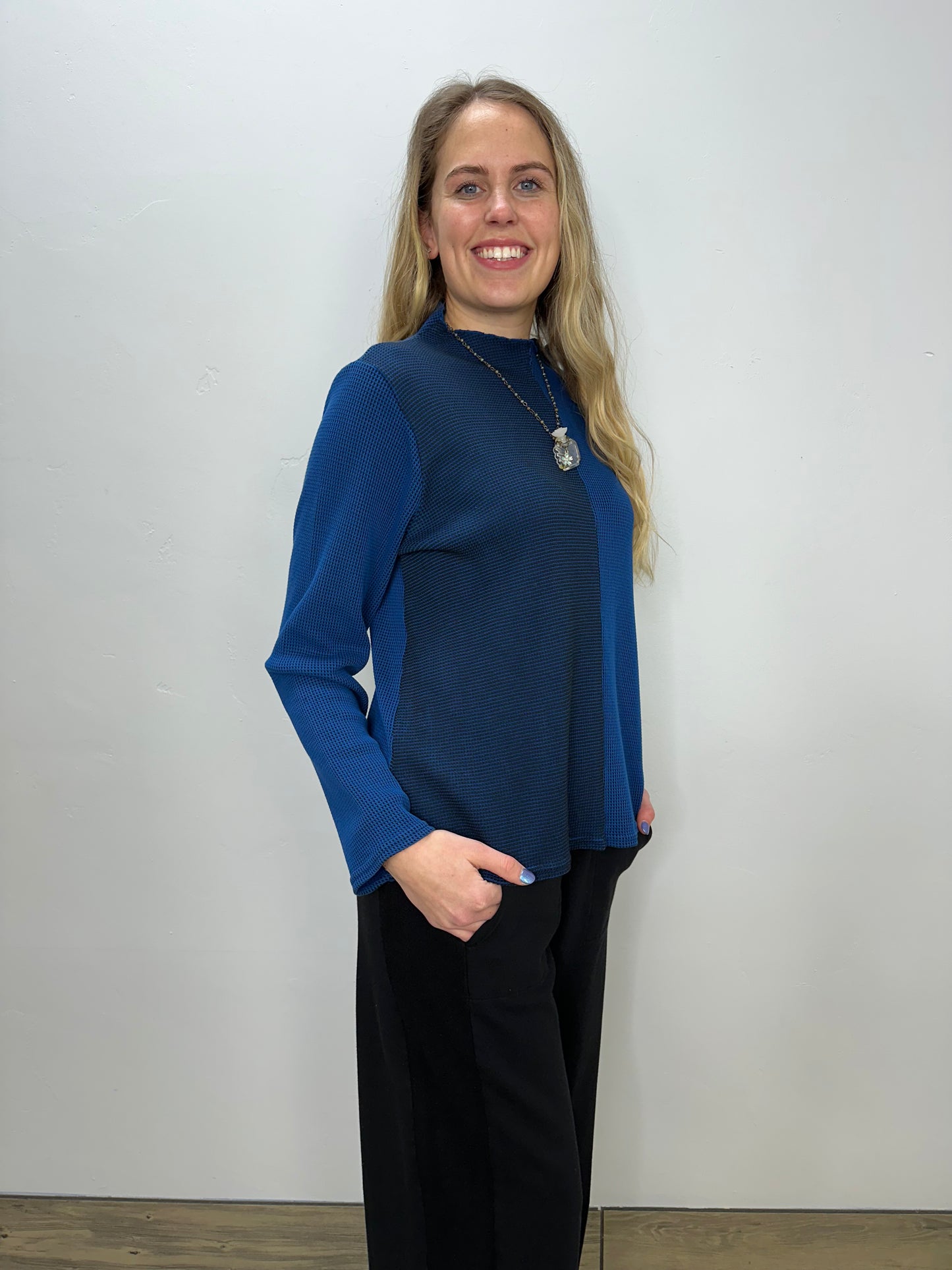 Sapphire Blue Waffle Mock Tee