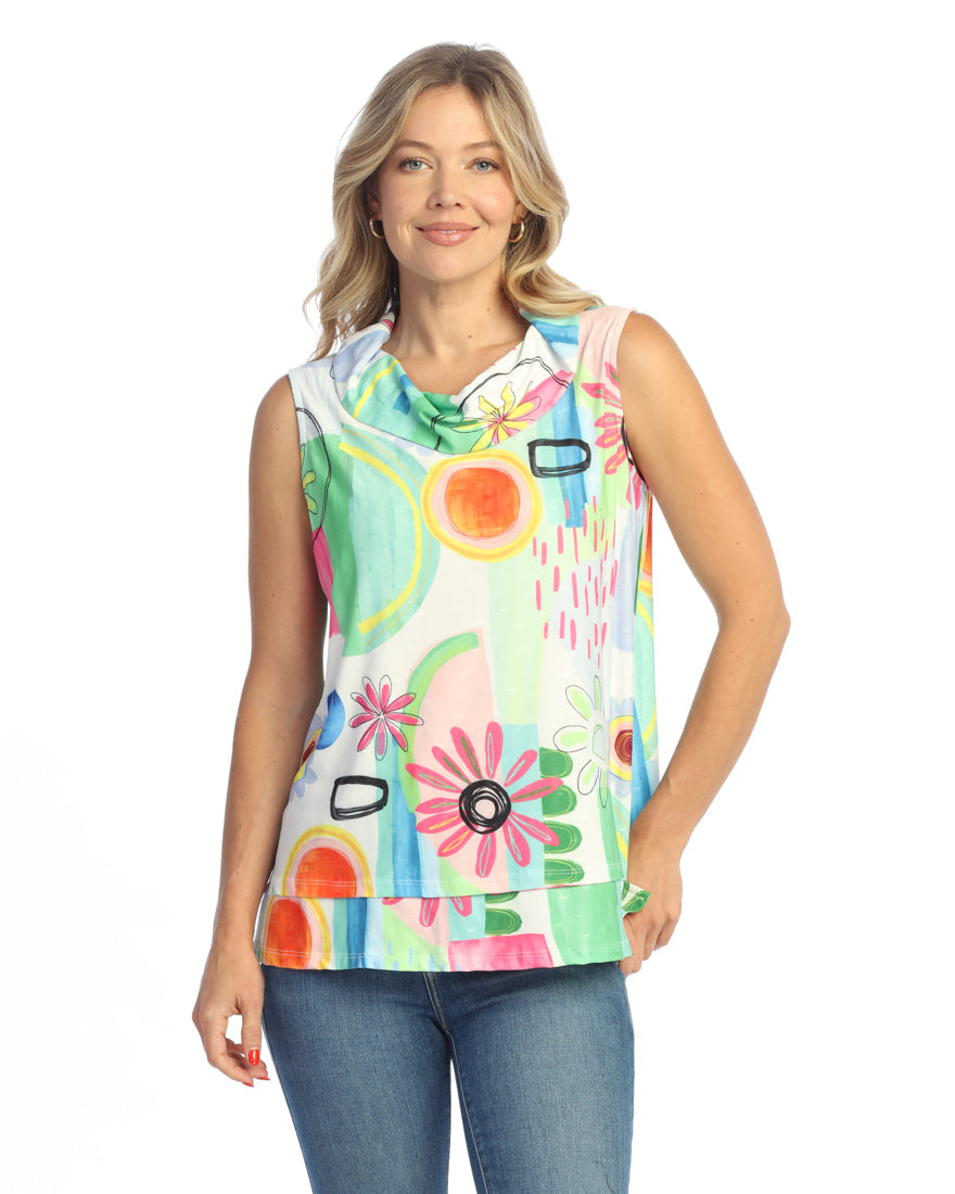 Elevate your style with our Sunny Quill Top. The beautiful fun floral pattern and quill texture add dimension to your outfit, while the loose cowl neck adds a touch of elegance. Breathable and comfortable, this sleeveless top is perfect for any occasion.