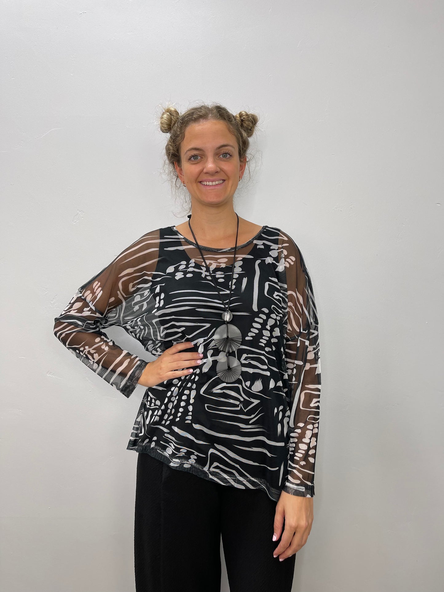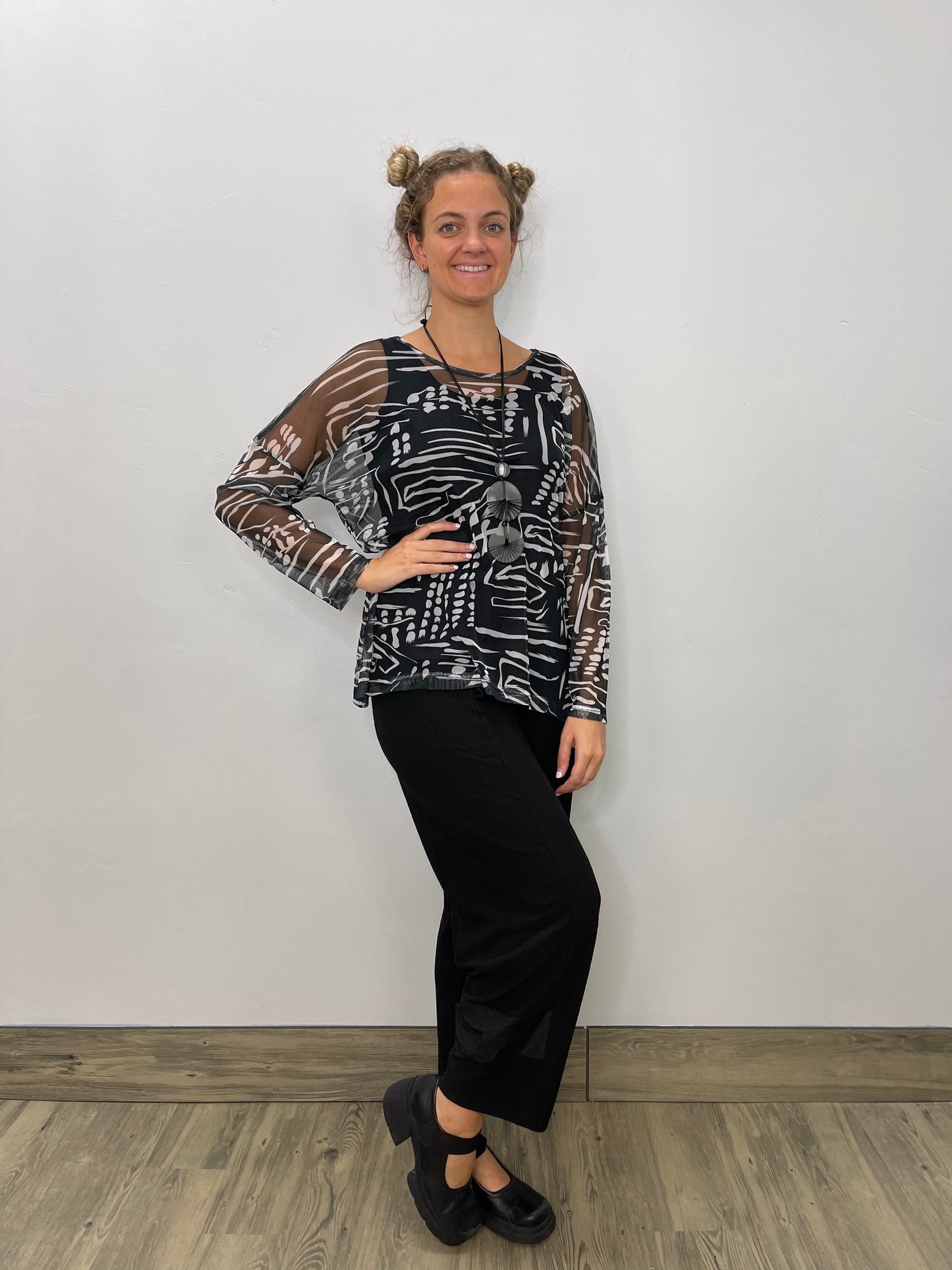 Regular price $65.40Show off your style in this striking Black & White Pattern Mesh Tunic! It features a gorgeous mesh top with a unique black and white pattern, a scoop neckline, and long sleeves. The tank underneath is included for added comfort and ease. Make your statement in this tunic today!