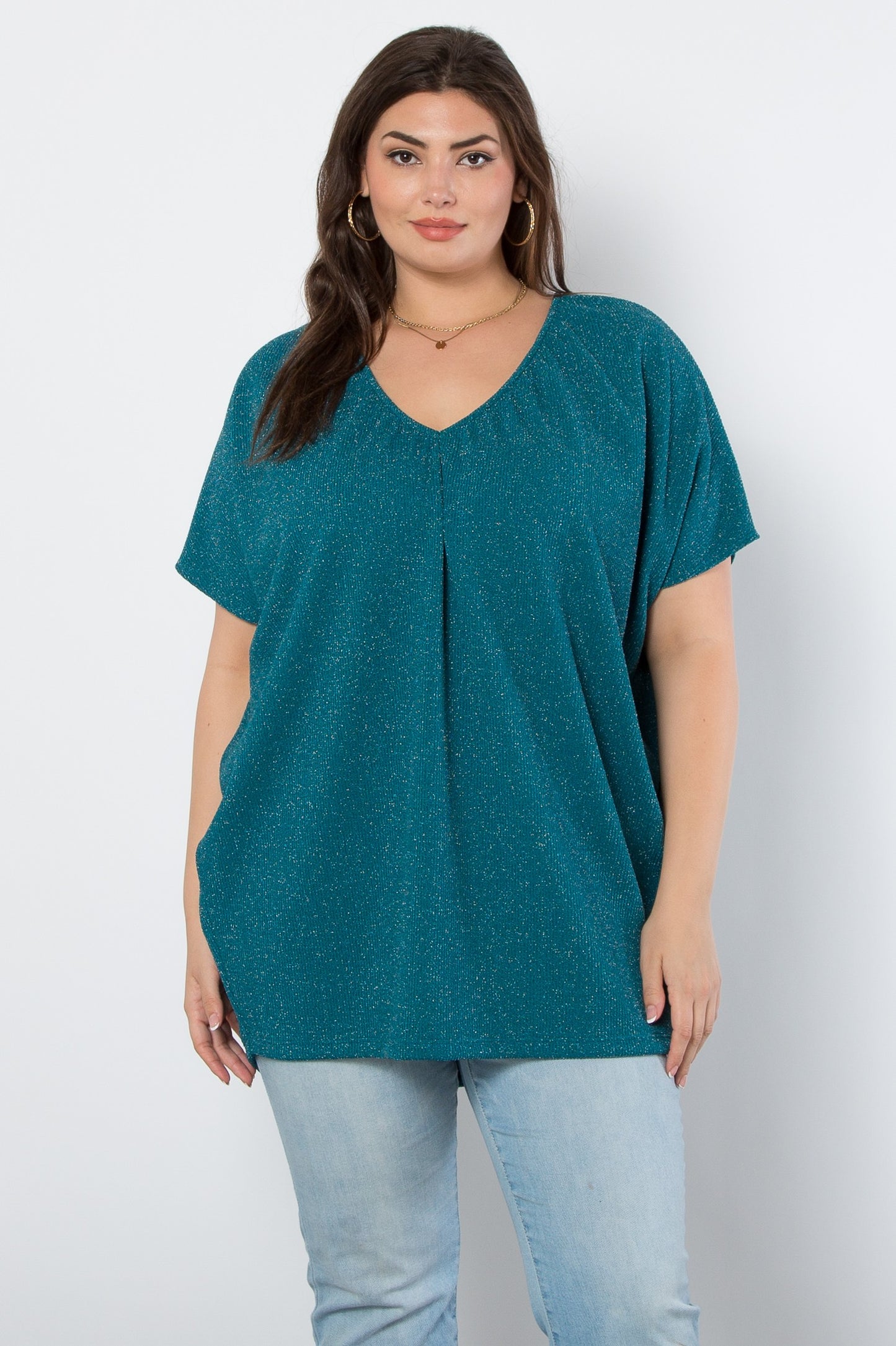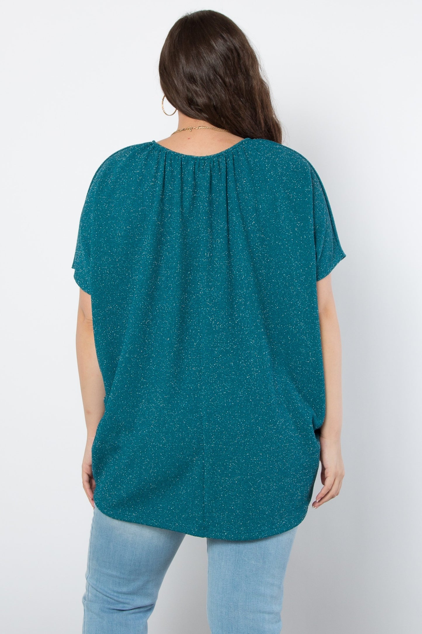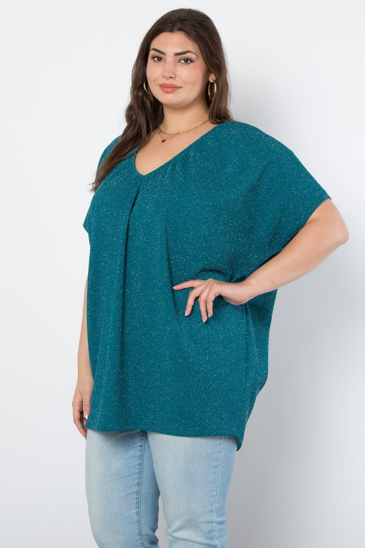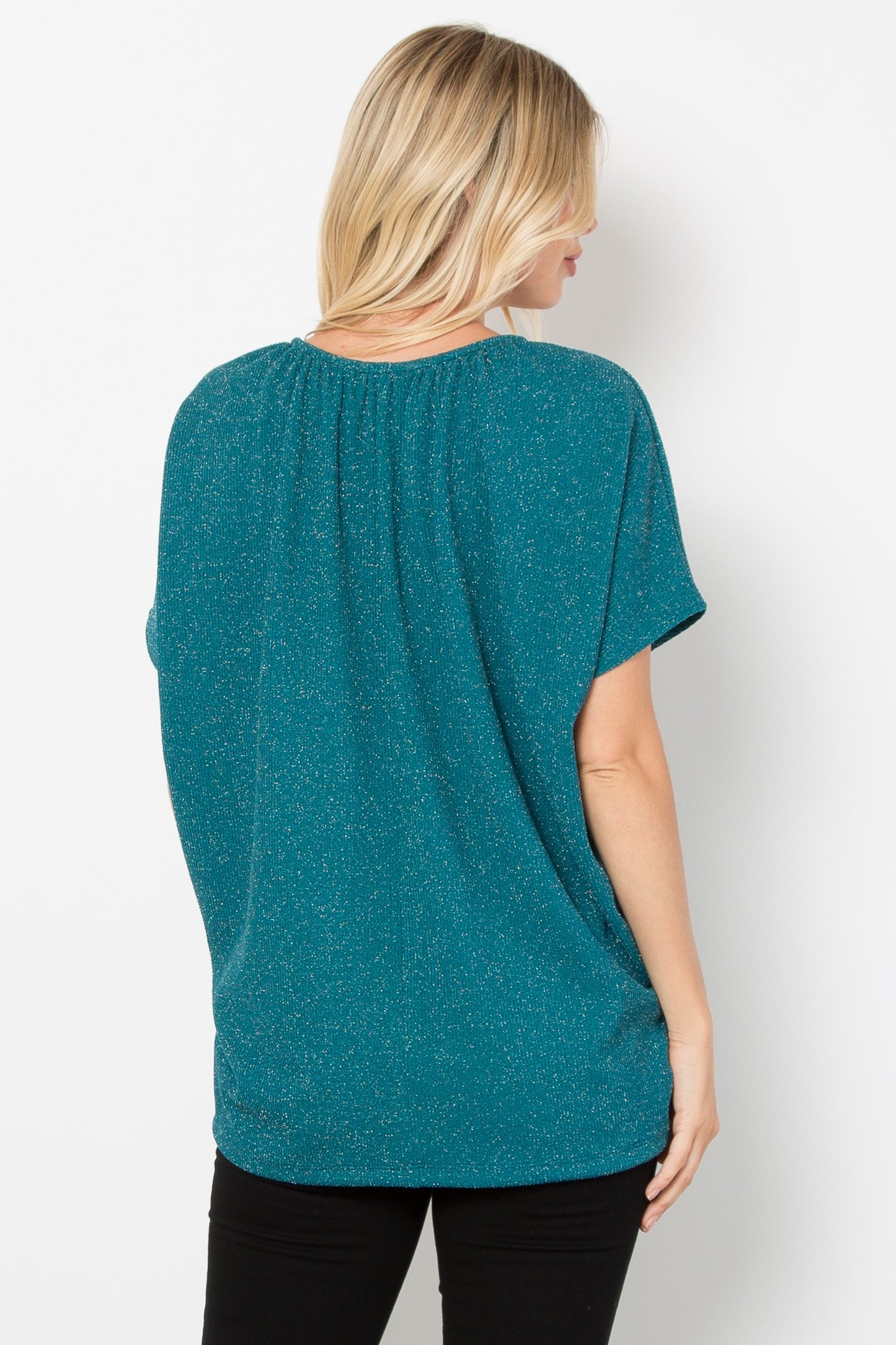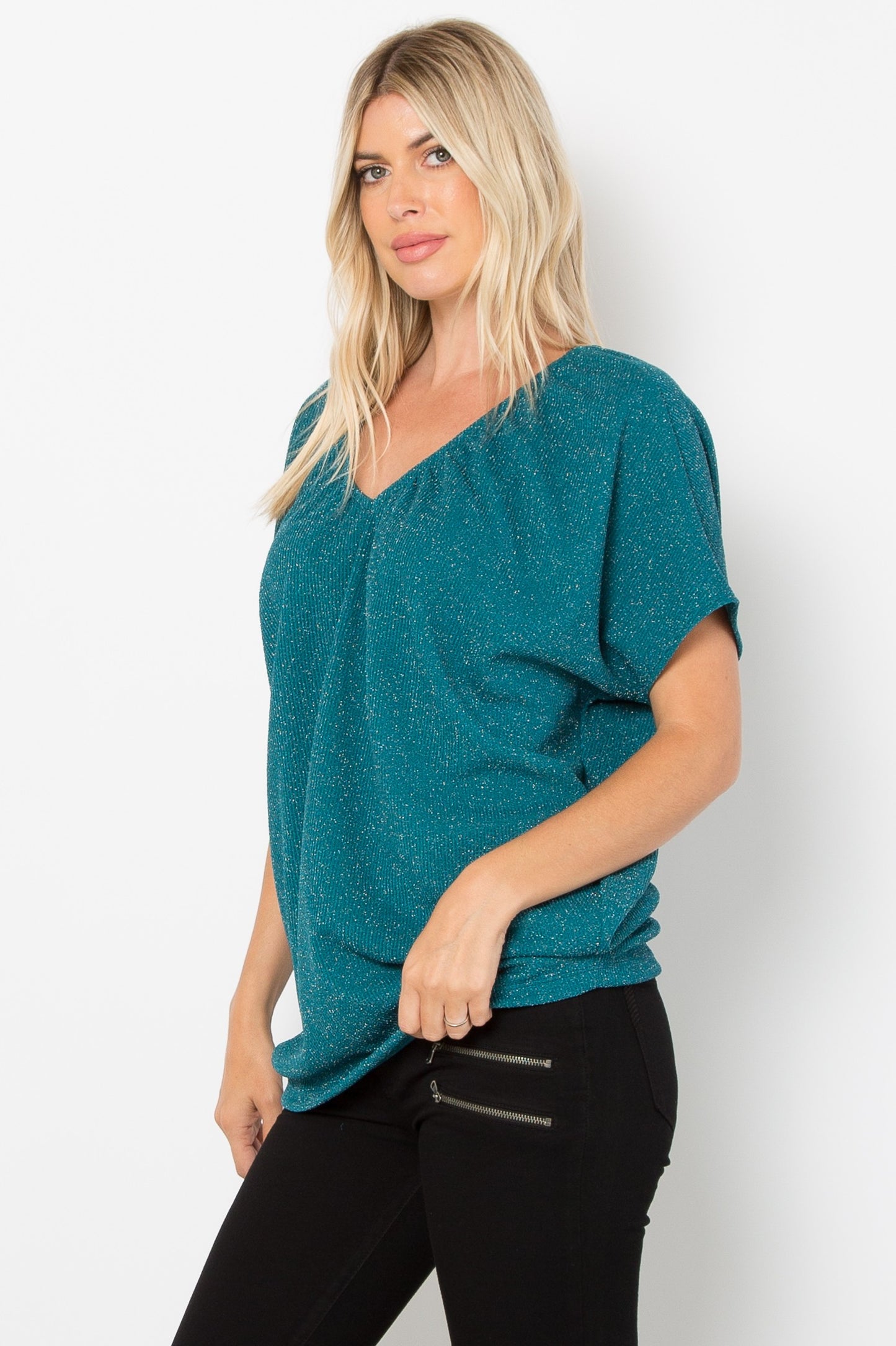 Teal Green Lurex Urban Rib Short Sleeve Dolman Top